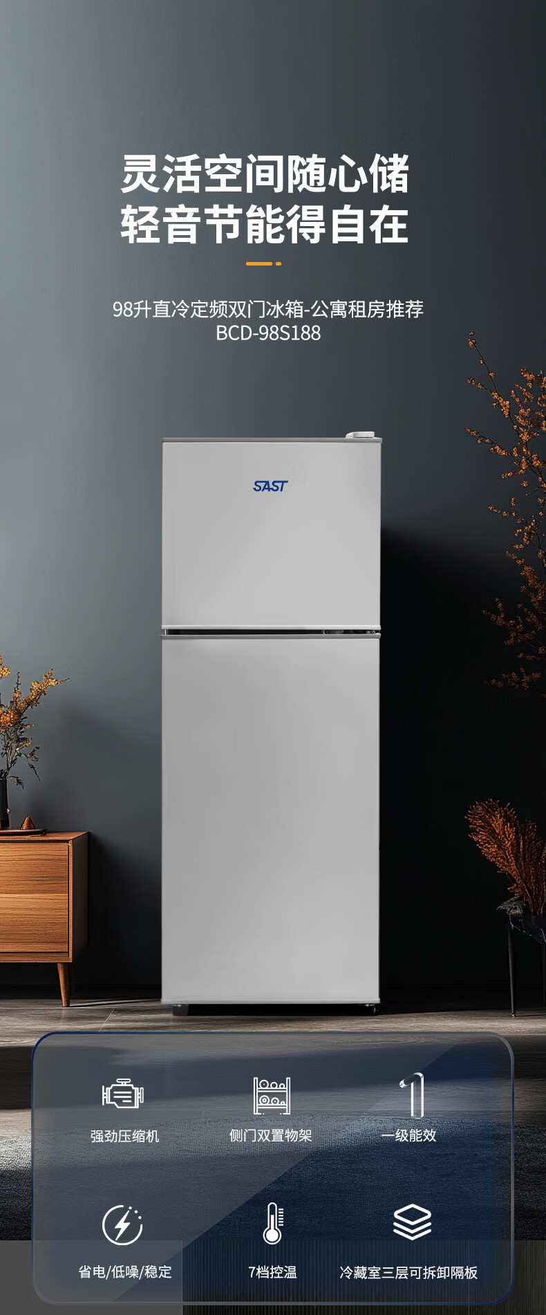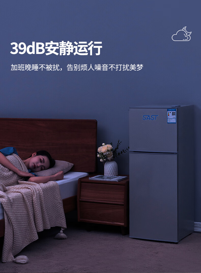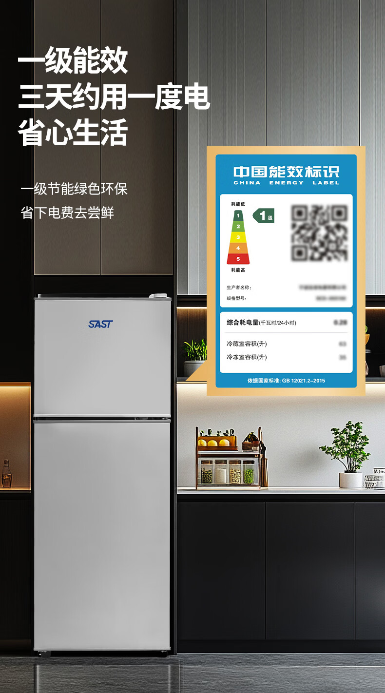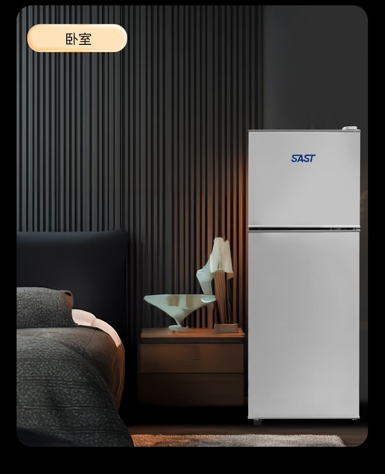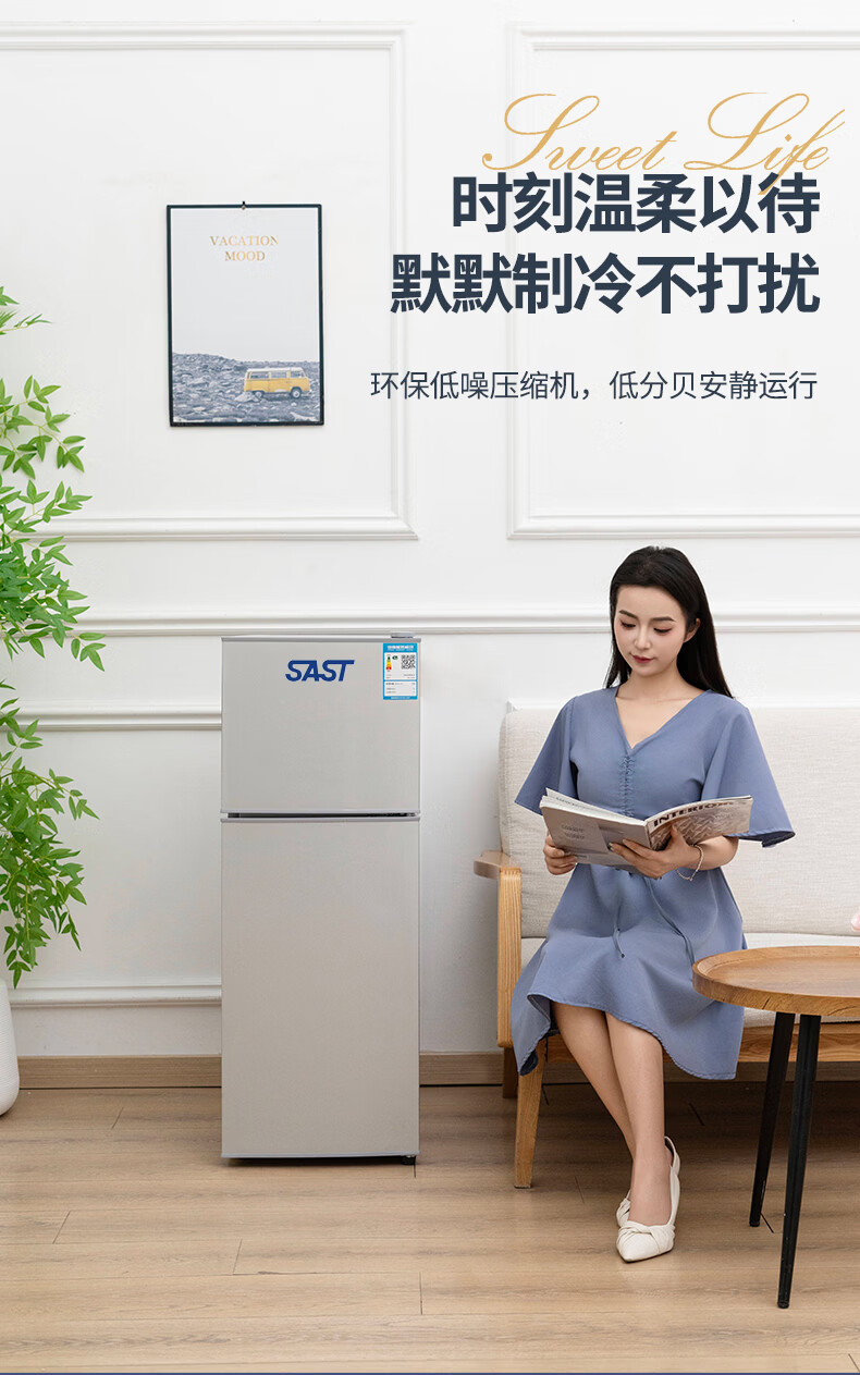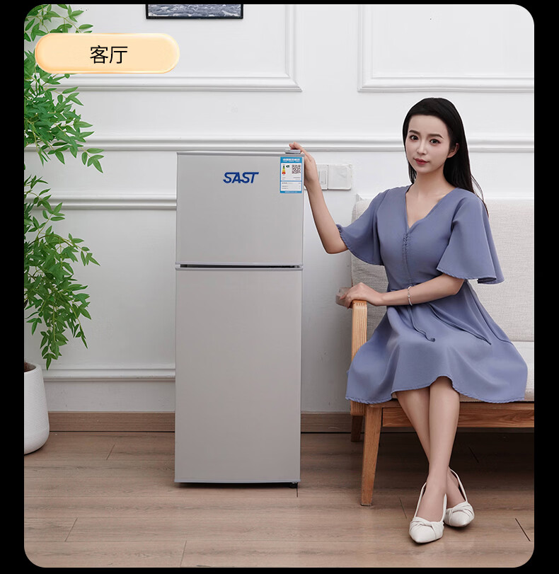 先科(SAST)下冷冻冰箱双门电冰箱家用节能冰箱公寓办公室宿舍低噪电冰箱冷藏冷冻环保出租房冰箱 S202银色一级能效【万人加购】