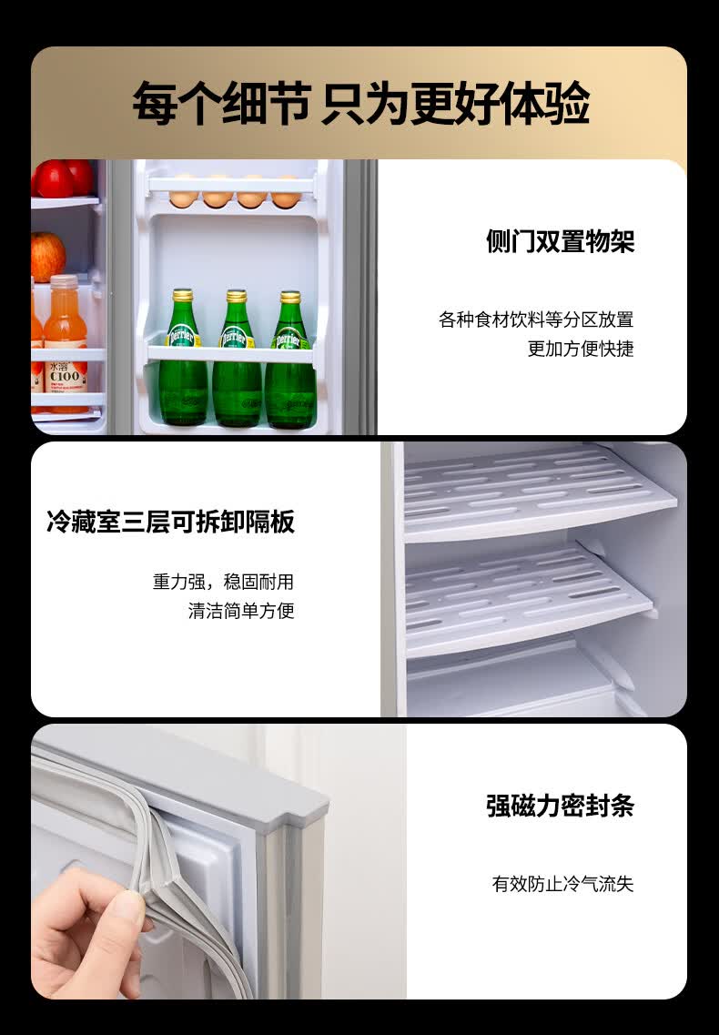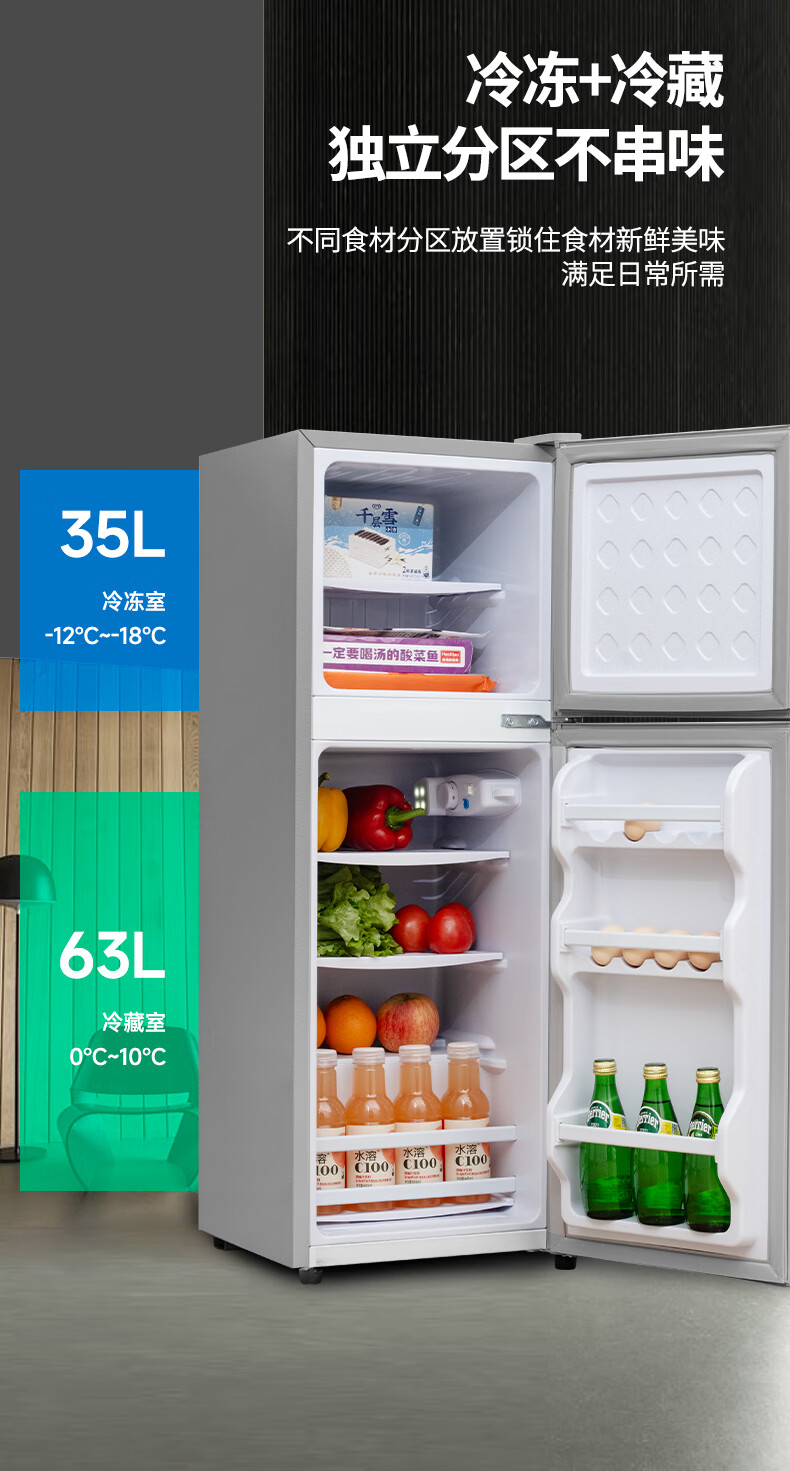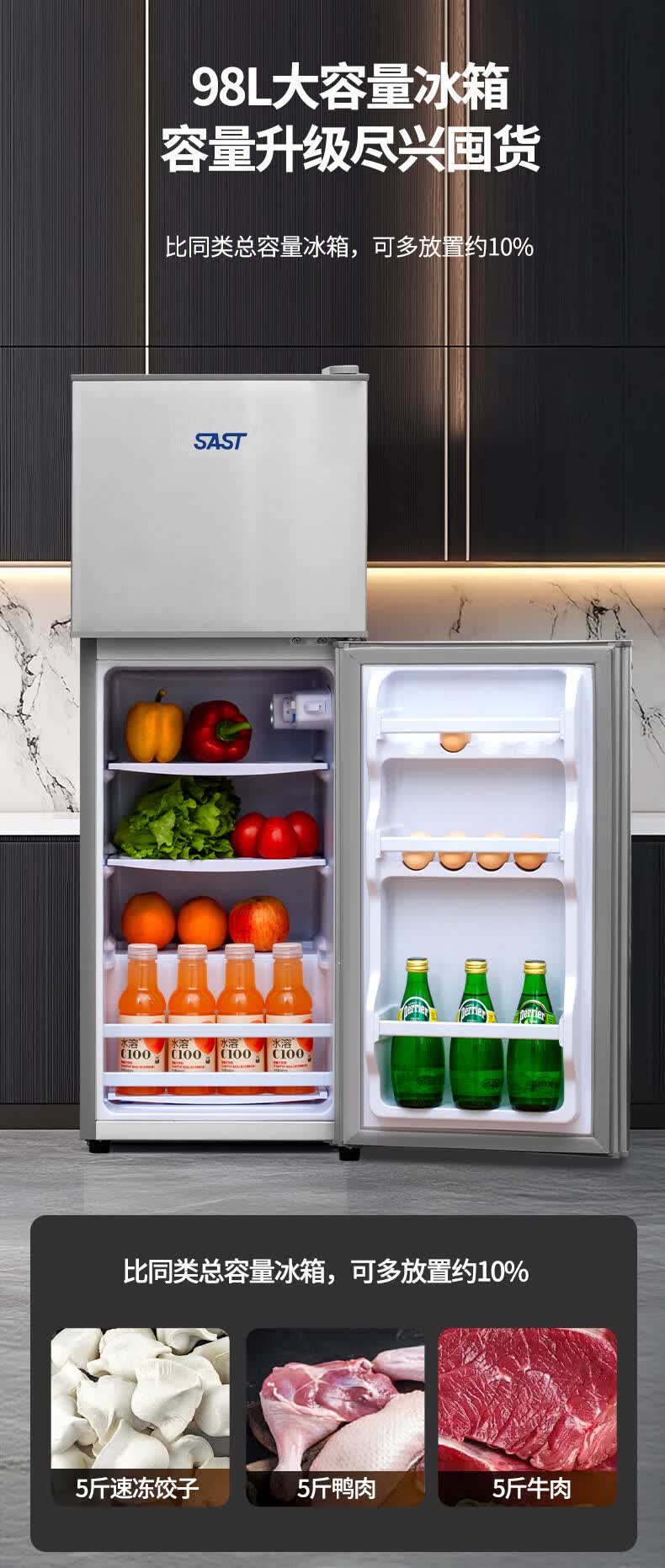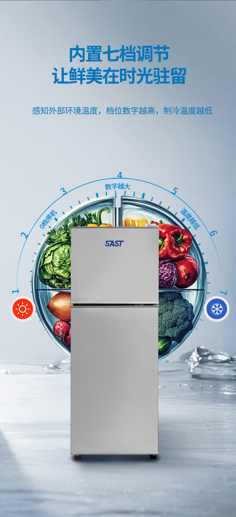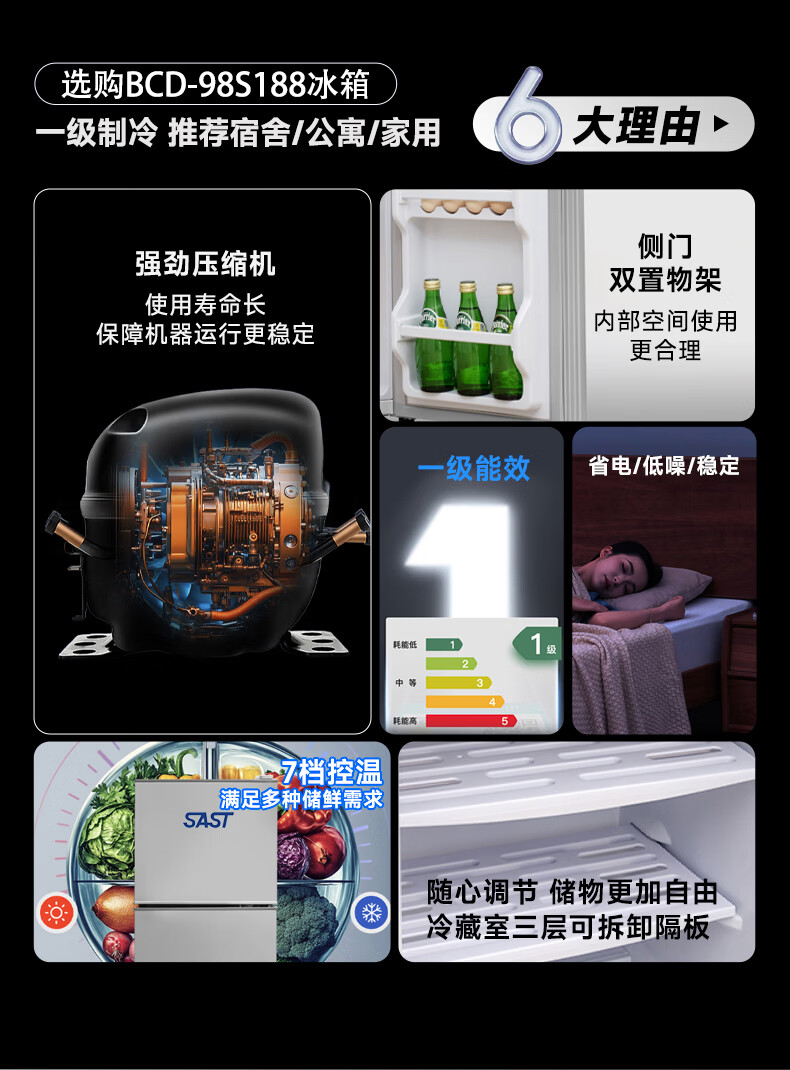 先科(SAST)下冷冻冰箱双门电冰箱家用节能冰箱公寓办公室宿舍低噪电冰箱冷藏冷冻环保出租房冰箱 S202银色一级能效【万人加购】