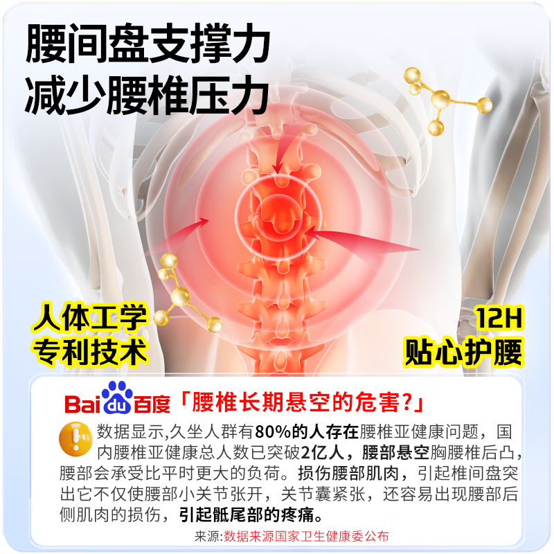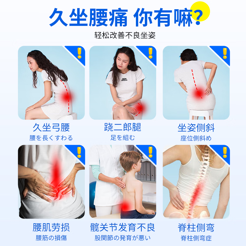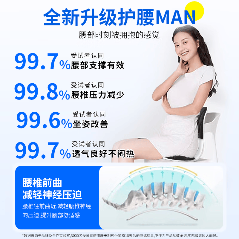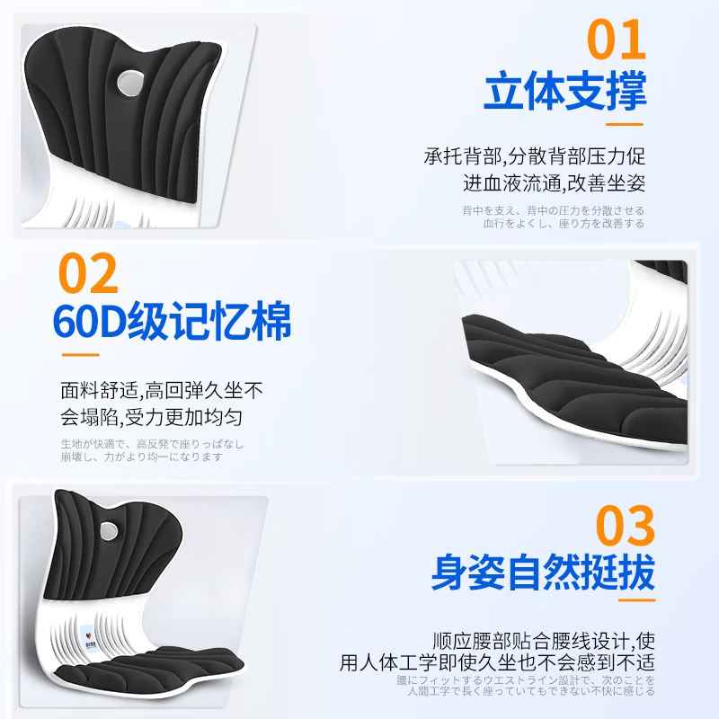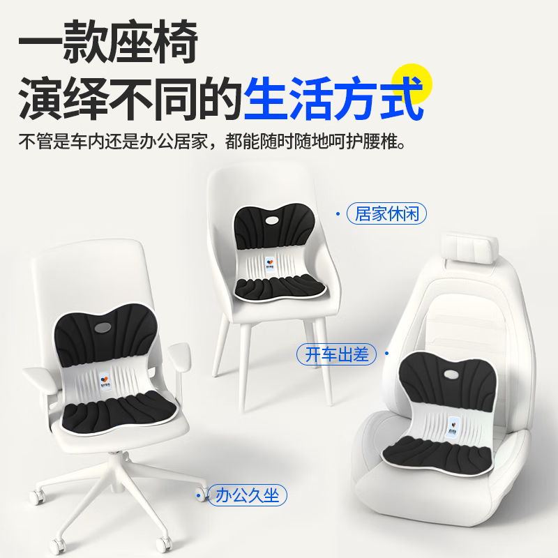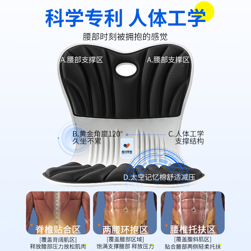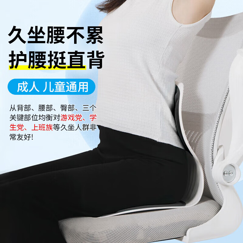 藤田制药护腰坐垫靠背一体办公室学习久坐舒适透气美臀人体工学矫姿椅神器 藤田制药【升级款】护腰矫姿坐垫 星耀黑