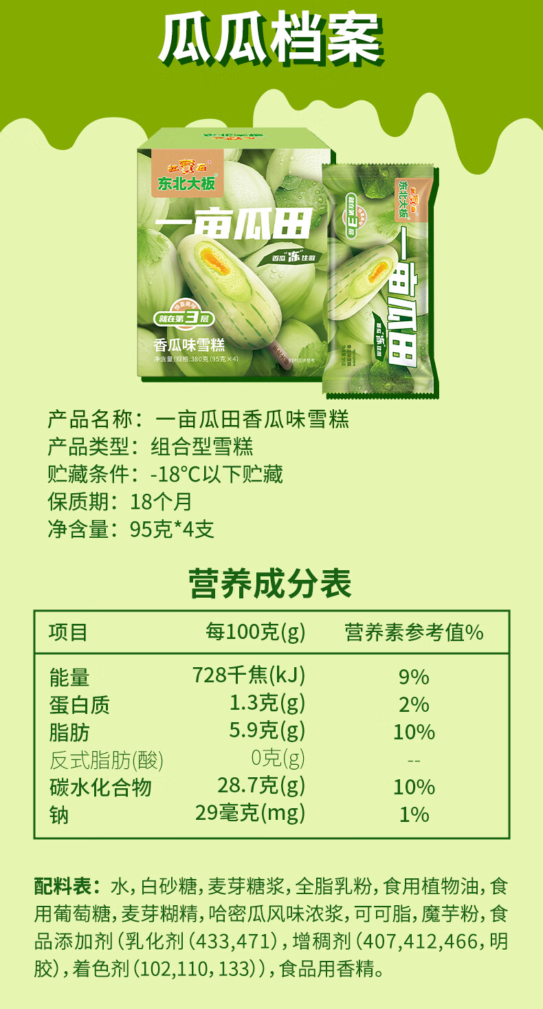 东北大板一亩瓜田香瓜味雪糕 95g*4支 盒装 冷饮 批发冰激凌 冰淇淋