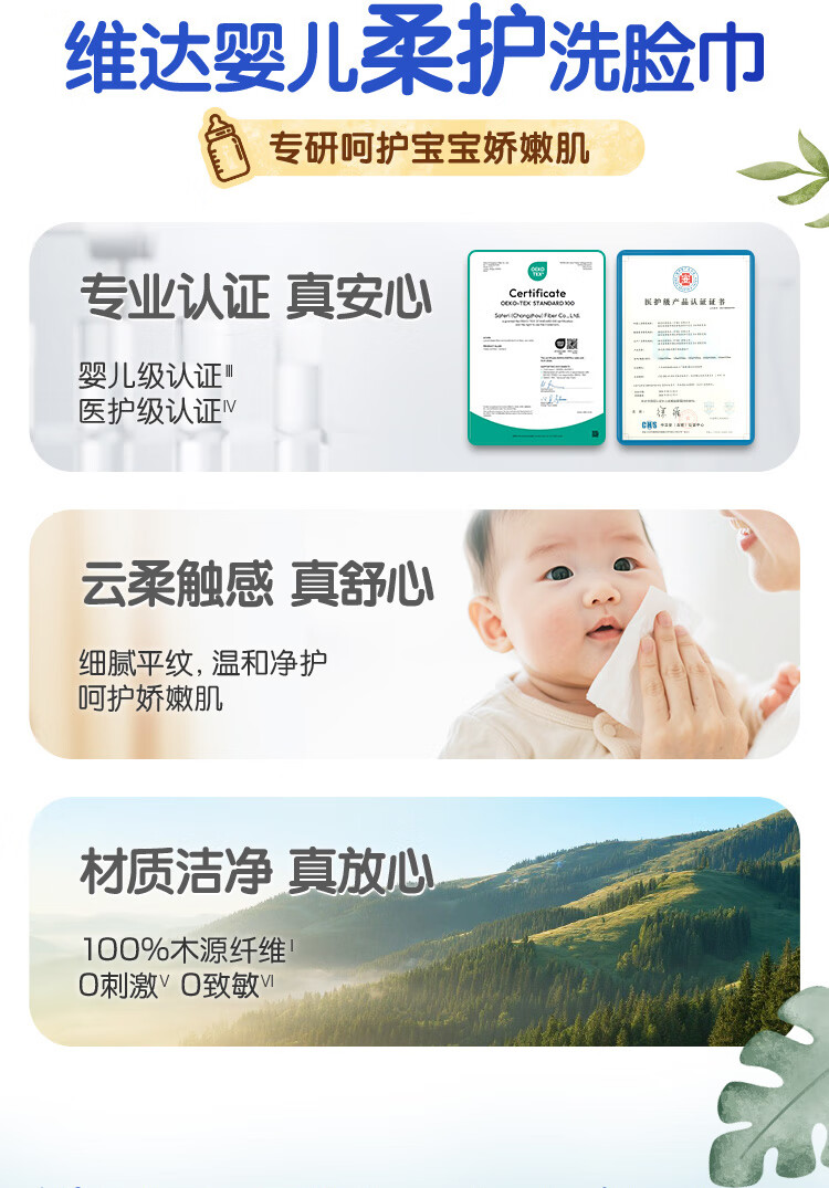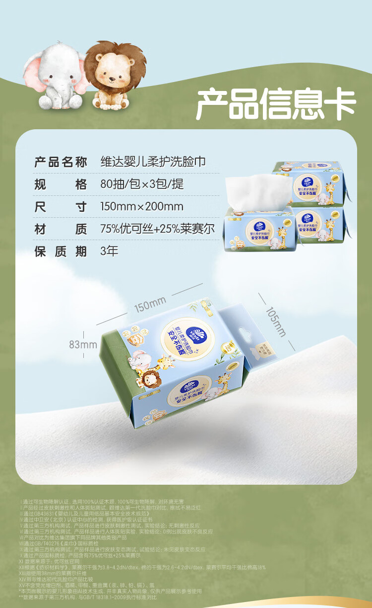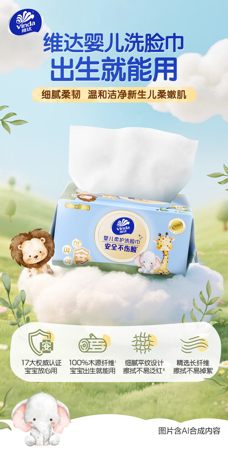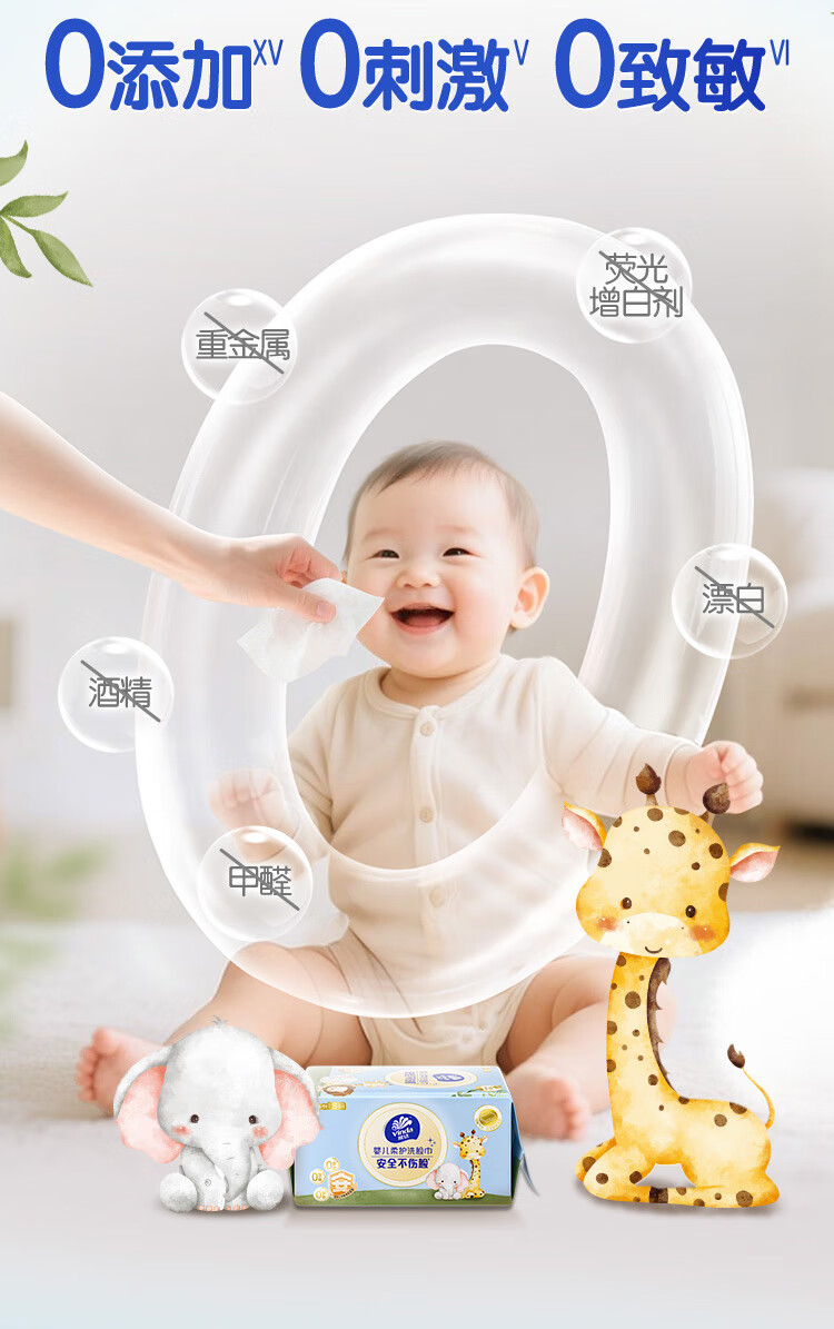 维达(Vinda)婴儿洗脸巾80抽*3包 一次性毛巾抽取式宝宝专用 母婴洁面擦脸巾