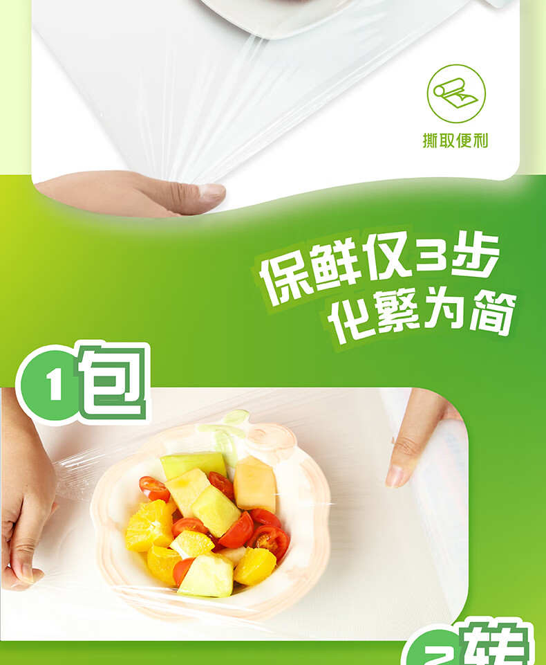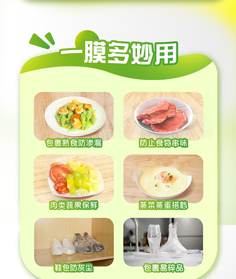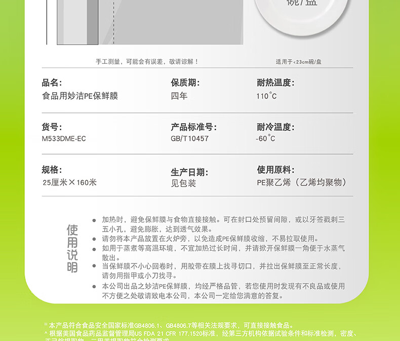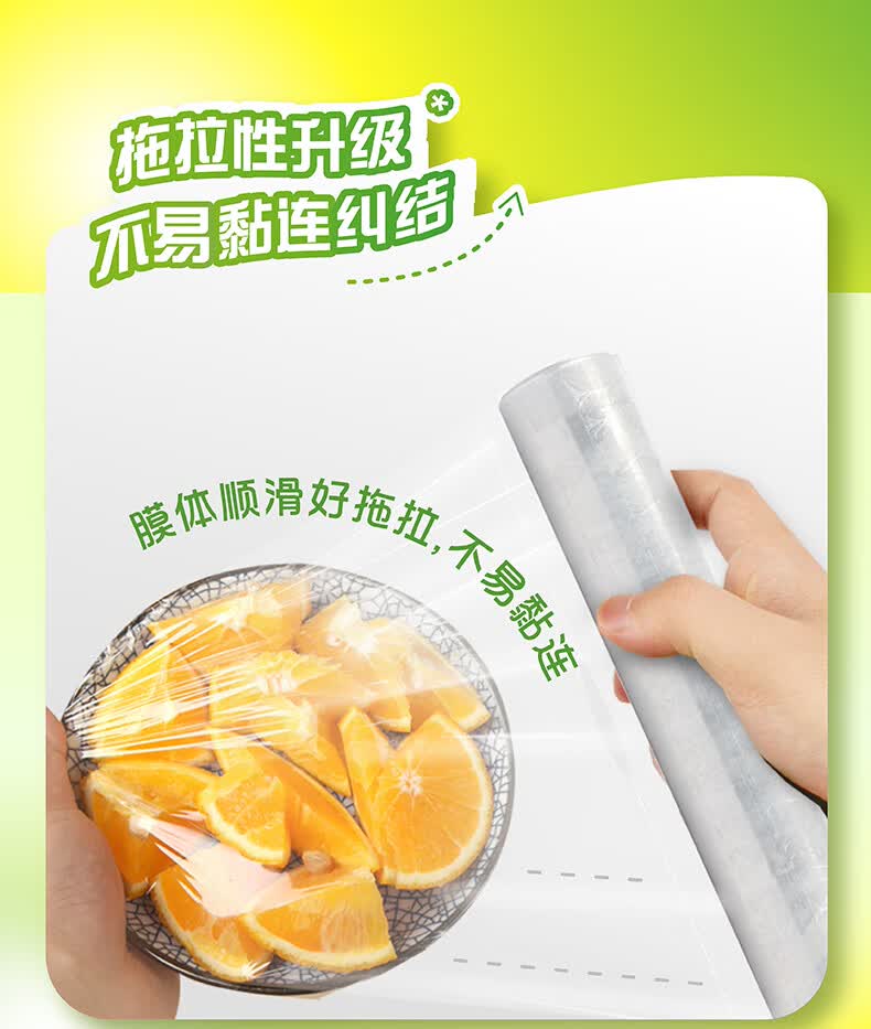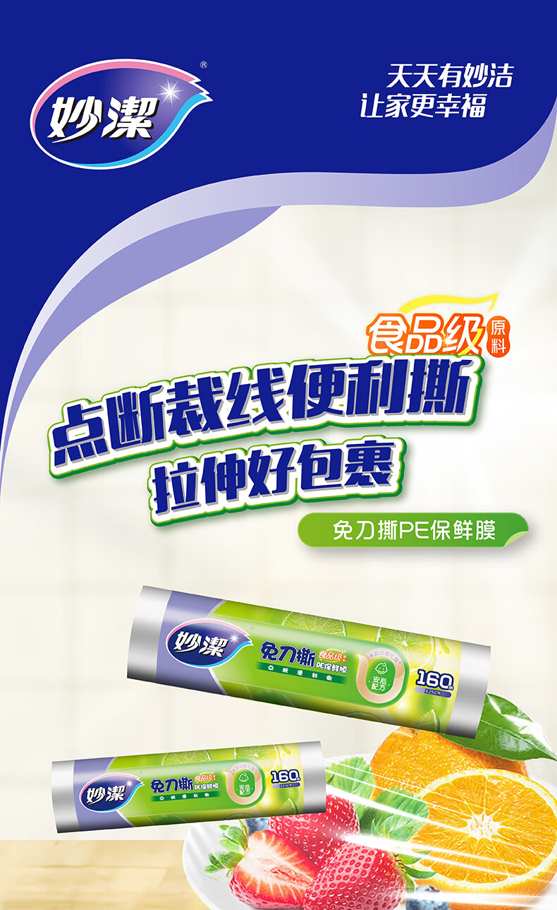 妙洁免刀撕PE保鲜膜160米中碗 家用经济装 食品级 微波炉冰箱适用