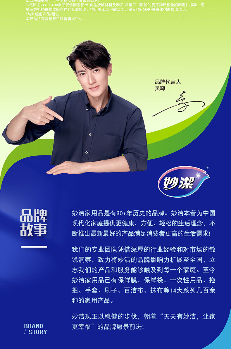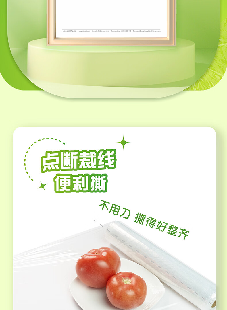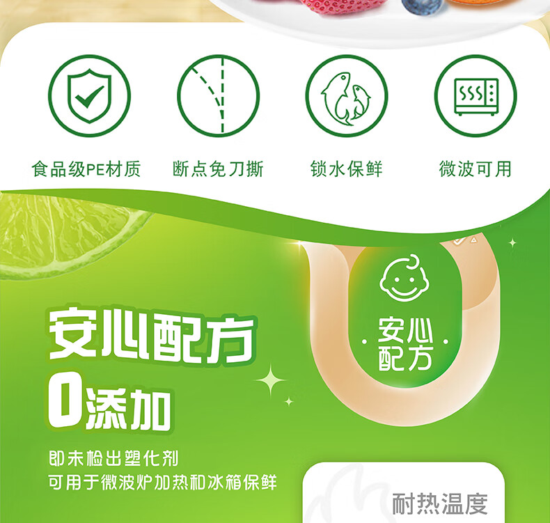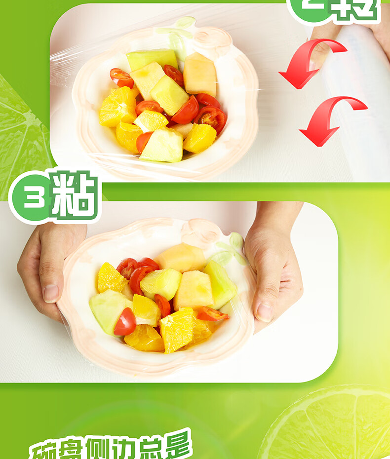 妙洁免刀撕PE保鲜膜160米中碗 家用经济装 食品级 微波炉冰箱适用