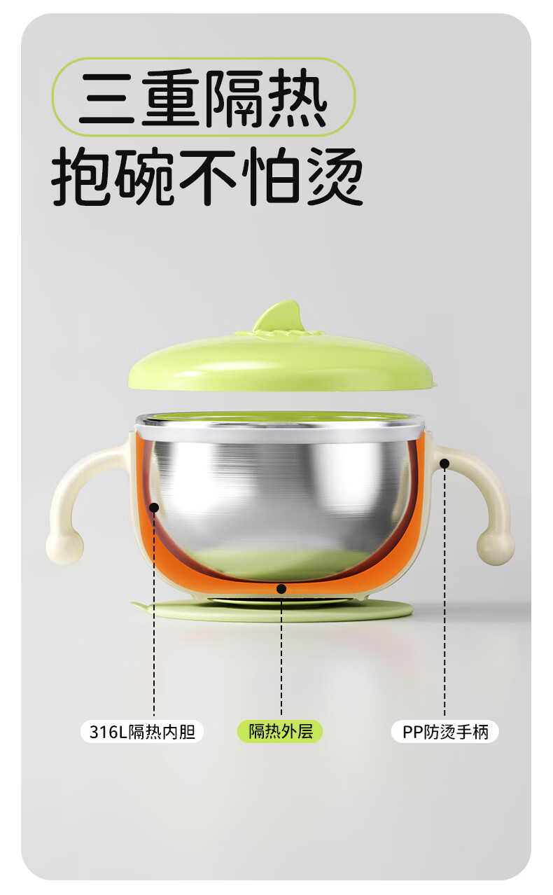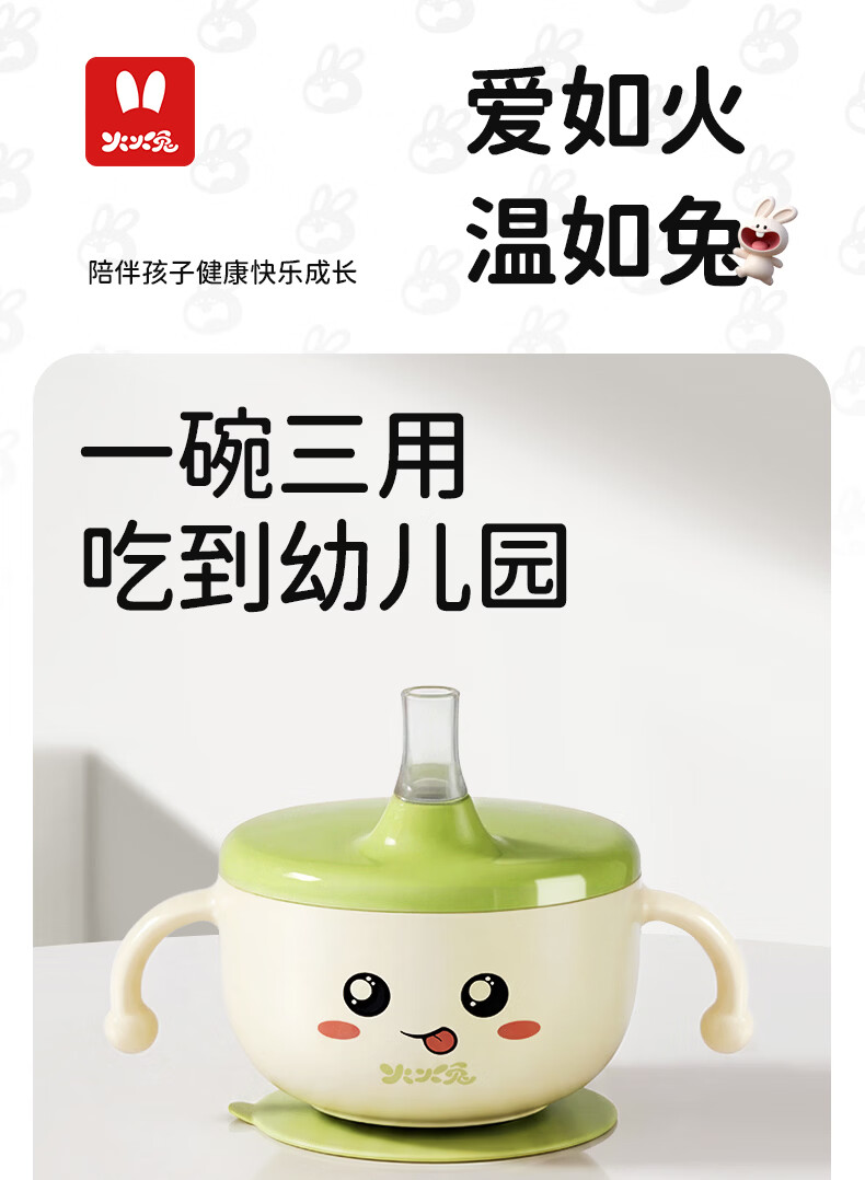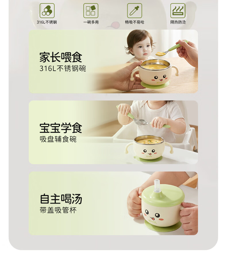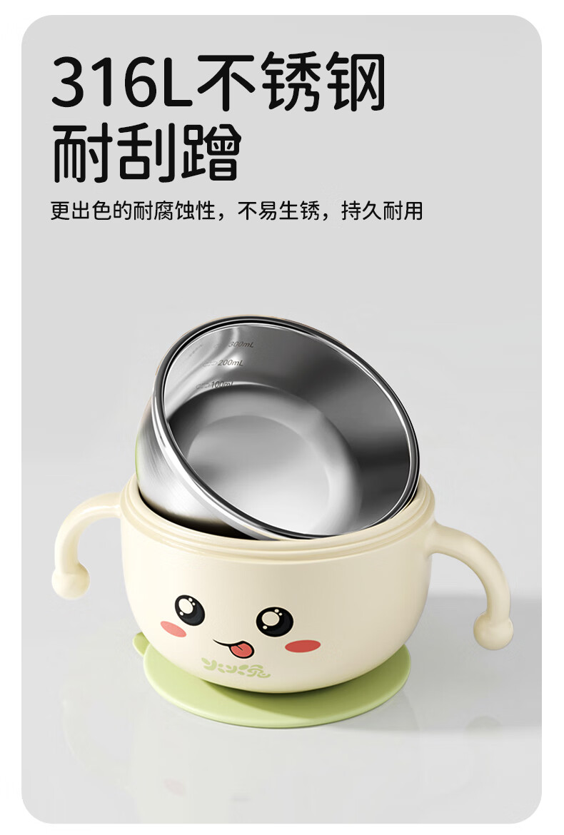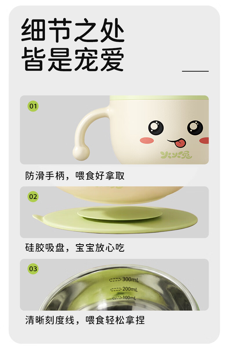 火火兔婴儿辅食碗宝宝喝汤碗316L不锈钢碗儿童碗宝宝碗吸盘吸管碗 小月龄辅食碗【316不锈钢内胆】一碗多用