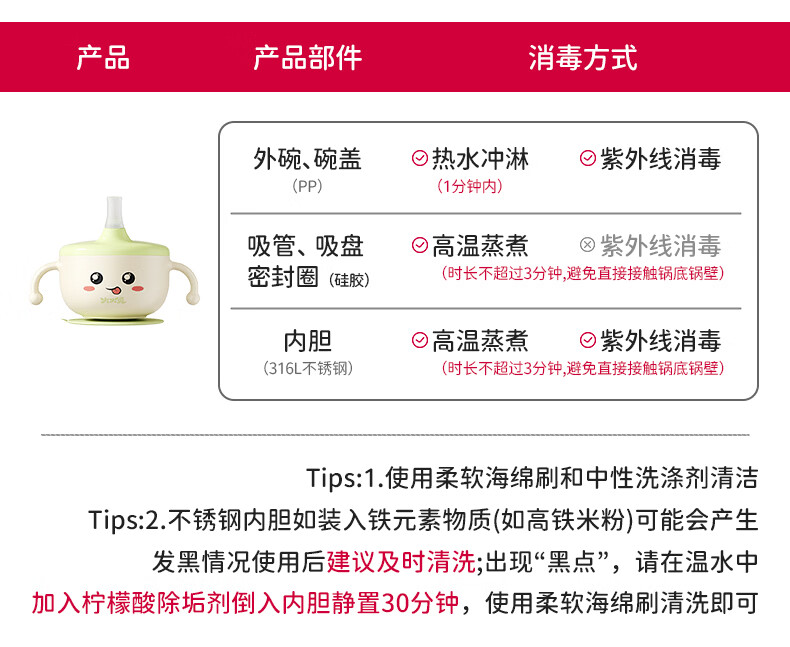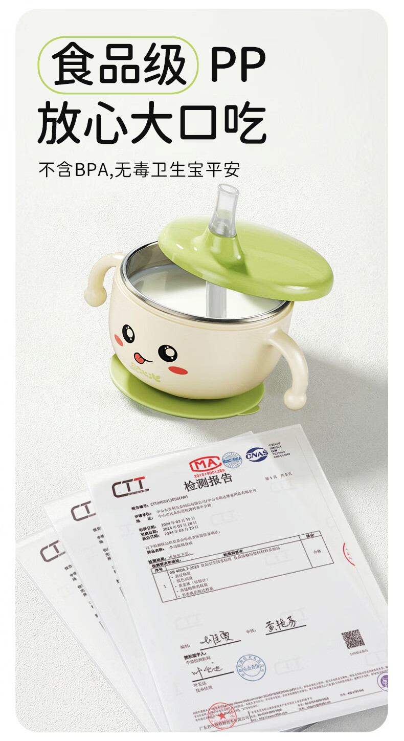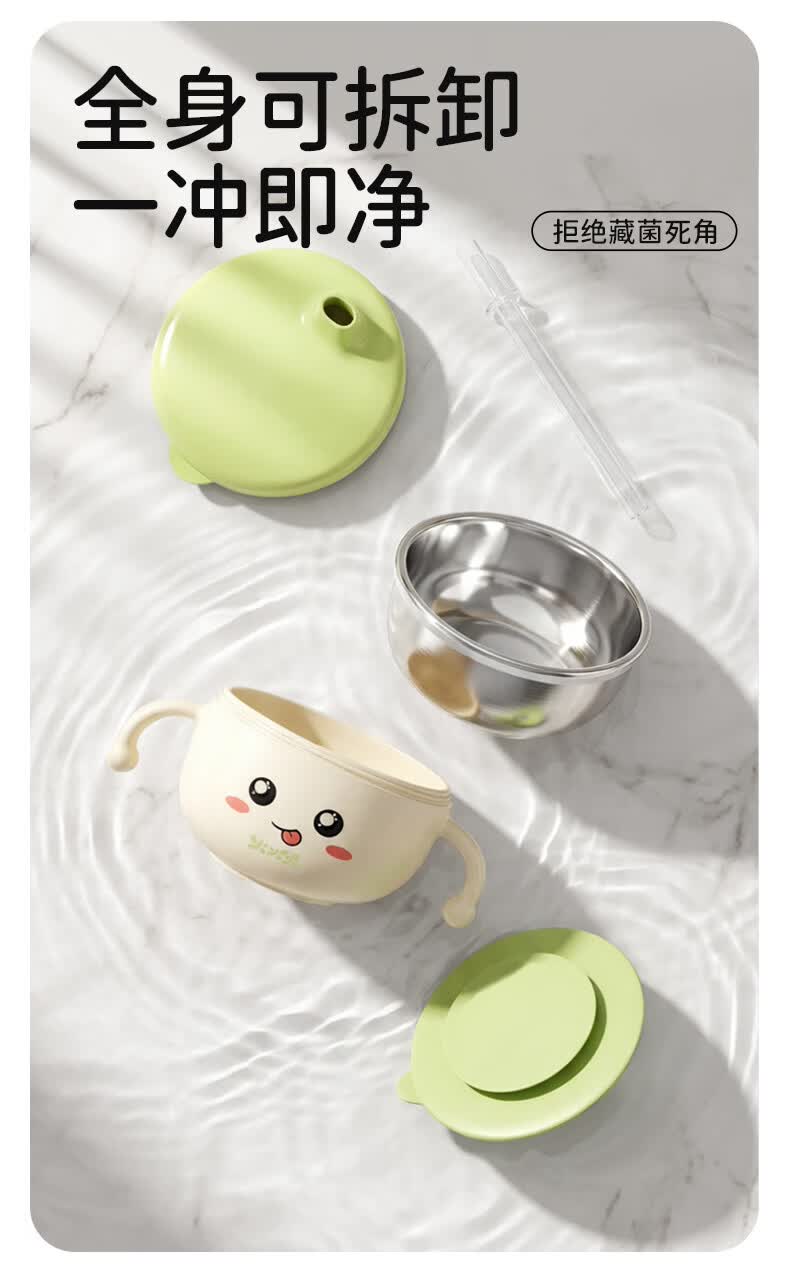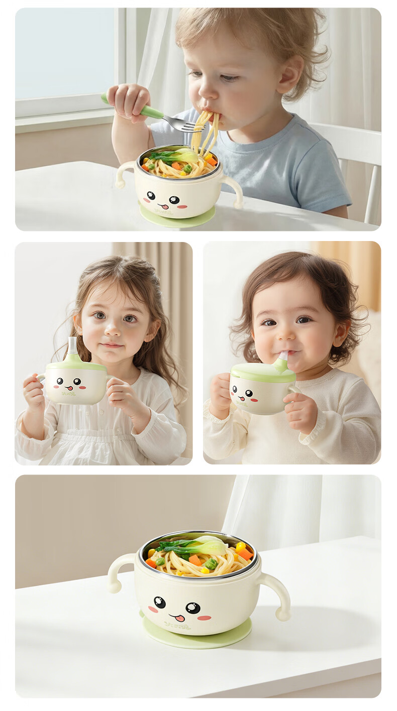 火火兔婴儿辅食碗宝宝喝汤碗316L不锈钢碗儿童碗宝宝碗吸盘吸管碗 小月龄辅食碗【316不锈钢内胆】一碗多用
