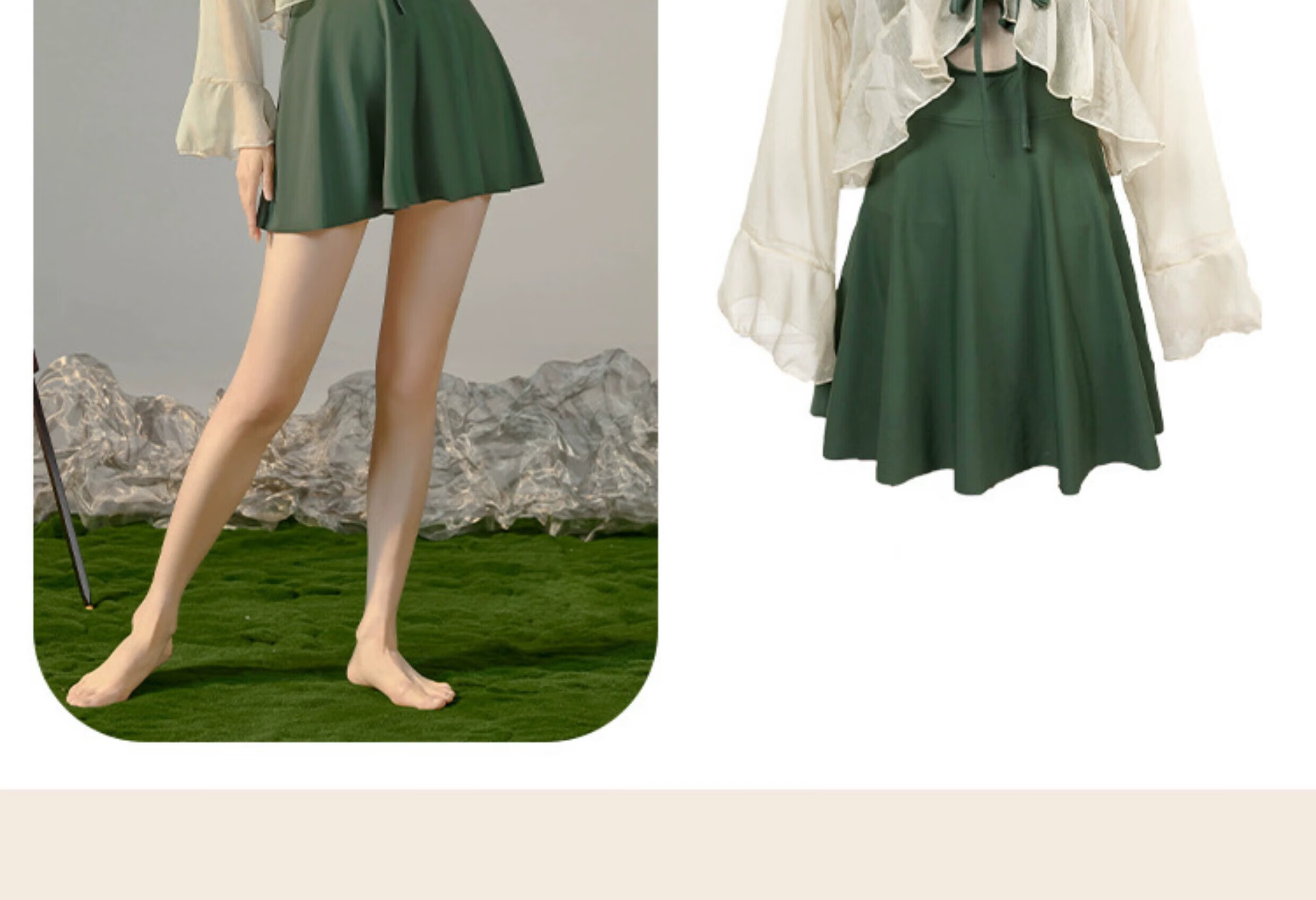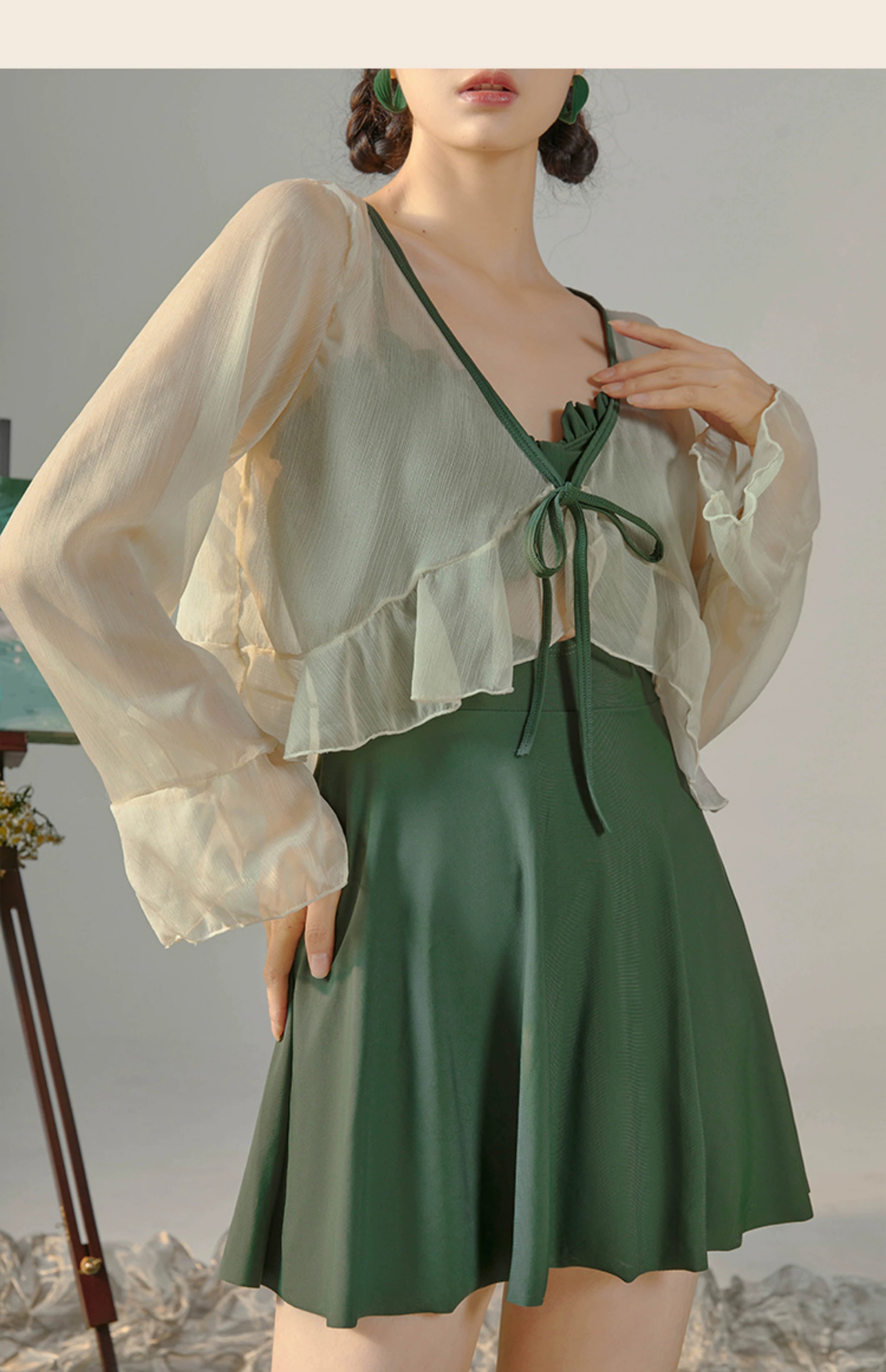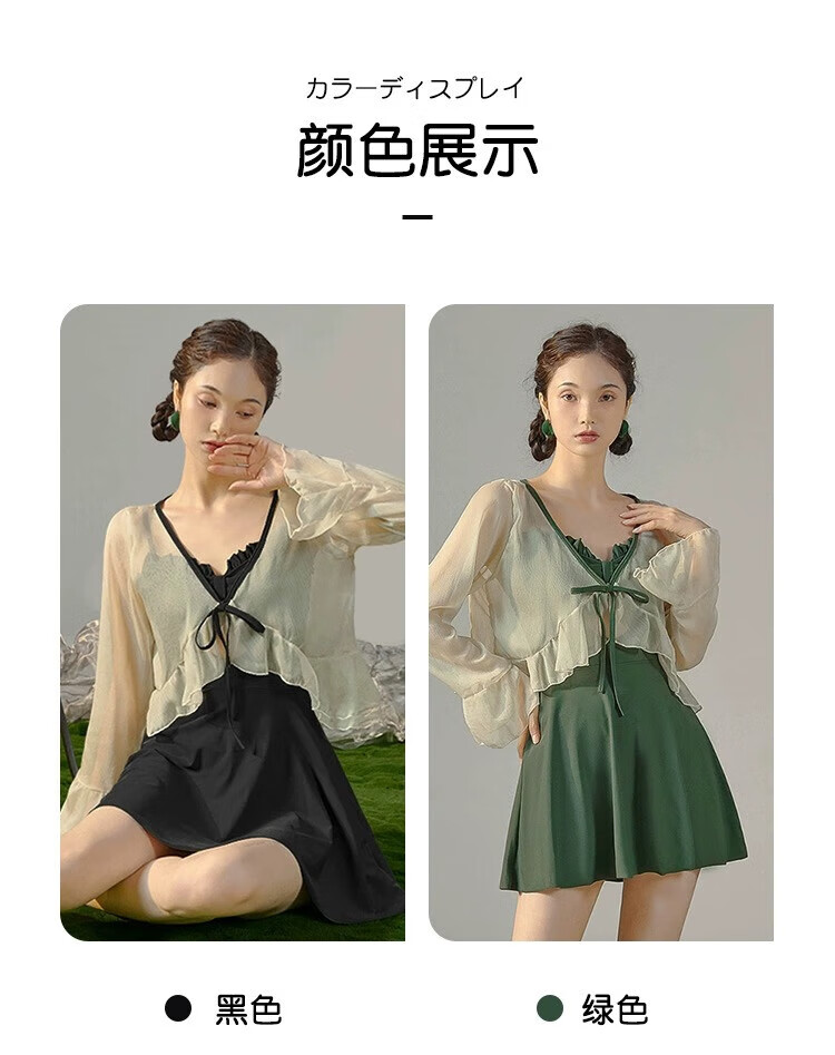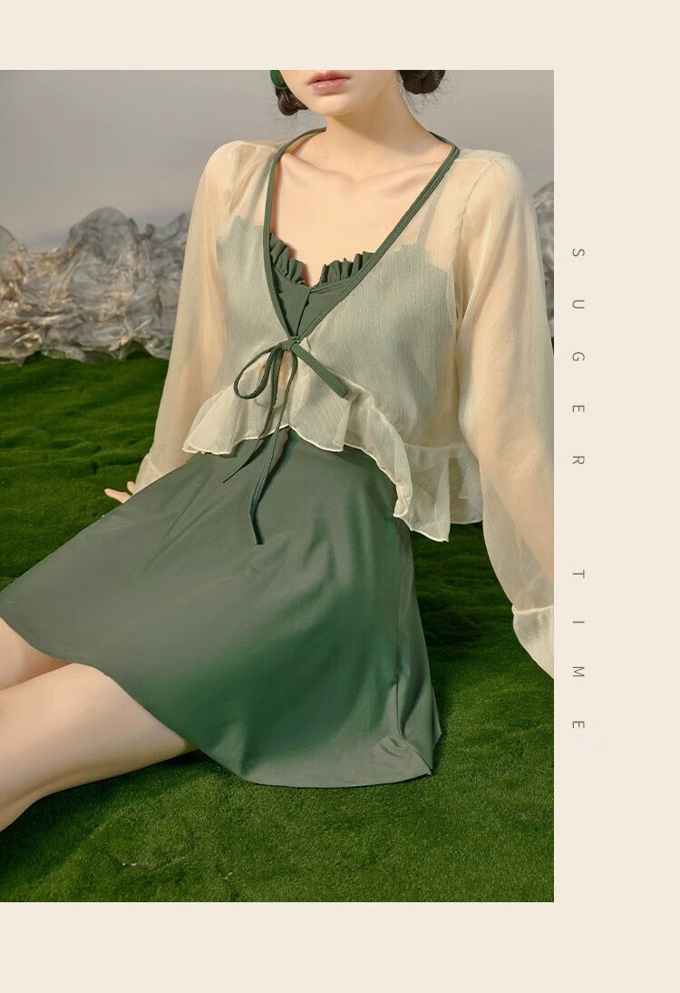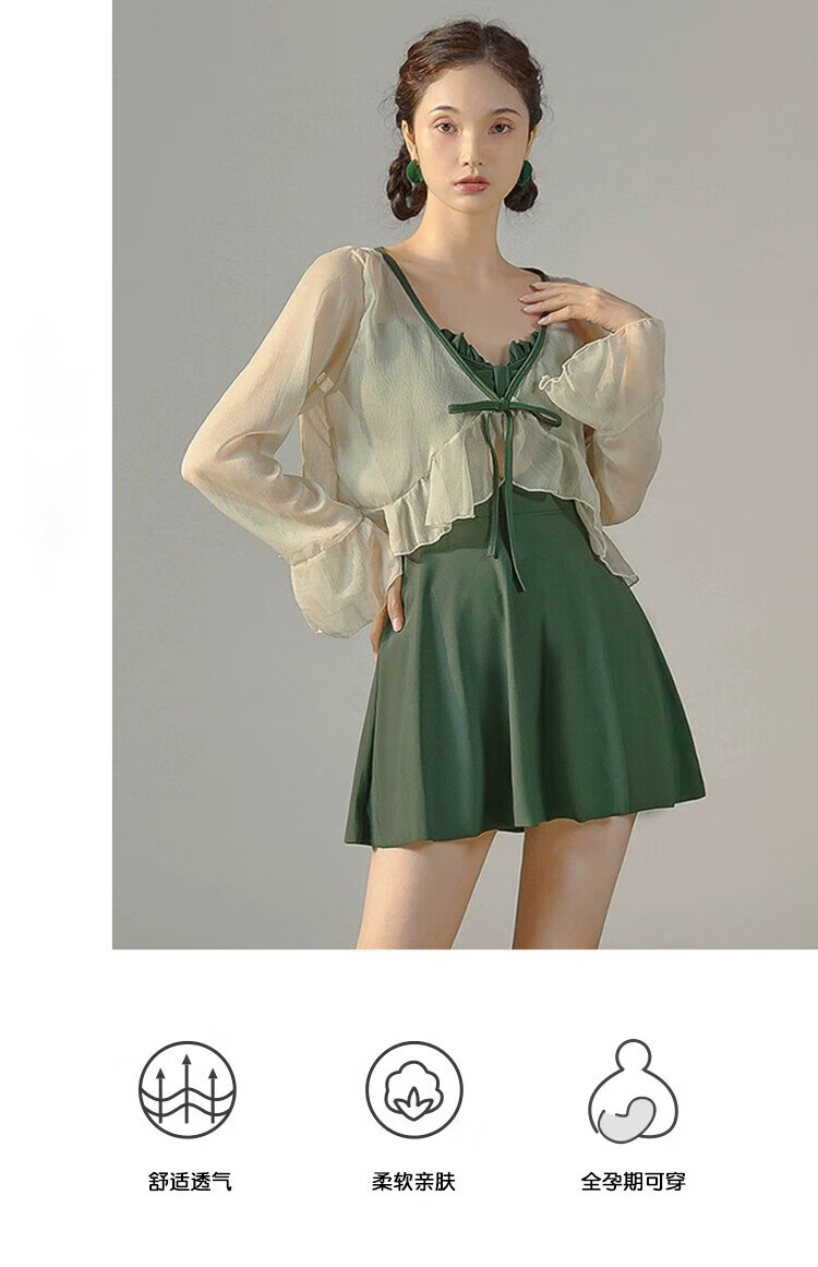 东方骆驼连体游泳衣女ins长袖夏季新款2026保守遮肚显瘦泡温泉感 绿色含外套 M 建议体重90-100斤