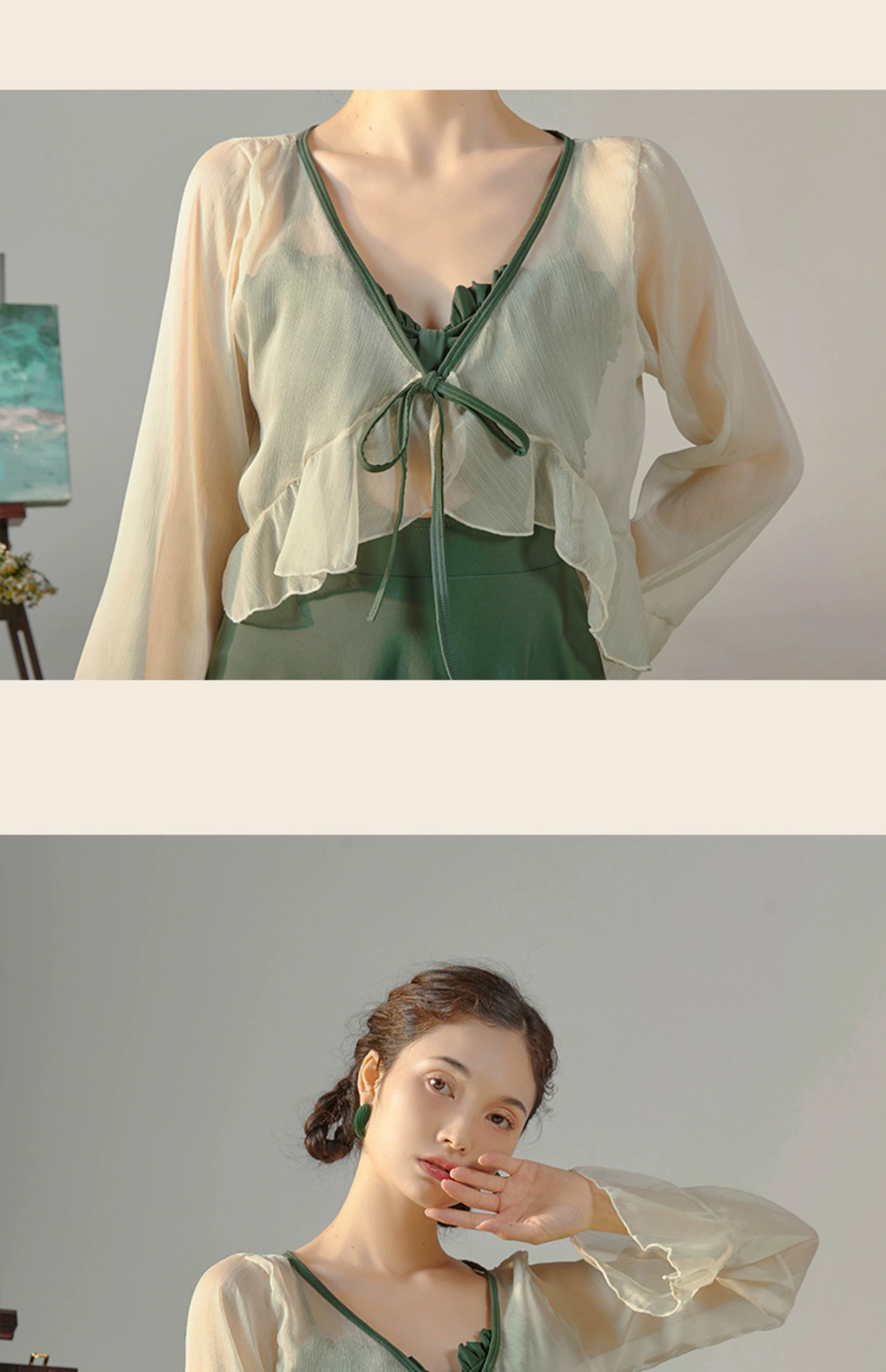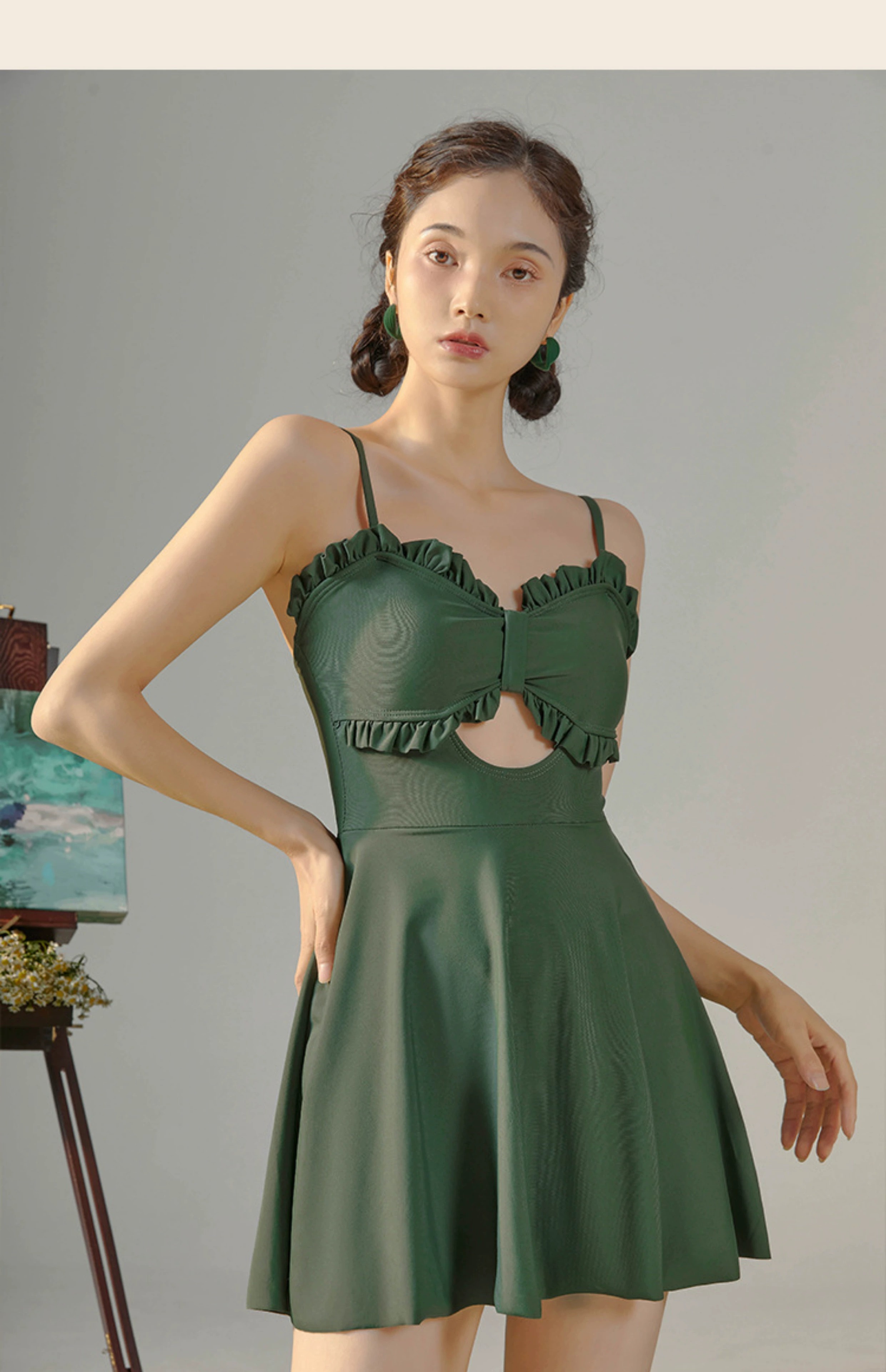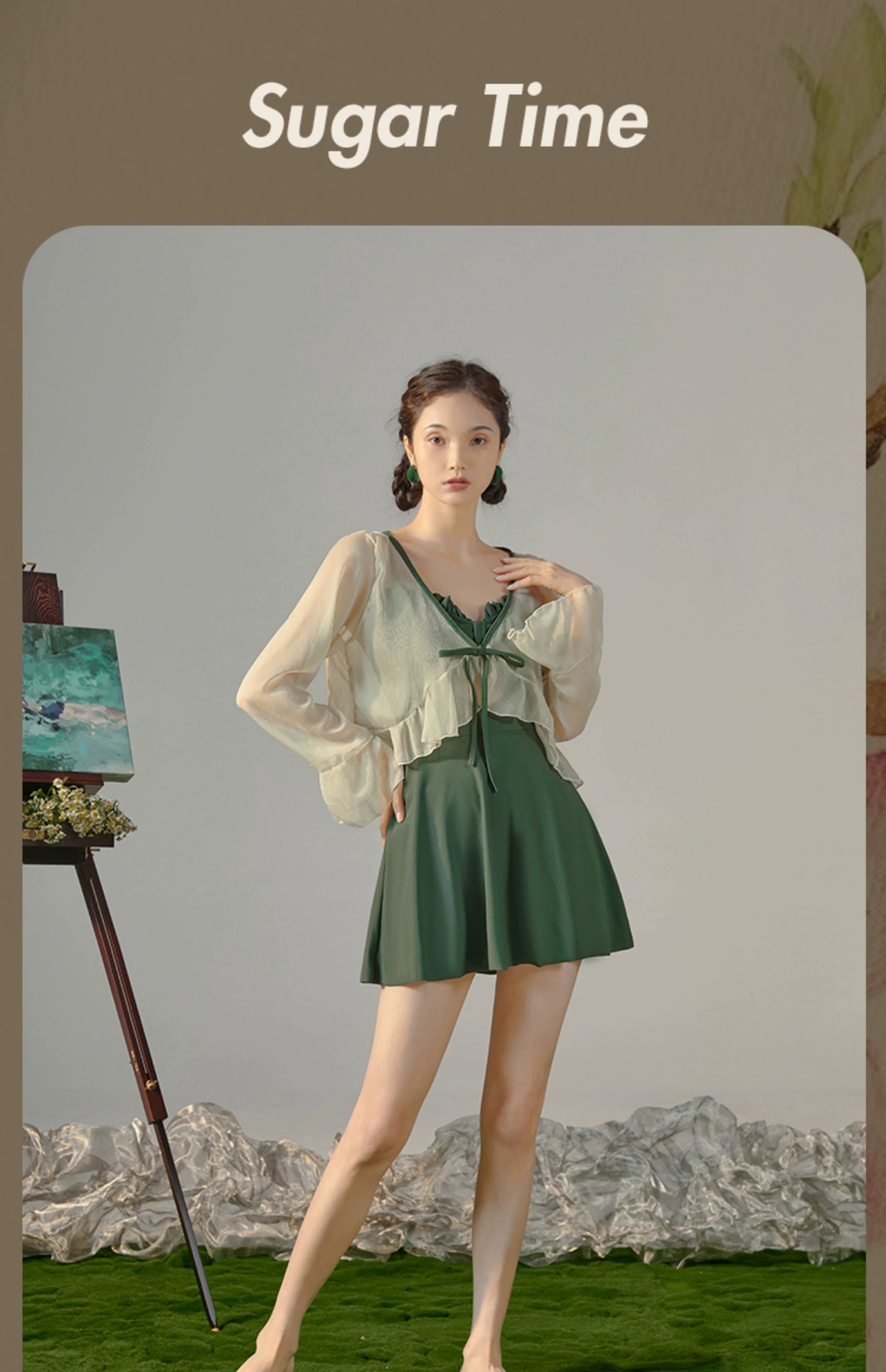 东方骆驼连体游泳衣女ins长袖夏季新款2026保守遮肚显瘦泡温泉感 绿色含外套 M 建议体重90-100斤