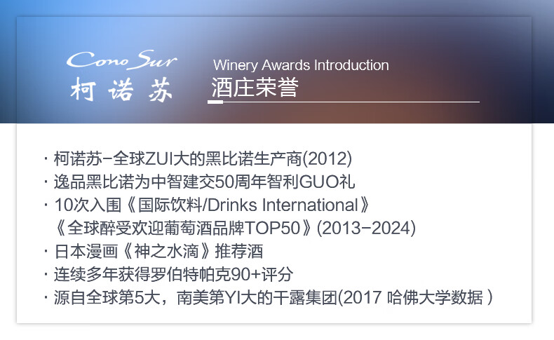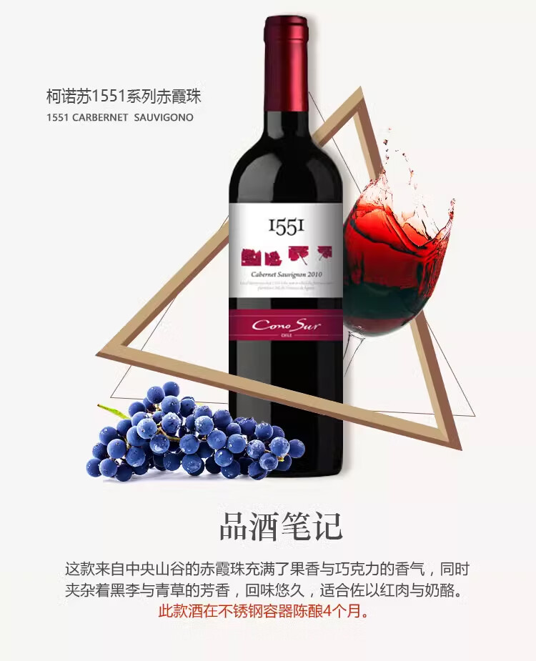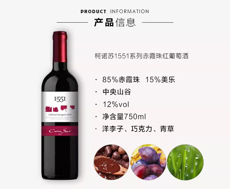 柯诺苏Conosur|智利干露集团红酒|1551赤霞珠干红葡萄酒红酒|原瓶进口 六支装