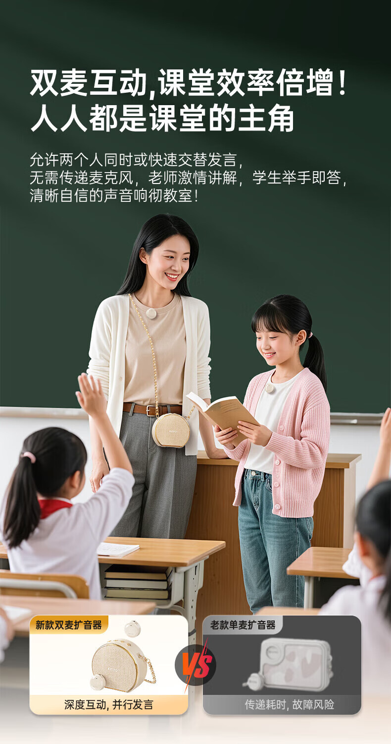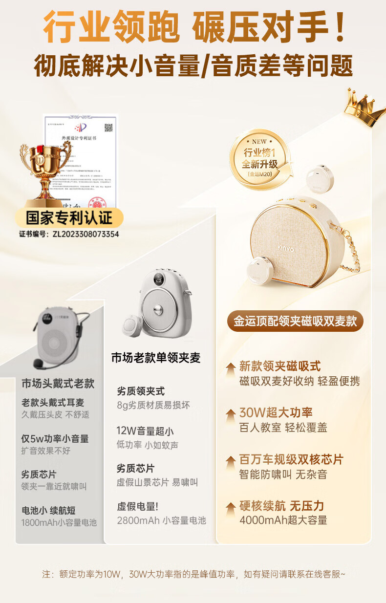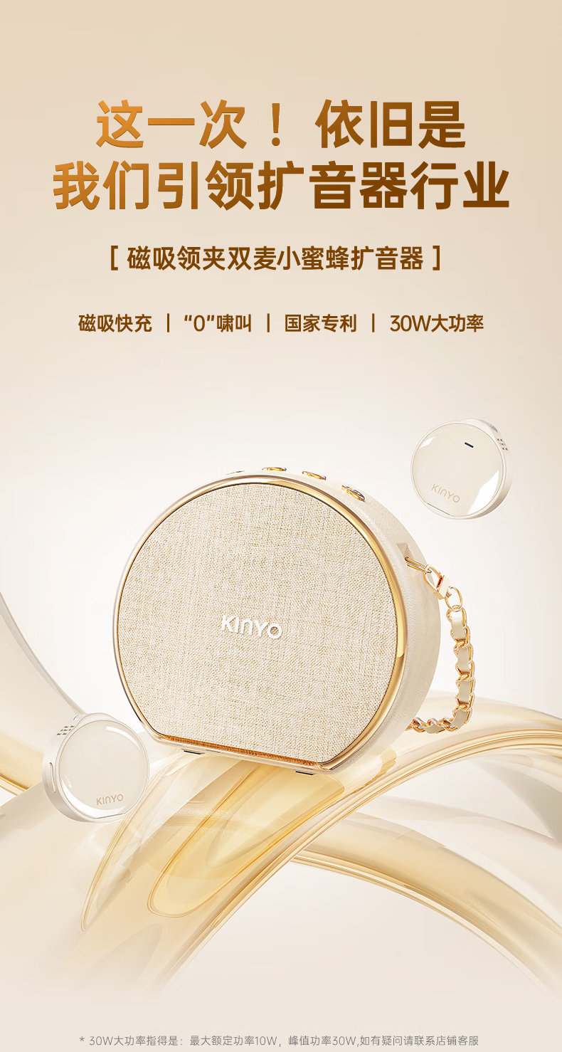 金运(KINYO)【新东方名师推荐丨超大音量】小蜜蜂扩音器教师专用无线领夹麦克风一拖二教学讲课导游防啸叫M20 顶配【双磁吸无线领夹麦】黑 【适合300人教室】30W峰值功率