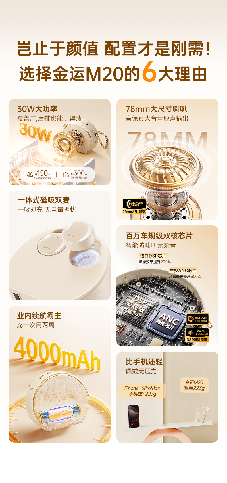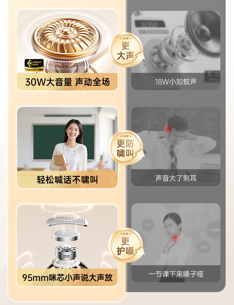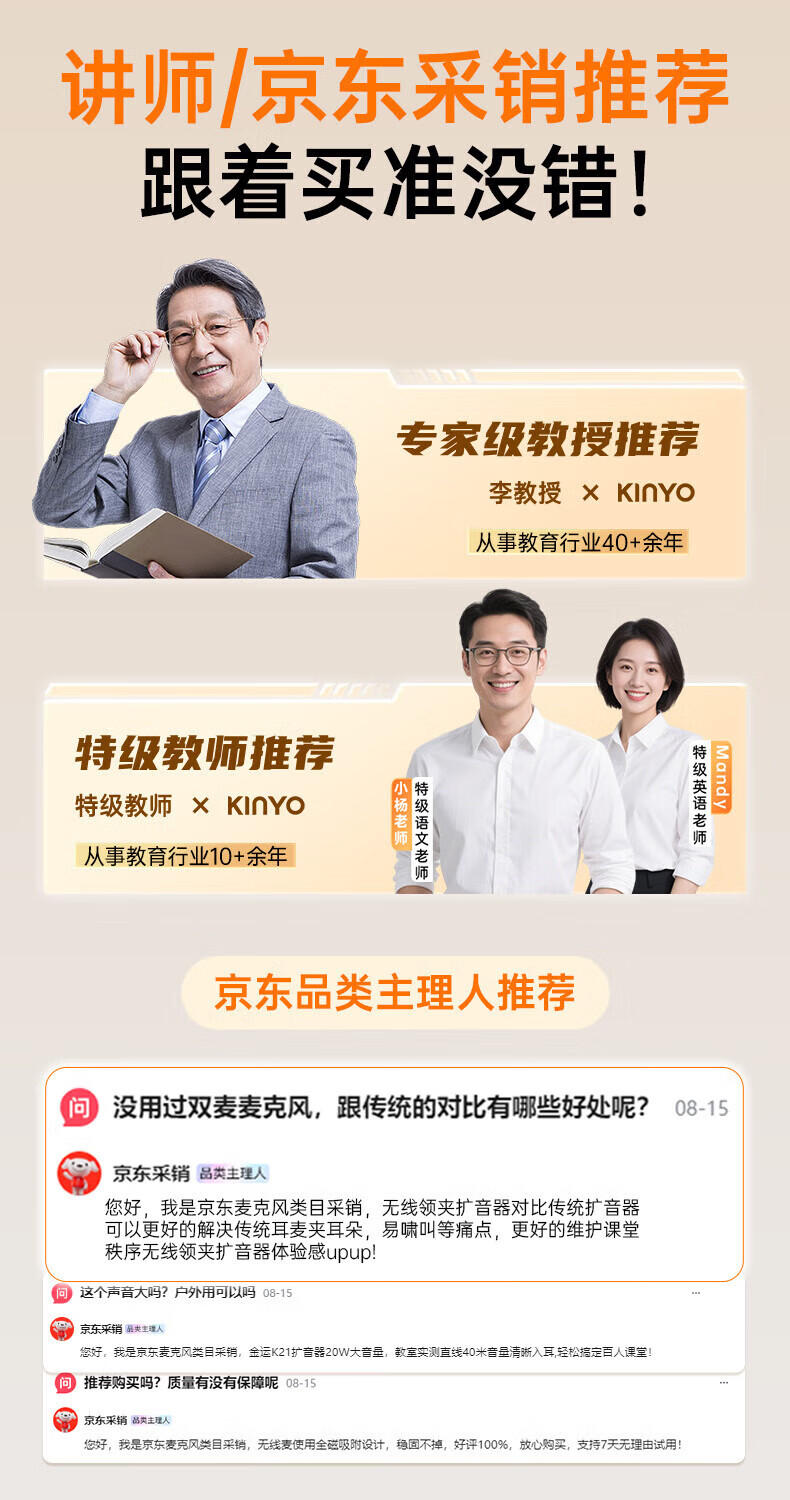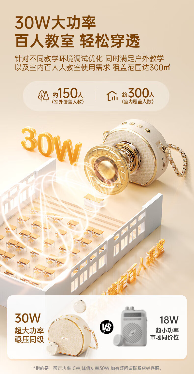 金运(KINYO)【新东方名师推荐丨超大音量】小蜜蜂扩音器教师专用无线领夹麦克风一拖二教学讲课导游防啸叫M20 顶配【双磁吸无线领夹麦】黑 【适合300人教室】30W峰值功率