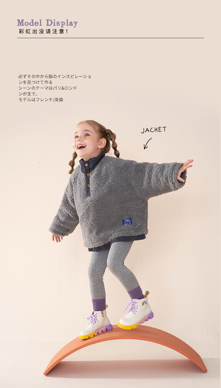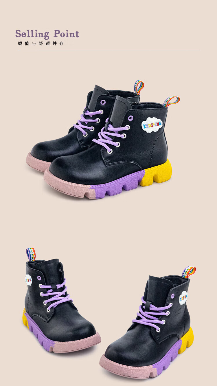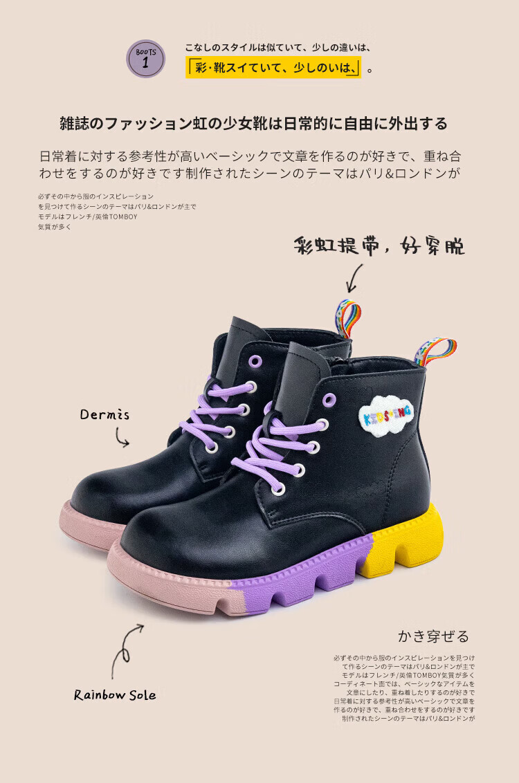 kids.ing【秒杀捡漏】可迪星女童马丁靴秋冬女童短靴中大童单靴女孩靴子 灰色旅行家 34 适合脚长20.6-21.2cm