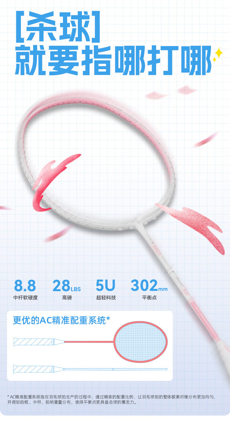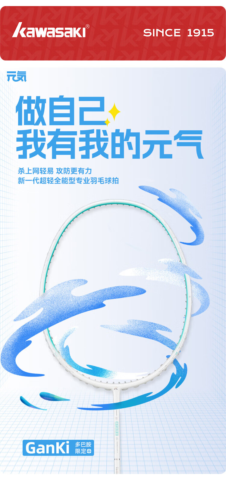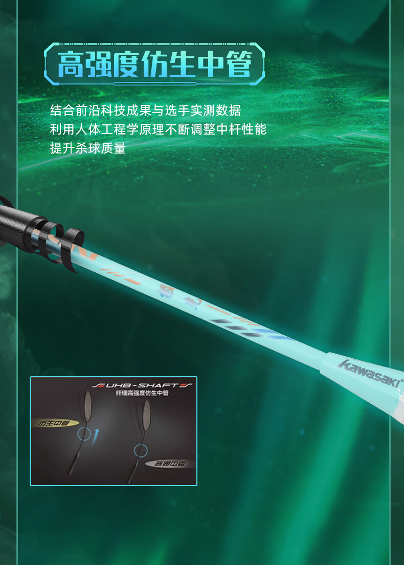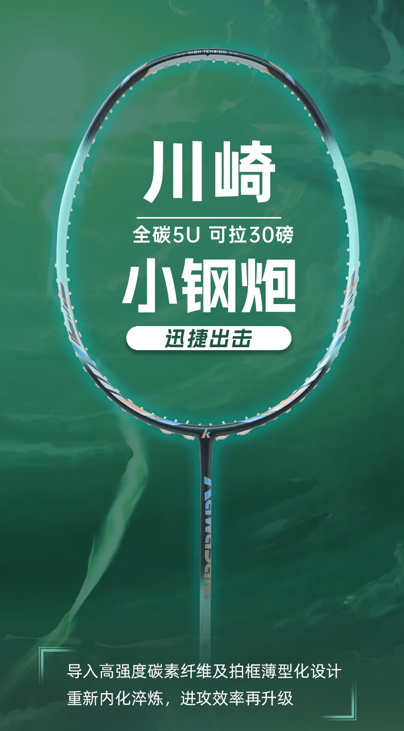 川崎(KAWASAKI)羽毛球拍高颜值女男专业高磅小钢炮元気超轻全碳素5U学生羽球拍礼 小钢炮绿【青线+手胶+拍套】5U单拍 28磅【球场王者】