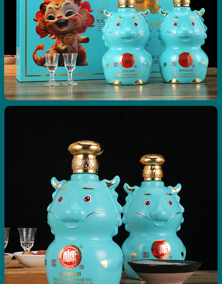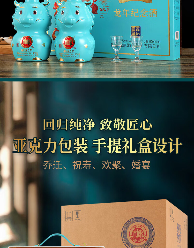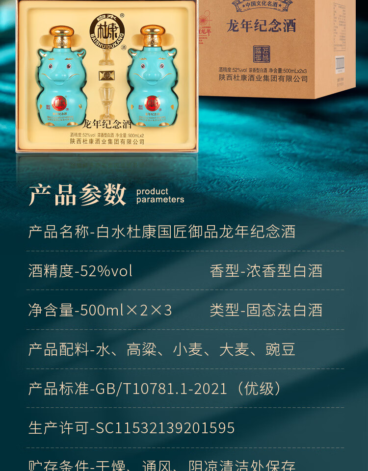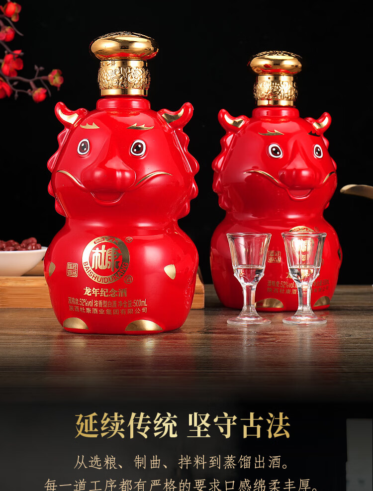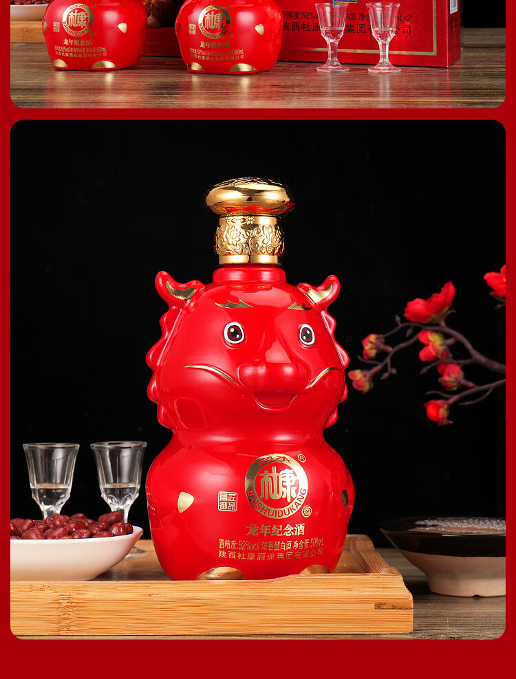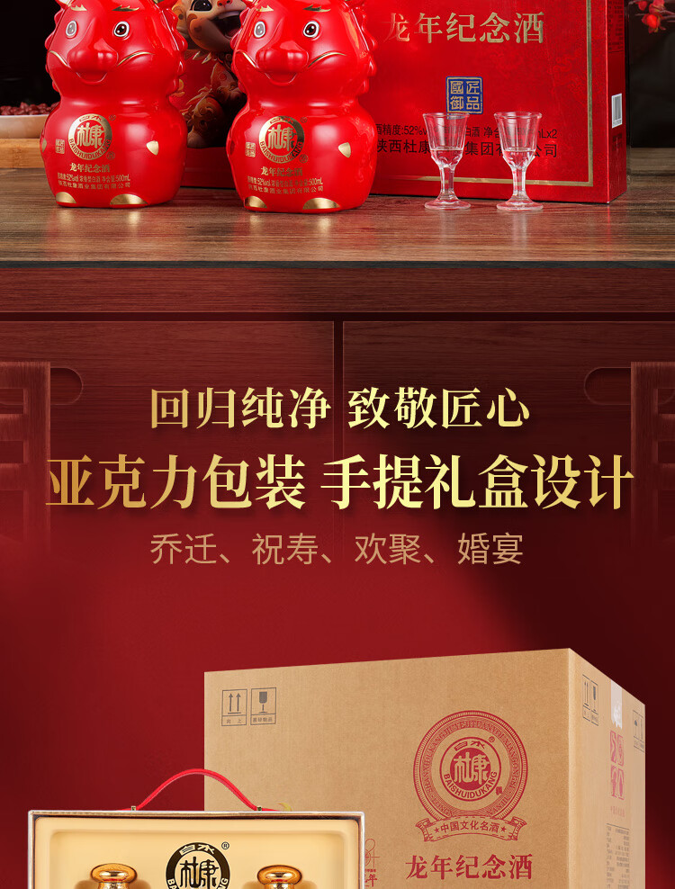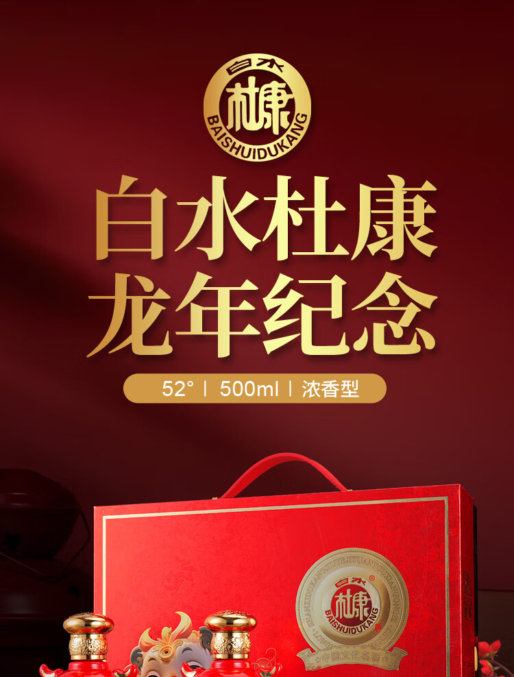 白水杜康国匠御品龙年纪念酒 礼盒装 52度浓香型白酒 500ml*2瓶 国匠御品龙年纪念酒红色 1礼盒装