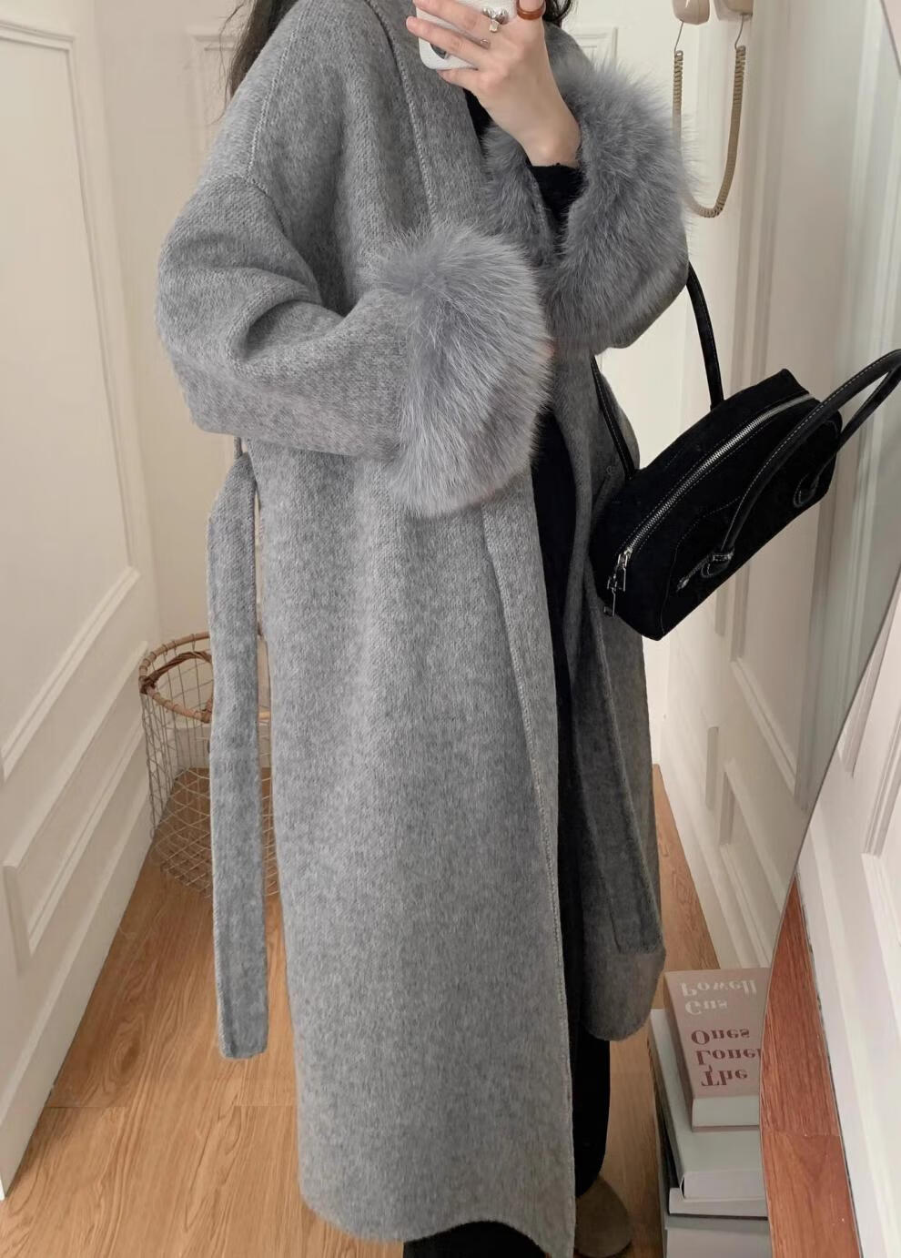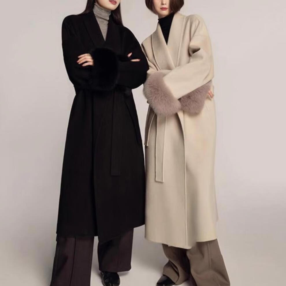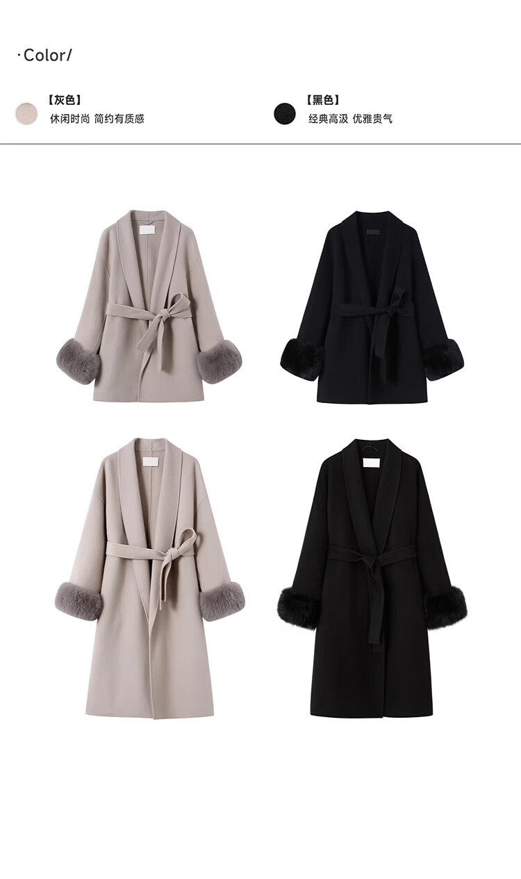 FOURDATRY双面呢大衣女2025秋冬中长款红色高级感仿狐狸毛呢外套女羊绒大衣 红色 XS