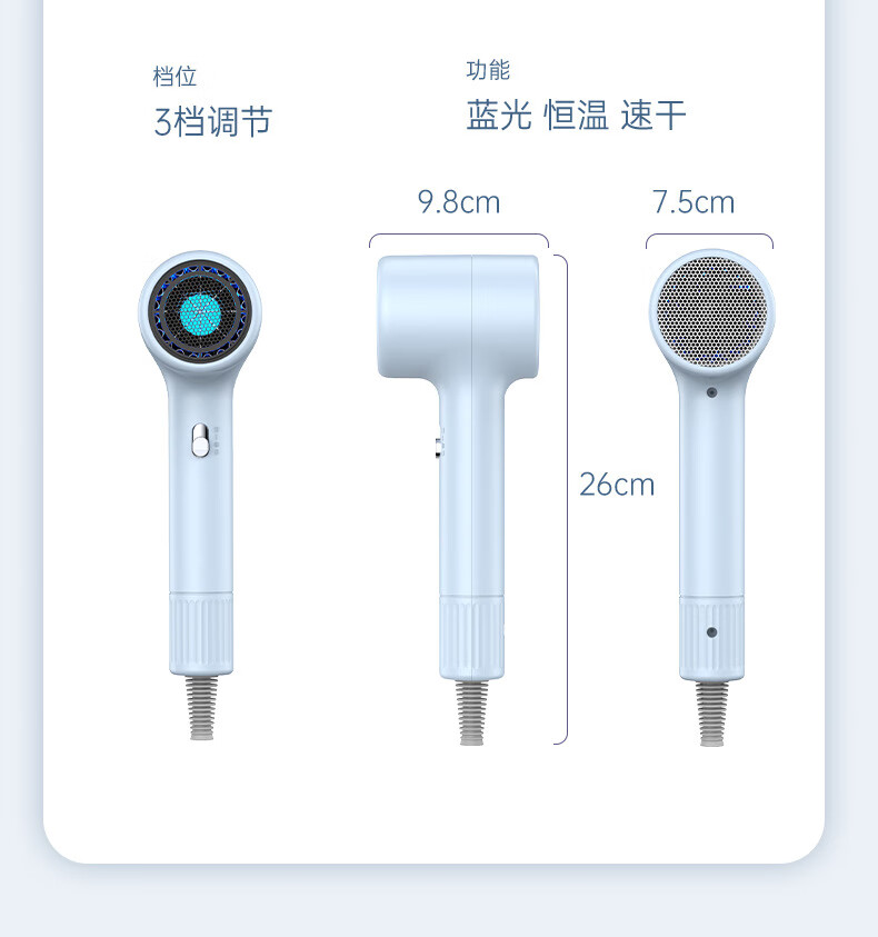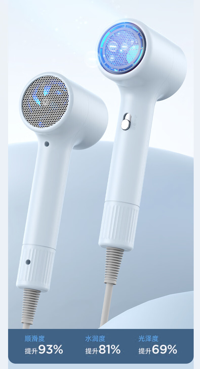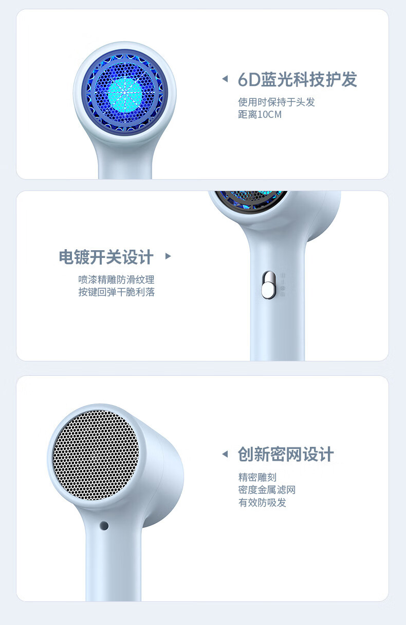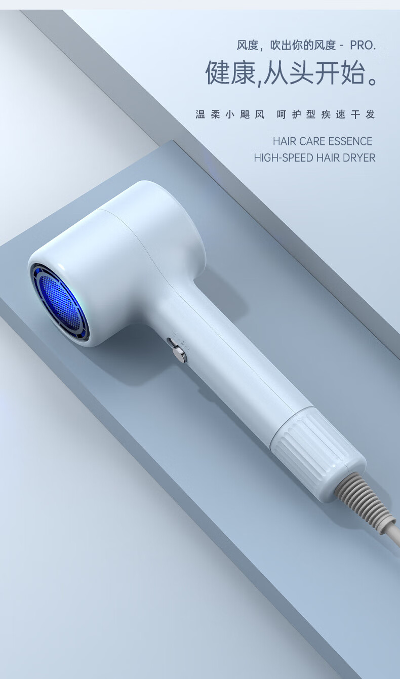 【严选】吹风机蓝光负离子家用发廊宿舍吹风筒电吹风 T1-珍珠白【带蓝光】 (1个装) 中规-220V【国内使用】