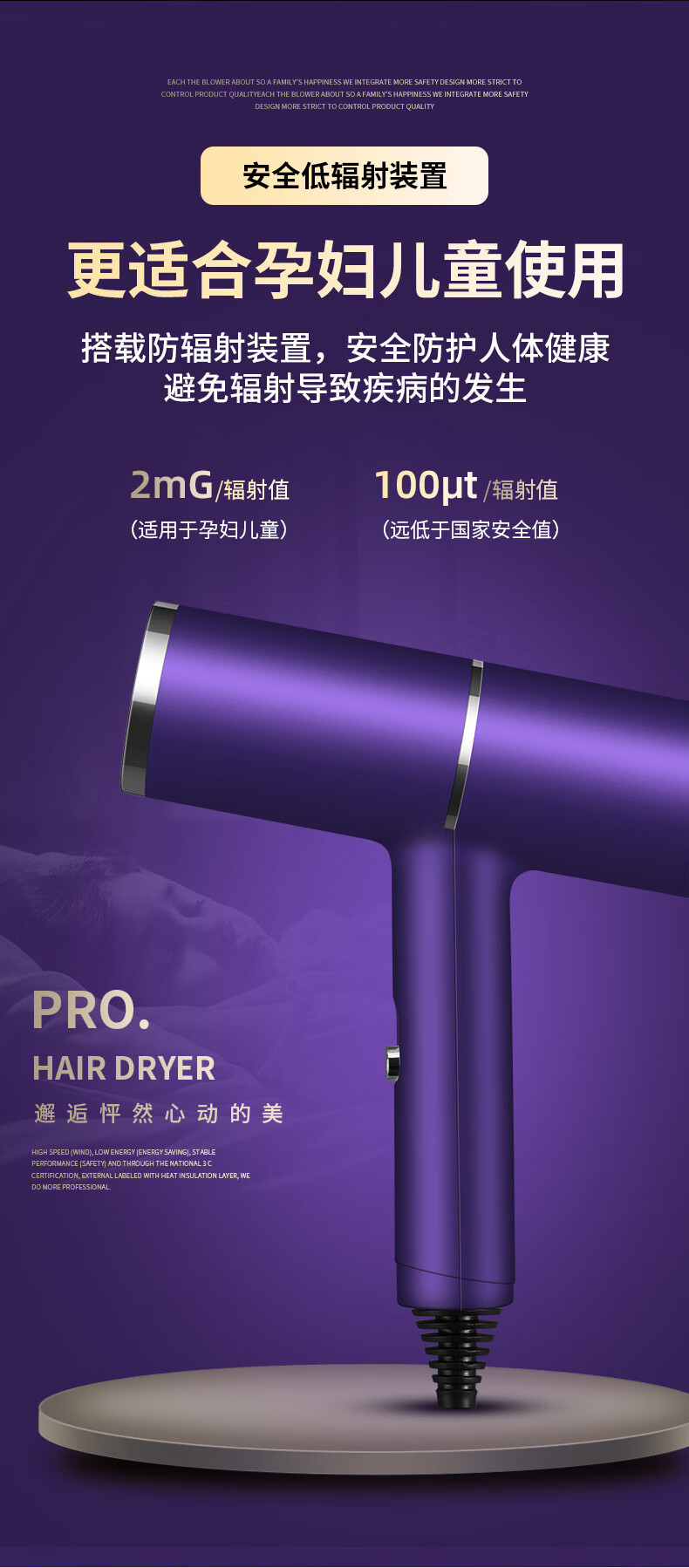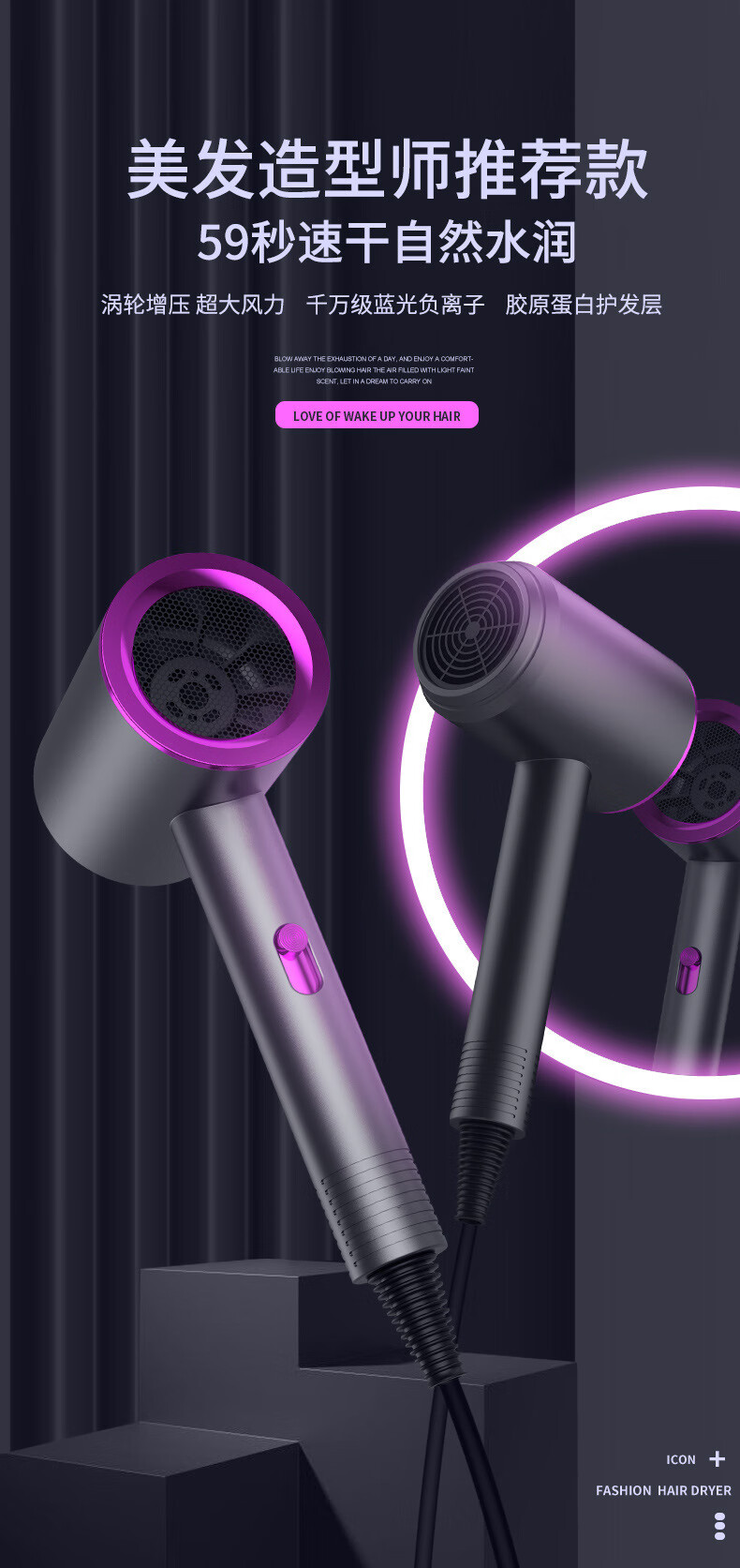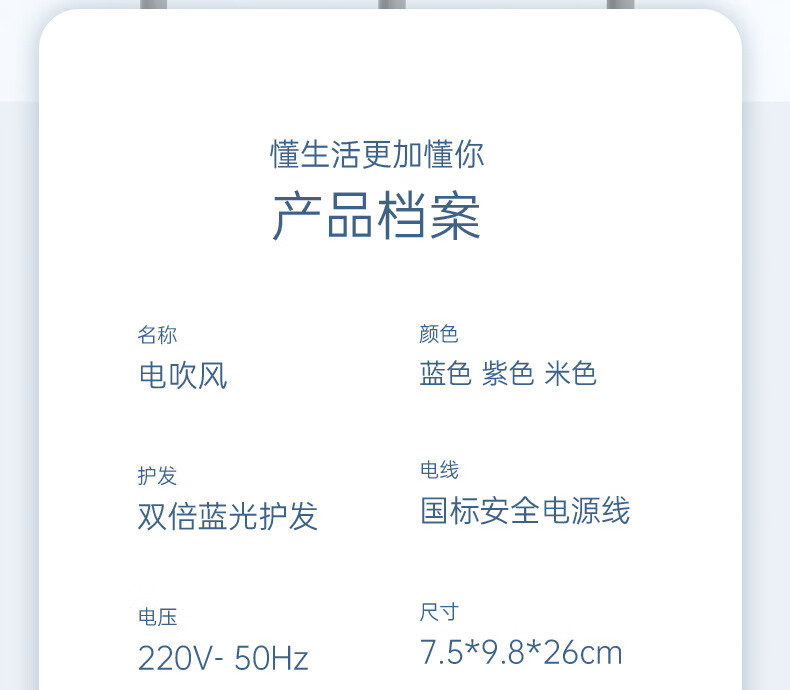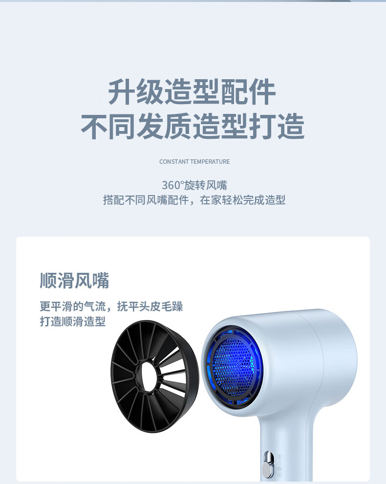 【严选】吹风机蓝光负离子家用发廊宿舍吹风筒电吹风 T1-珍珠白【带蓝光】 (1个装) 中规-220V【国内使用】