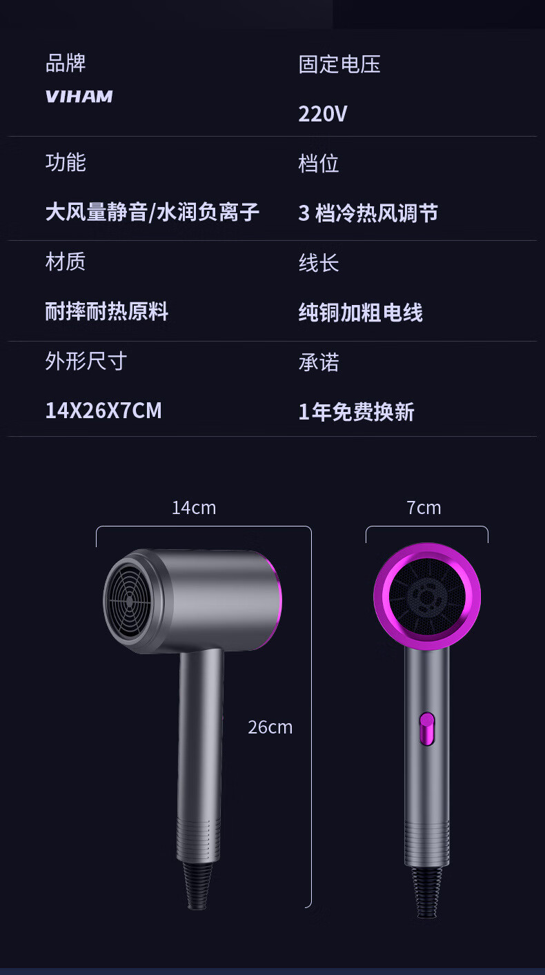 美的(Midea)5亿等离子护发电吹风 家用负离子吹风筒 1800W大功率 便携吹风机FJ308银 家电国家补贴 圣诞节礼物