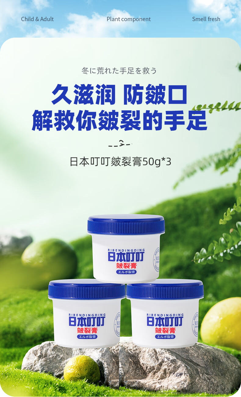 日本叮叮皴裂膏皲裂膏手足干裂防脚后跟干裂龟裂膏滋润肌肤护足霜50g*3