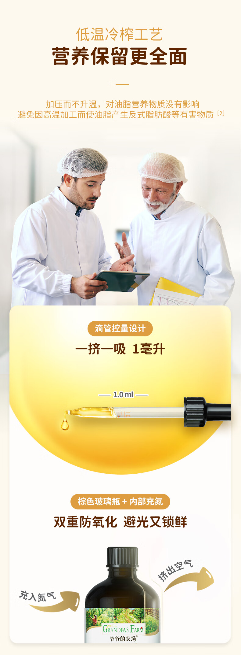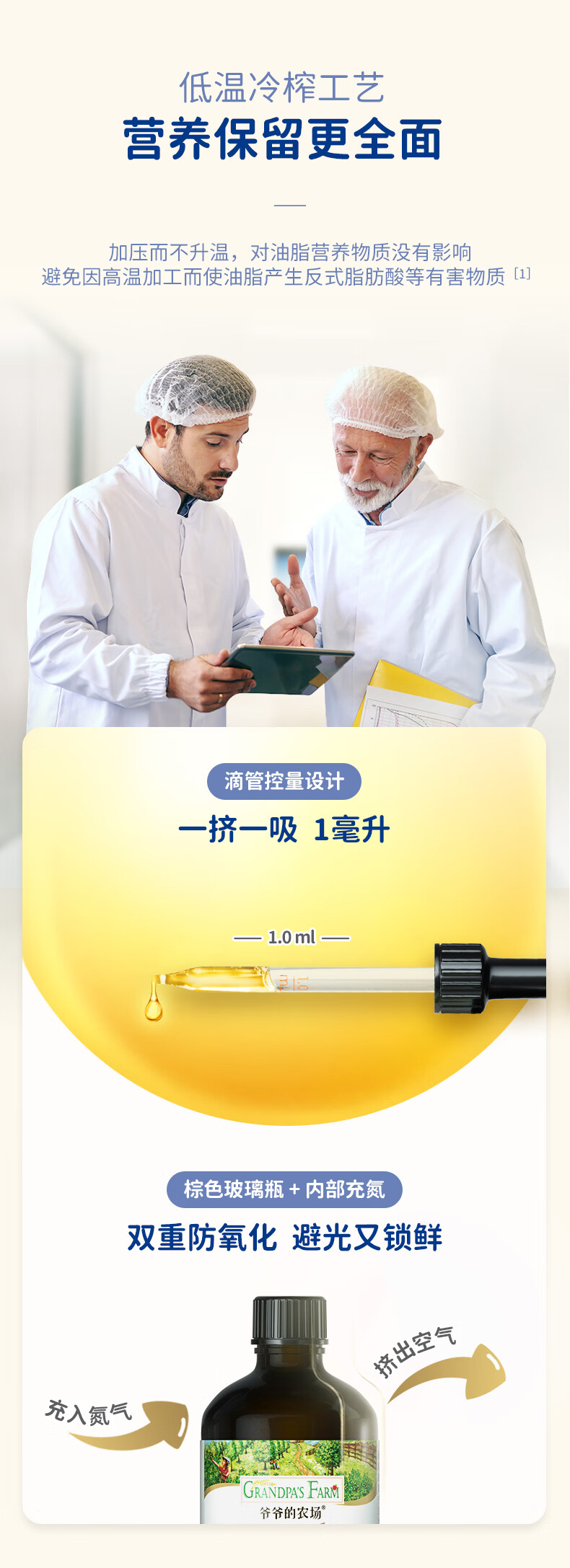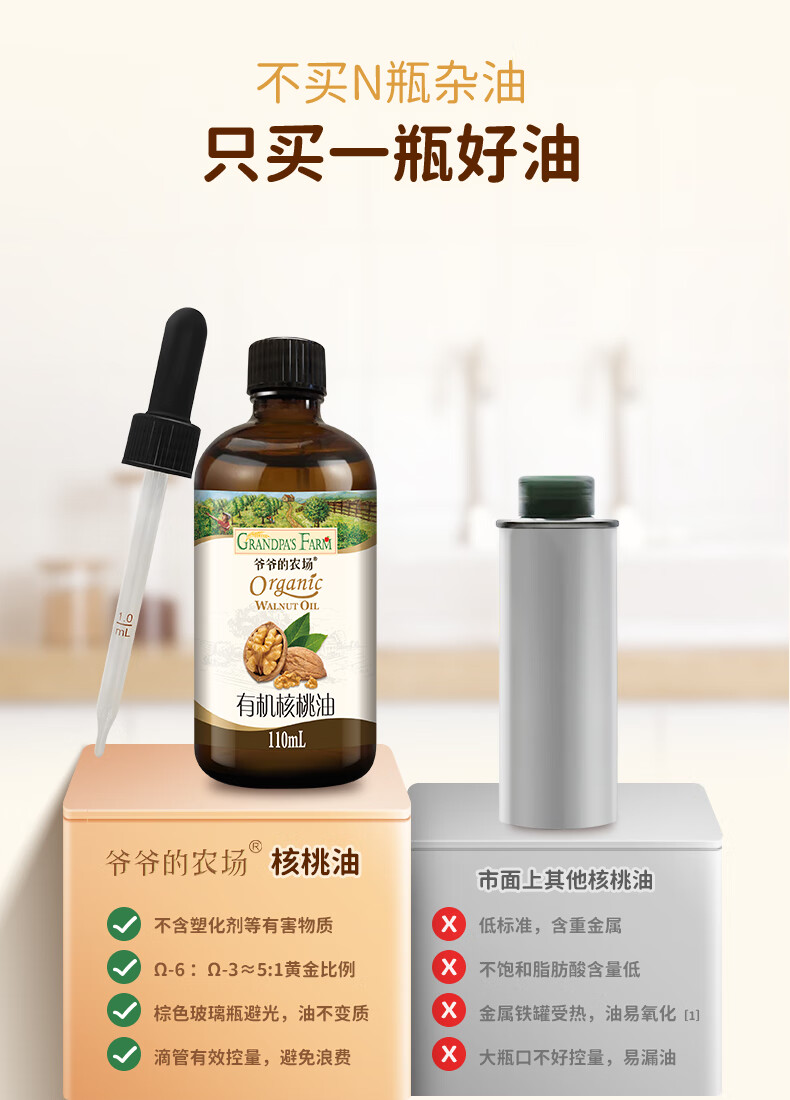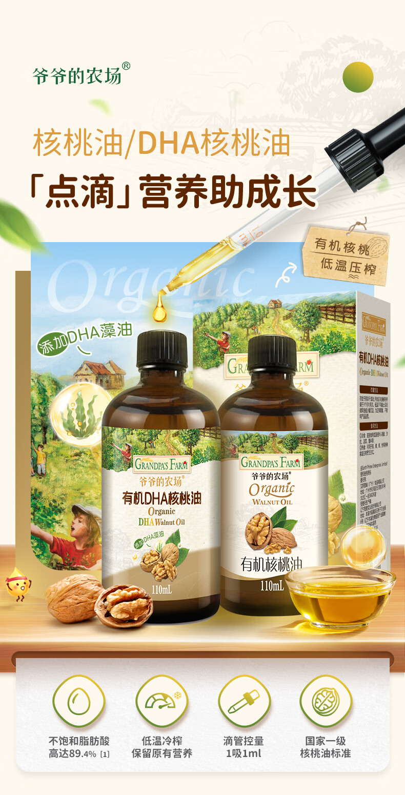 爷爷的农场宝宝孕妇滴管控量油营养食用油 儿童热炒凉拌营养辅食油 滴管有机核桃油110ml
