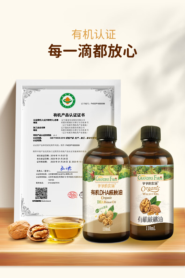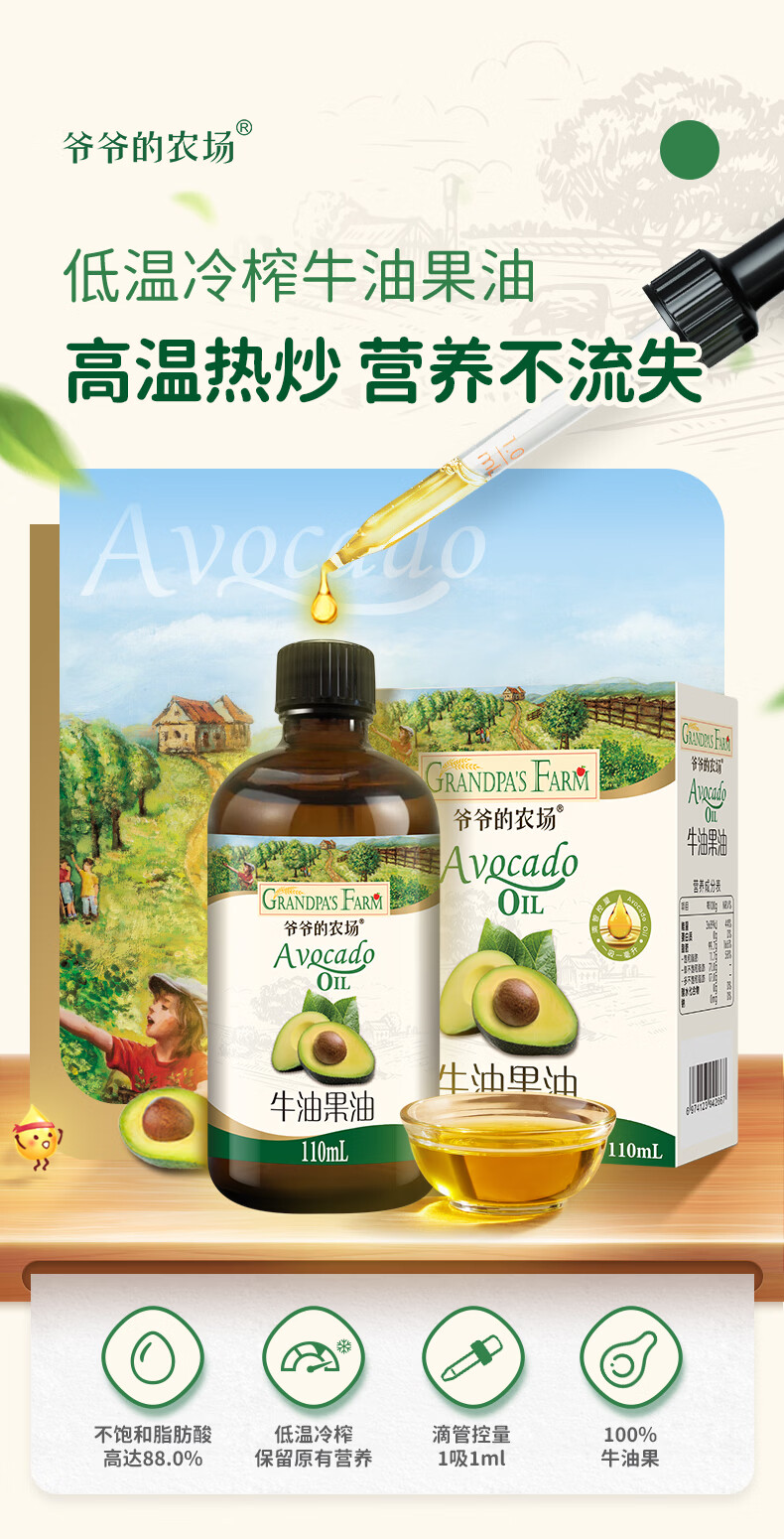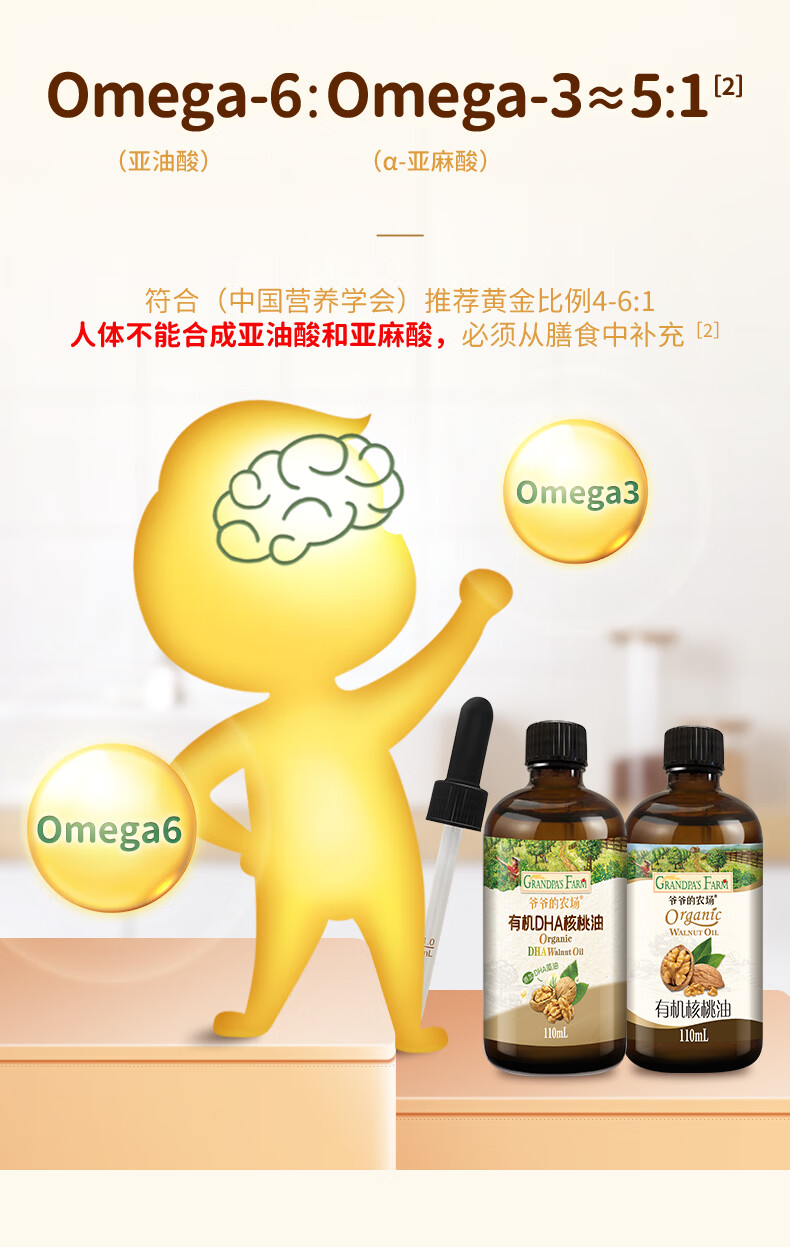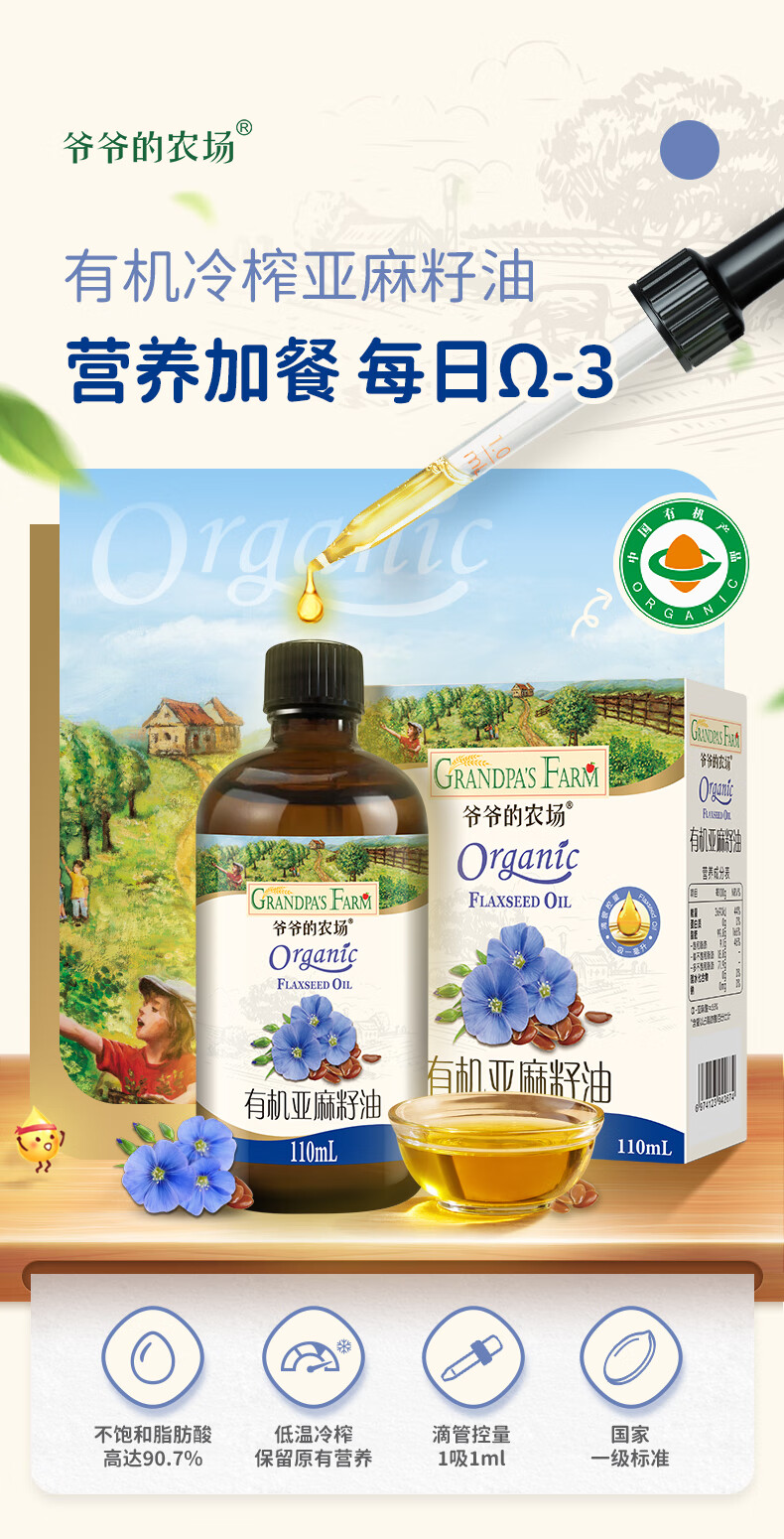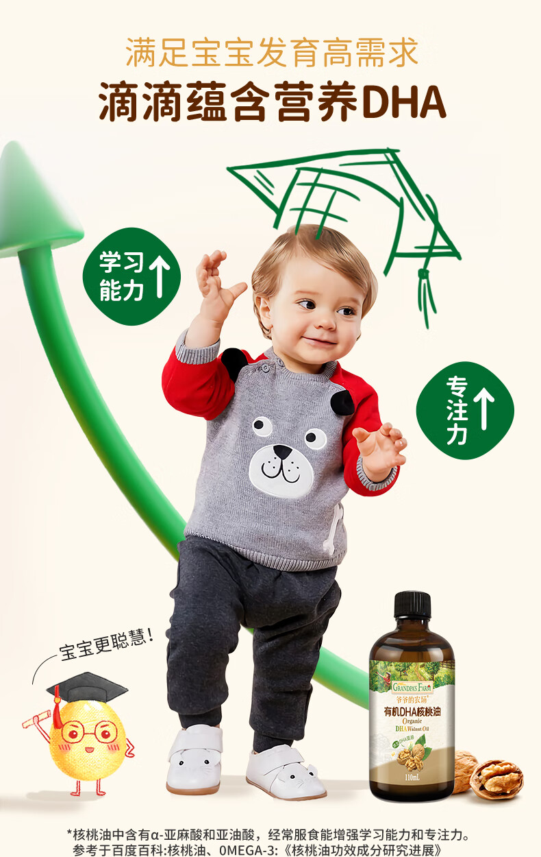爷爷的农场宝宝孕妇滴管控量油营养食用油 儿童热炒凉拌营养辅食油 滴管有机核桃油110ml