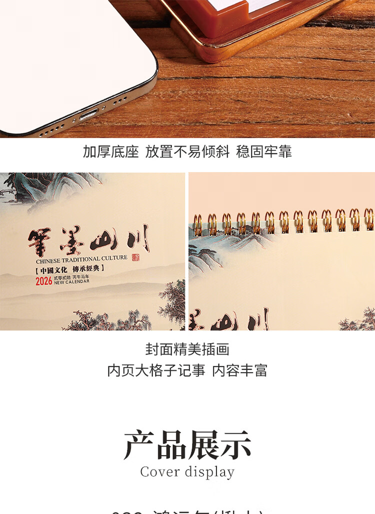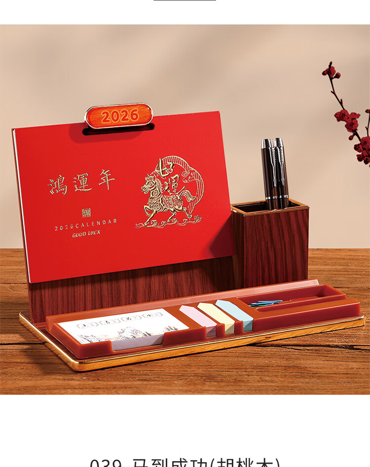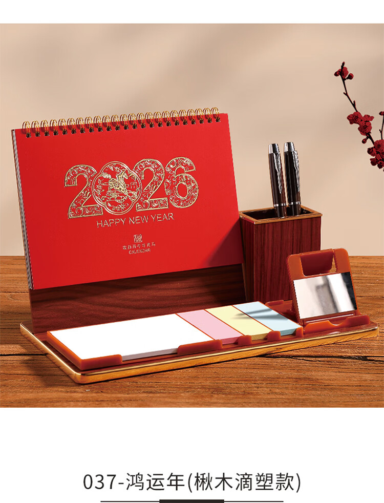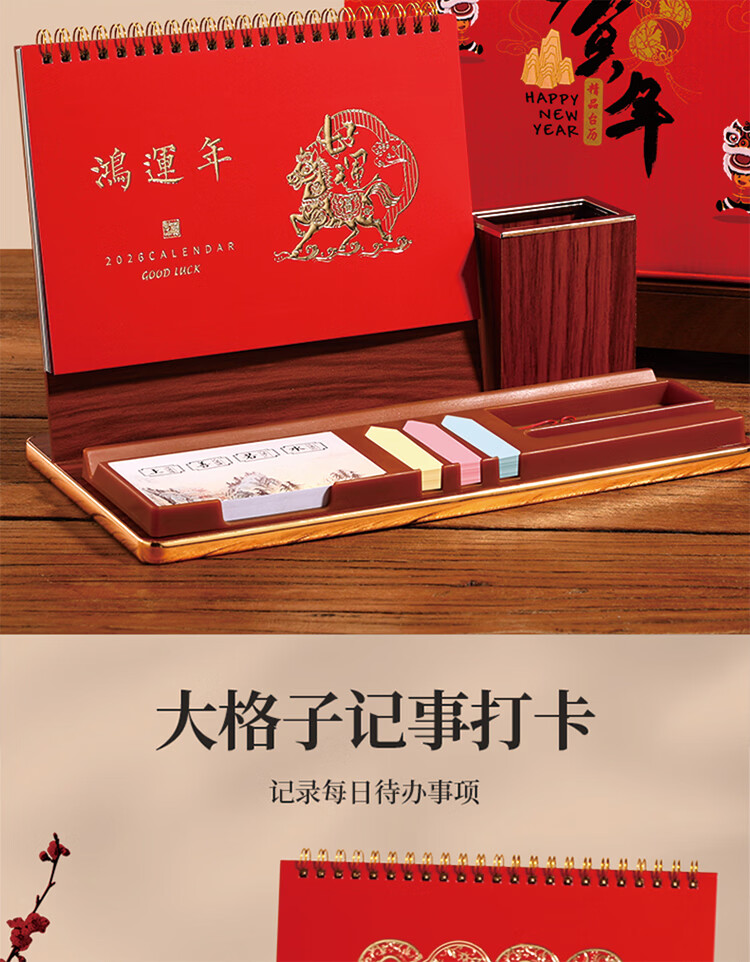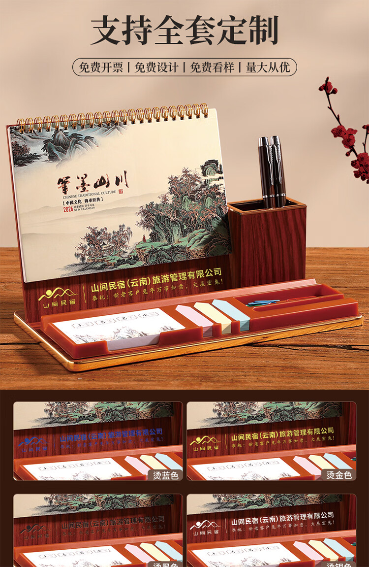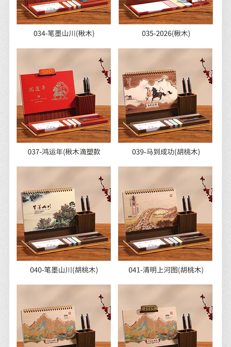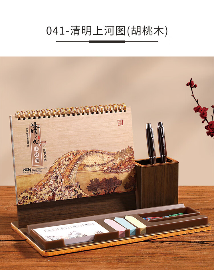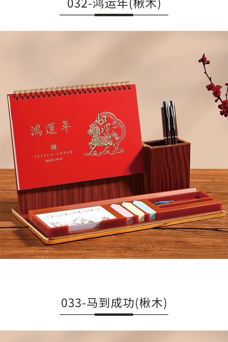 筏芯2026年台历新款定制日历马年中国风多功能木质笔筒创意计划本高档办公订制企业定做logo月历 176-043笔墨山川(胡桃木滴塑款)赠礼盒