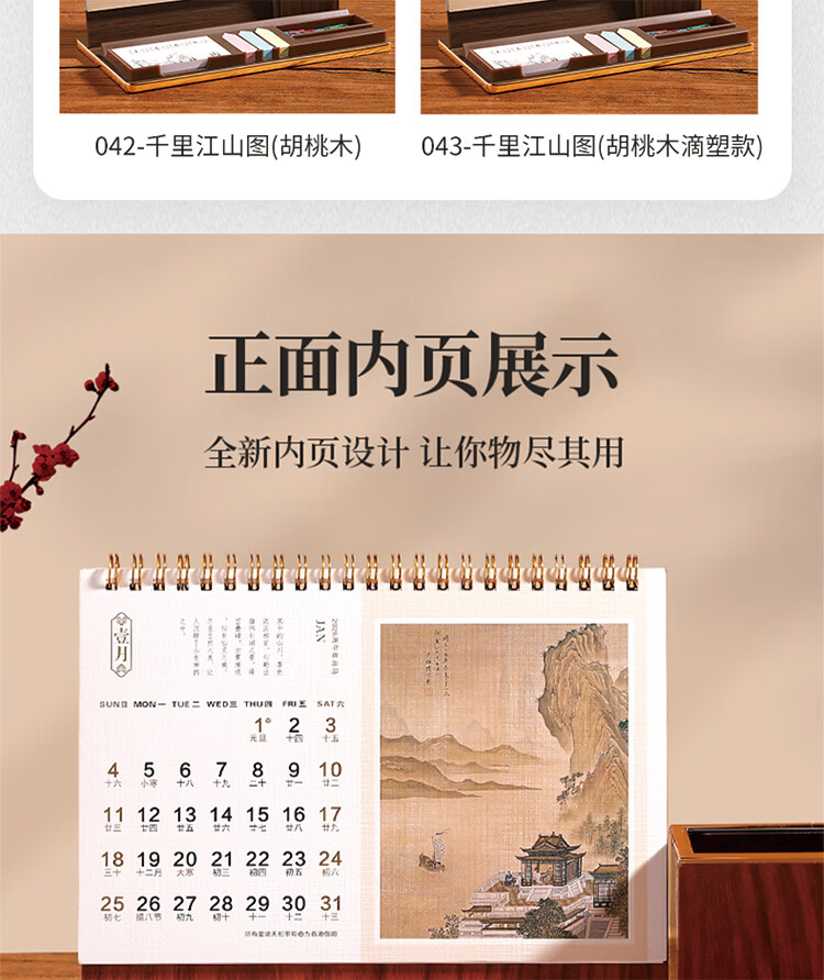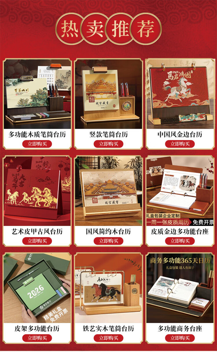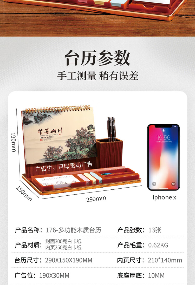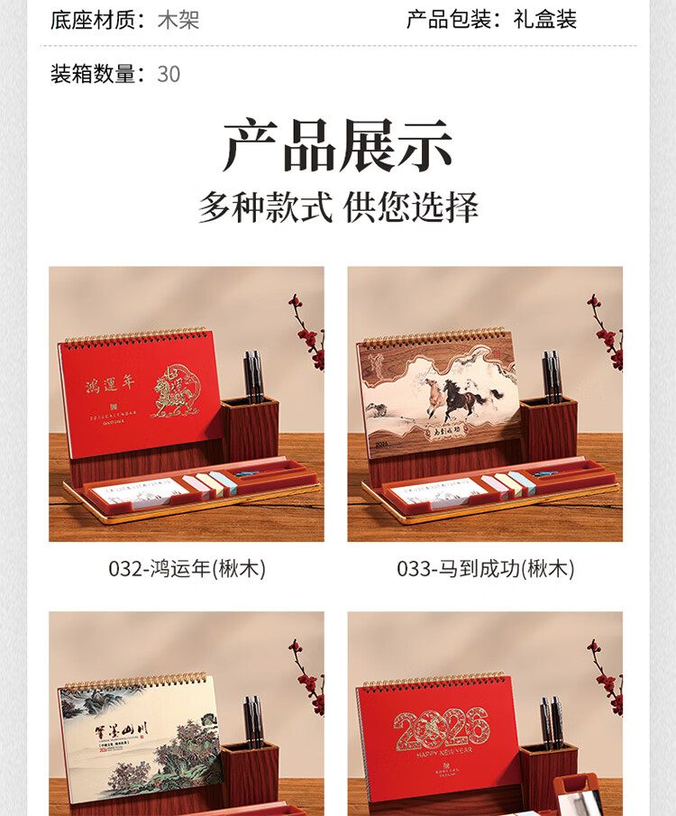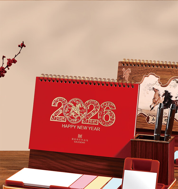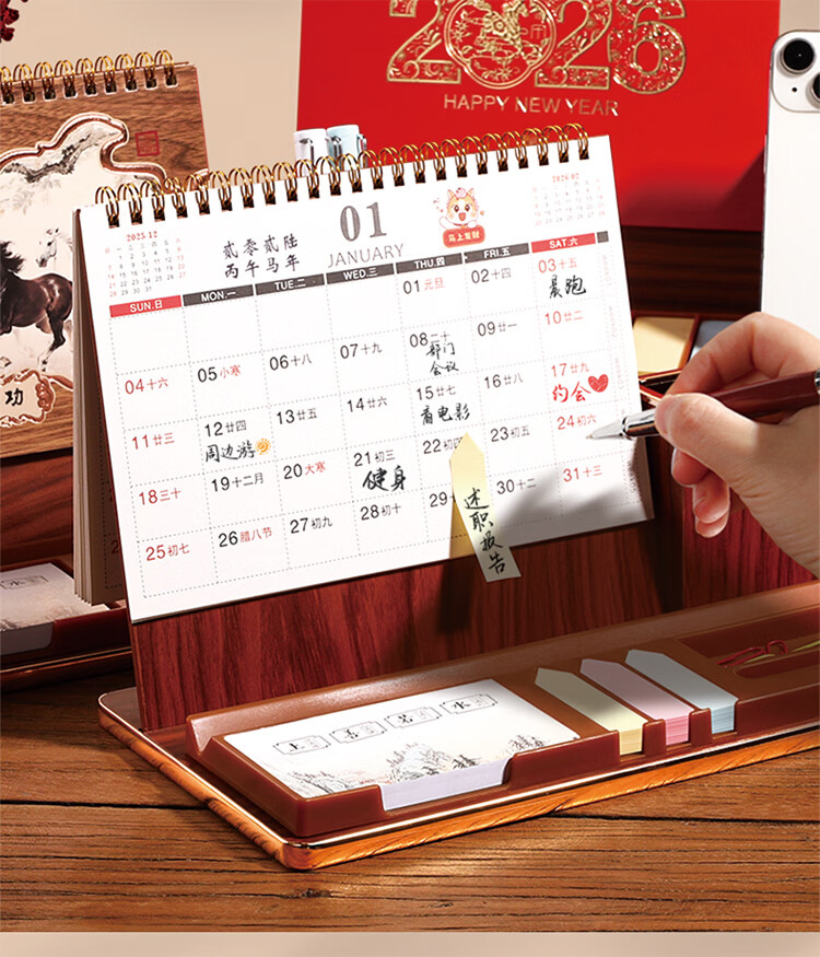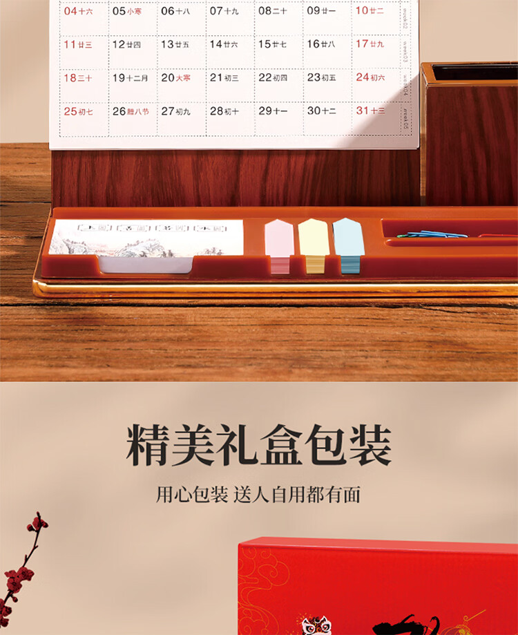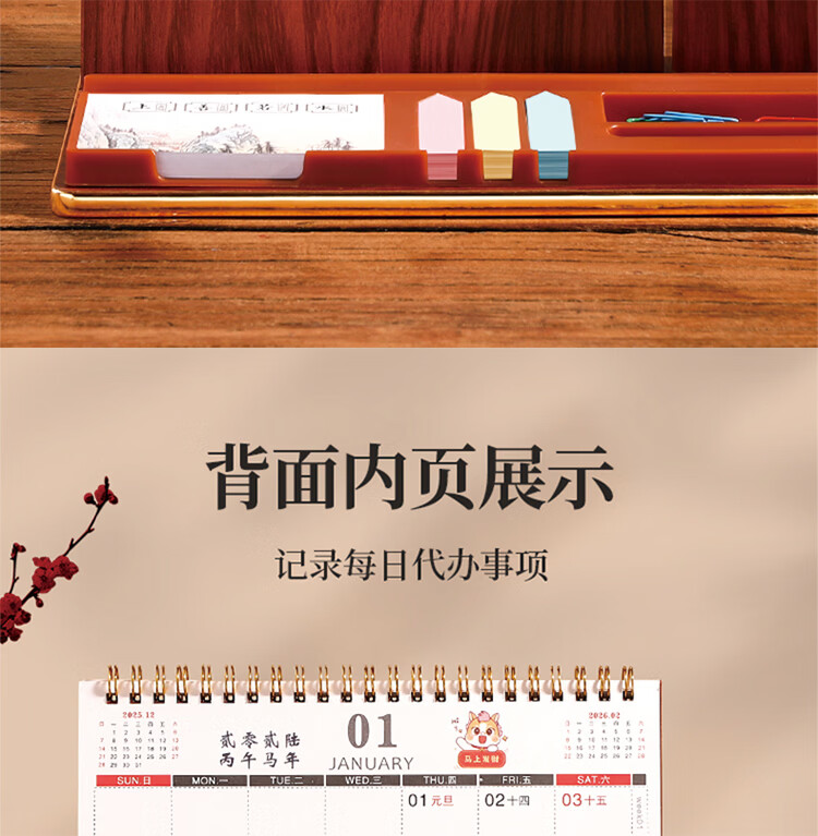 筏芯2026年台历新款定制日历马年中国风多功能木质笔筒创意计划本高档办公订制企业定做logo月历 176-043笔墨山川(胡桃木滴塑款)赠礼盒