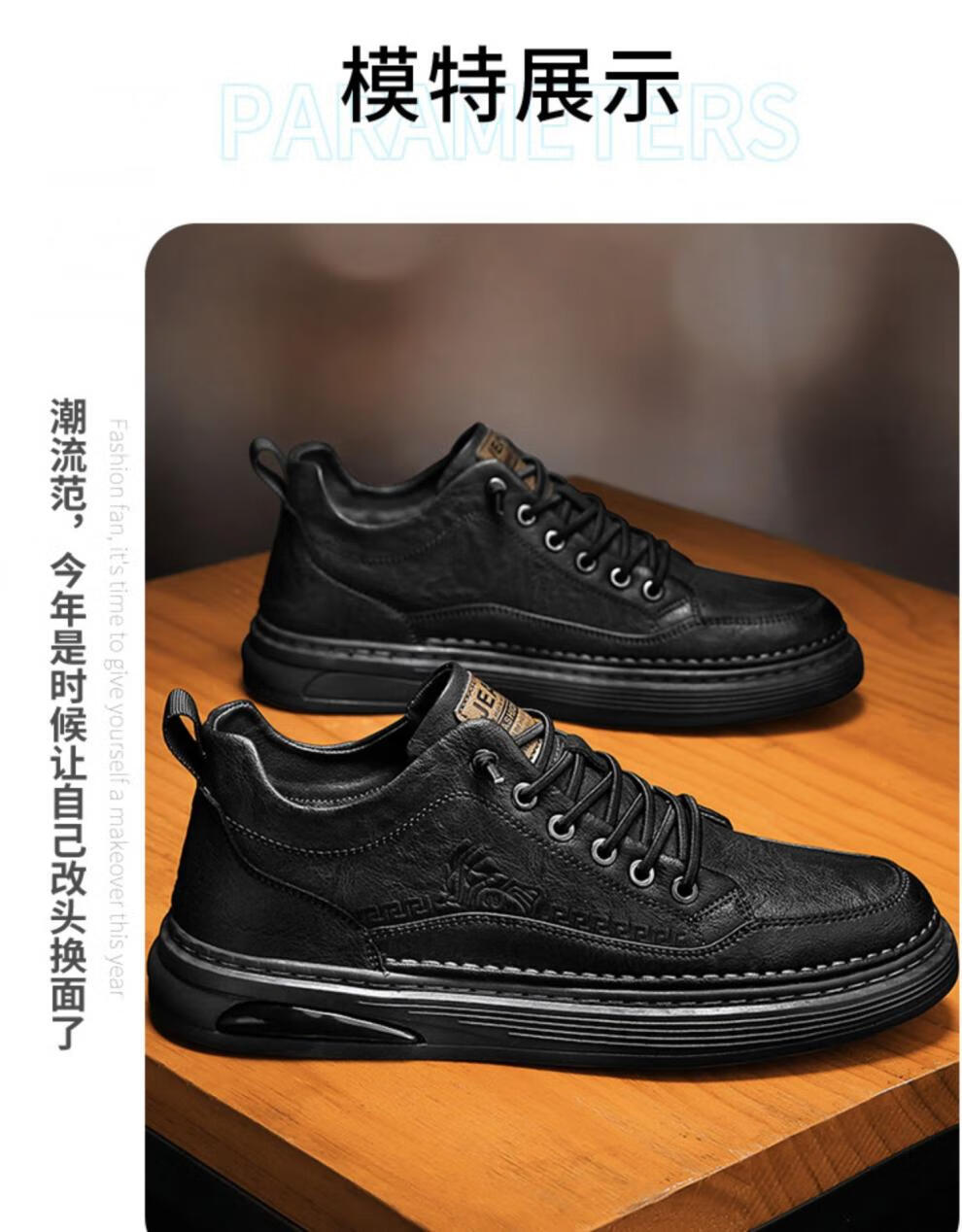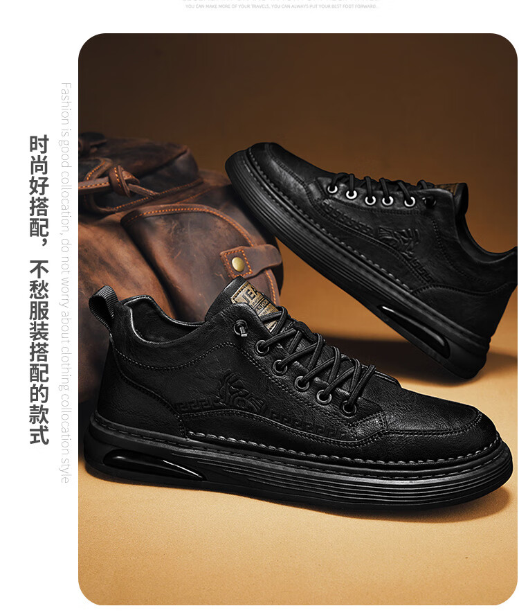 哈森(Harson)牛皮革男鞋秋冬运动皮鞋厚底商务休闲鞋公务通勤健步鞋2025年新款 黑色 41