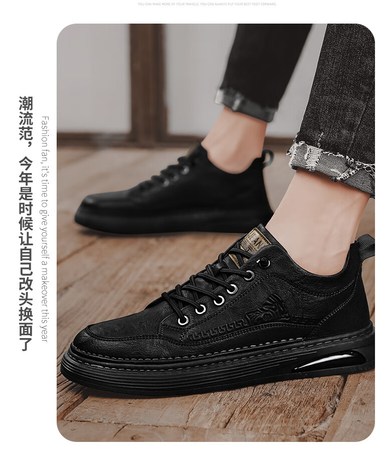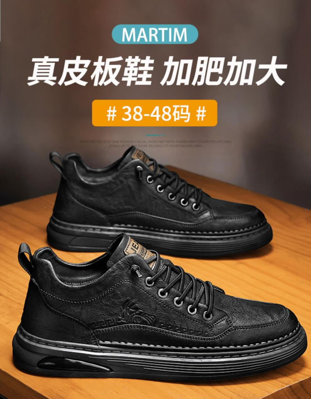 稻草人(MEXICAN)冬季特大码男鞋45脚肥加宽真皮板鞋男46加绒休闲皮鞋47运动鞋49 X007黑色 47