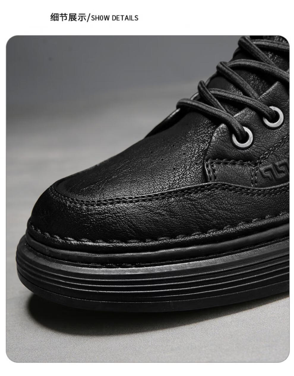 哈森(Harson)牛皮革男鞋秋冬运动皮鞋厚底商务休闲鞋公务通勤健步鞋2025年新款 黑色加绒(6148) 43