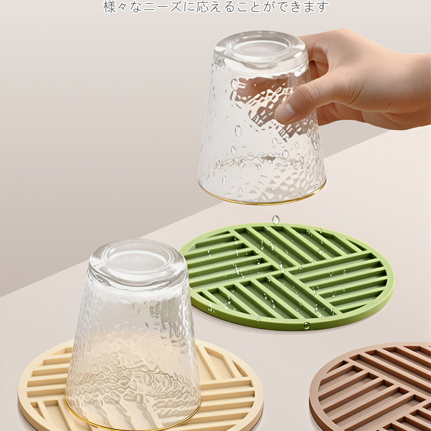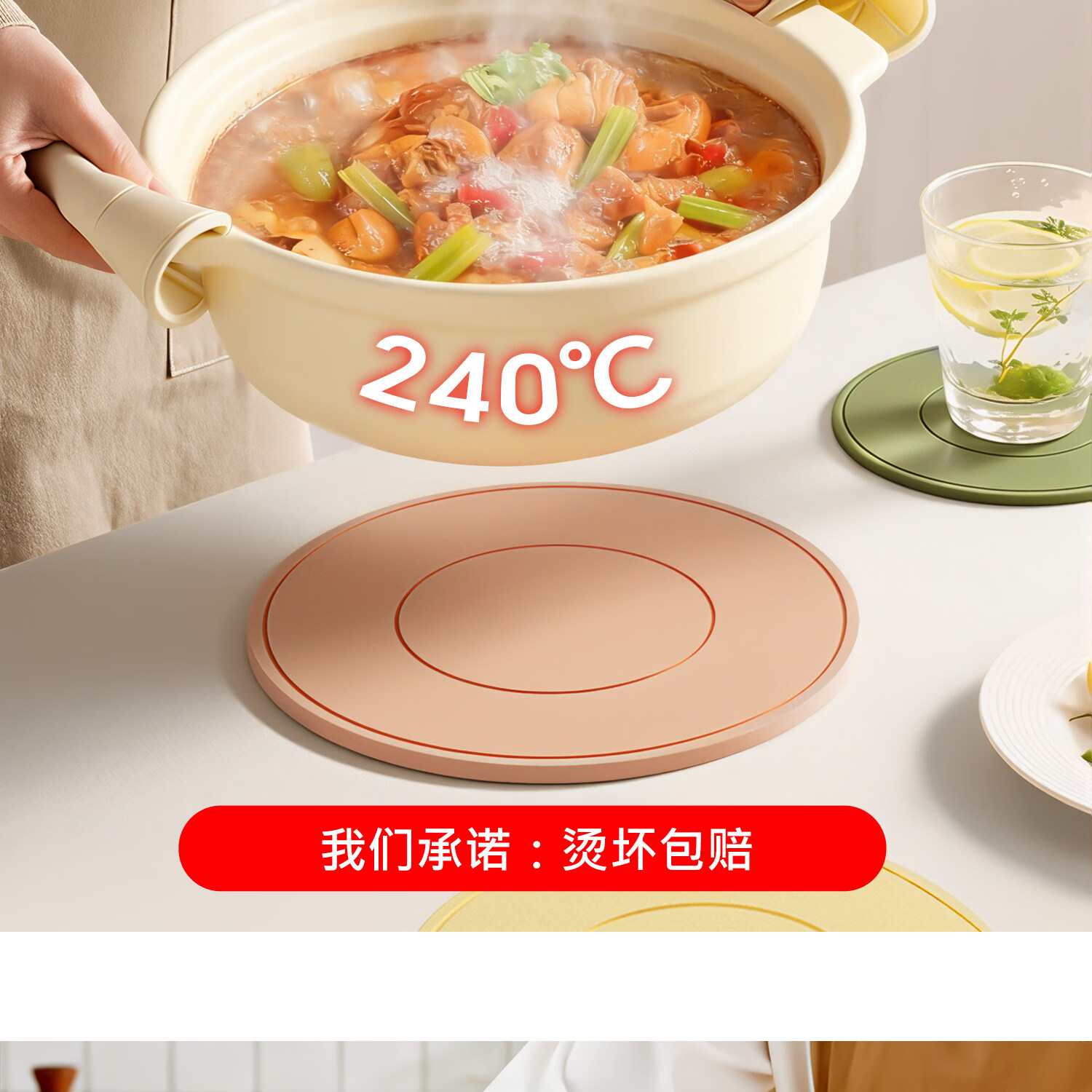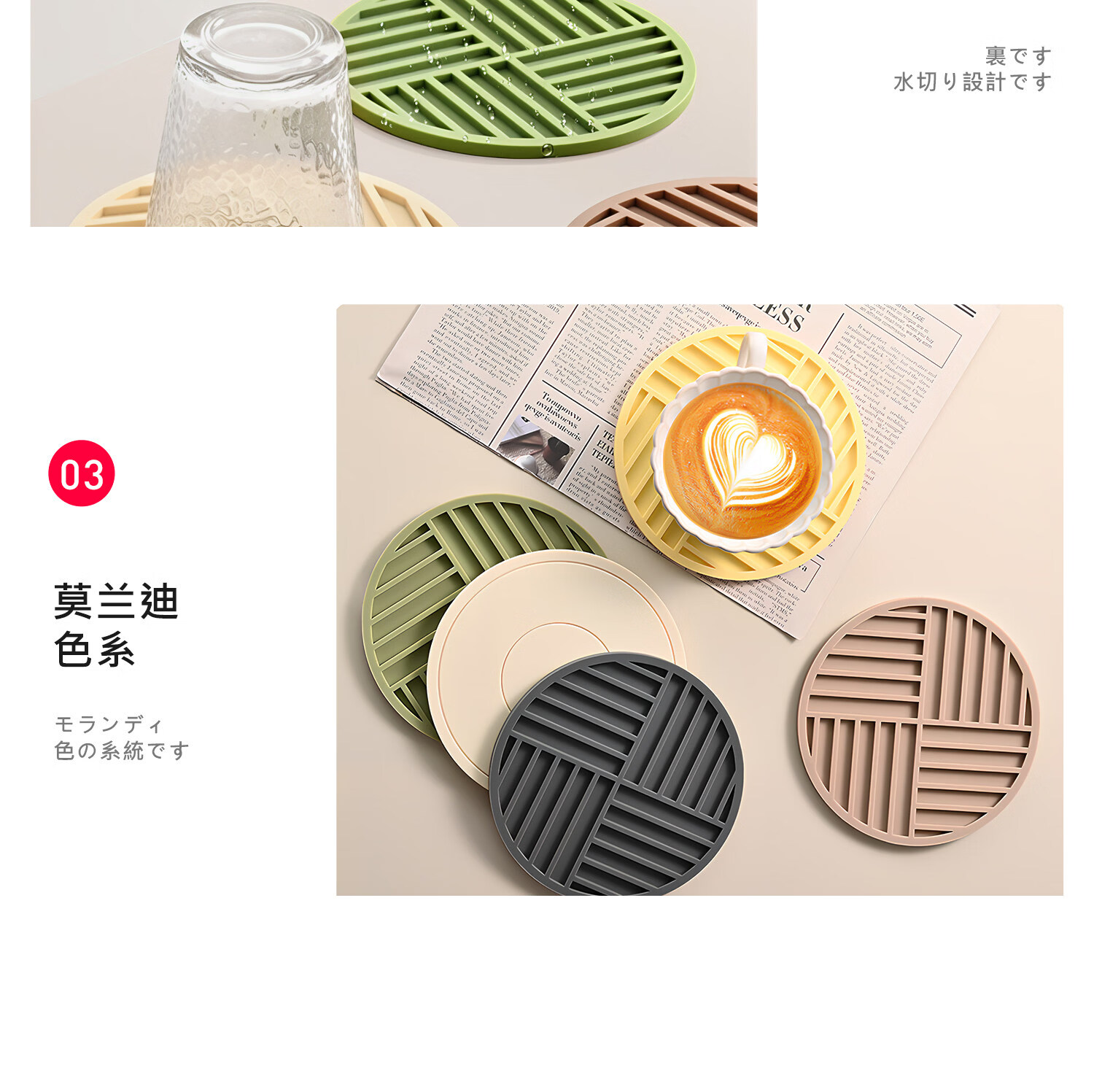 吱凡日本餐桌隔热垫砂锅专用防烫耐高温硅胶垫家用水杯餐盘碗碟垫防滑 22cm【樱花粉+抹茶绿+米白色+蛋黄色】4个装