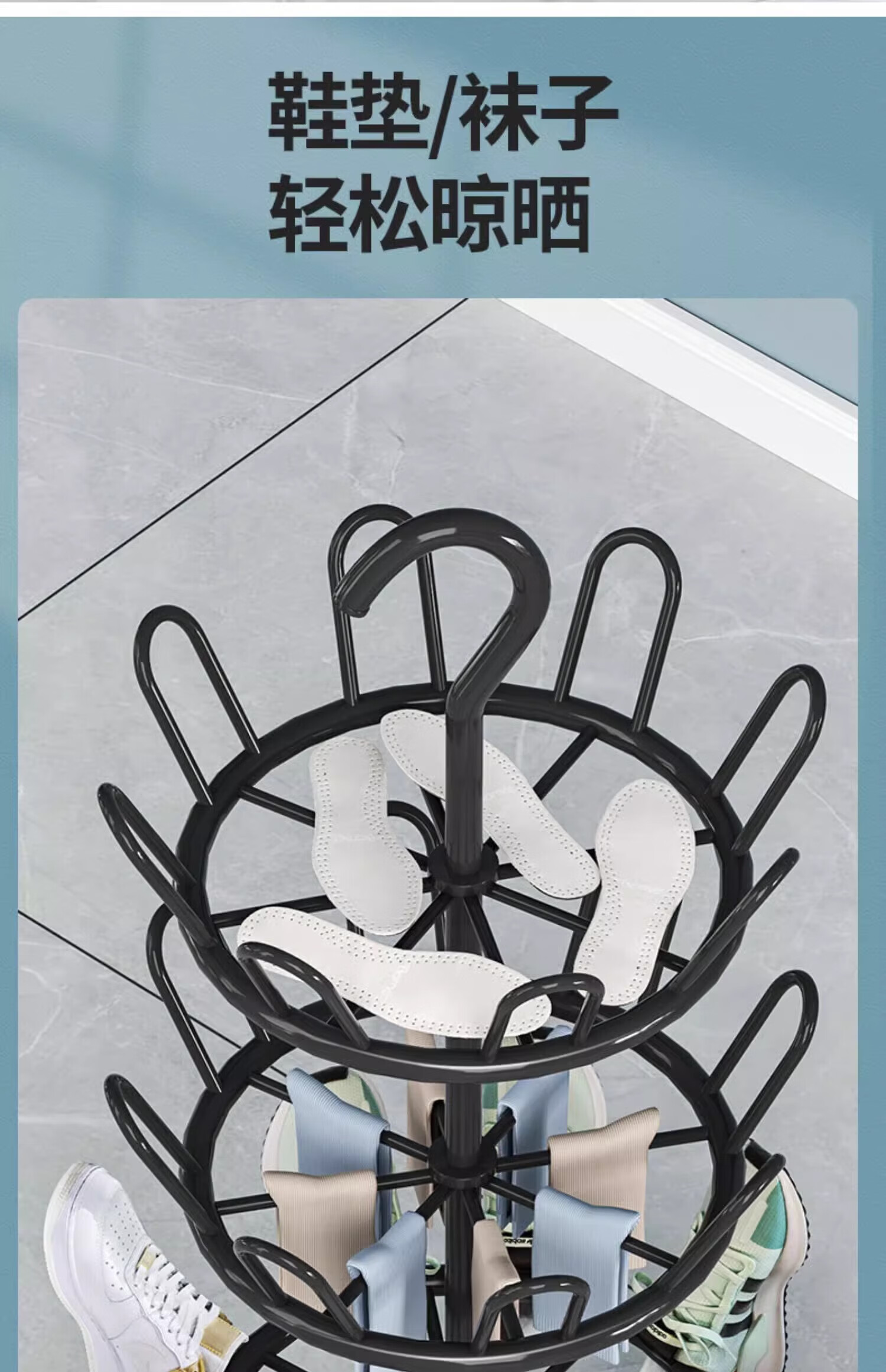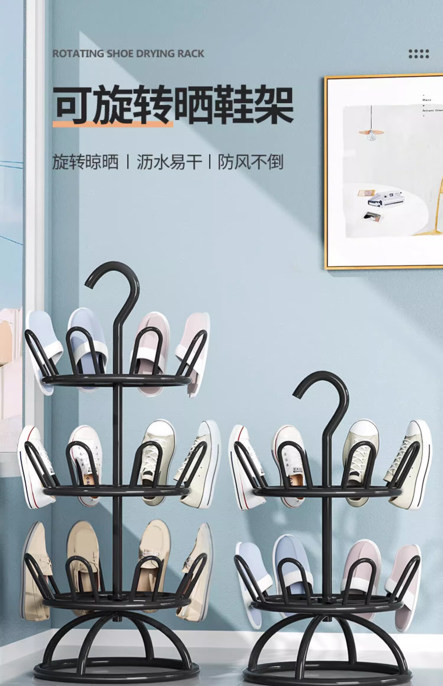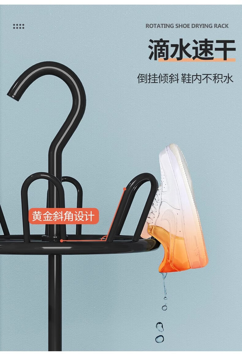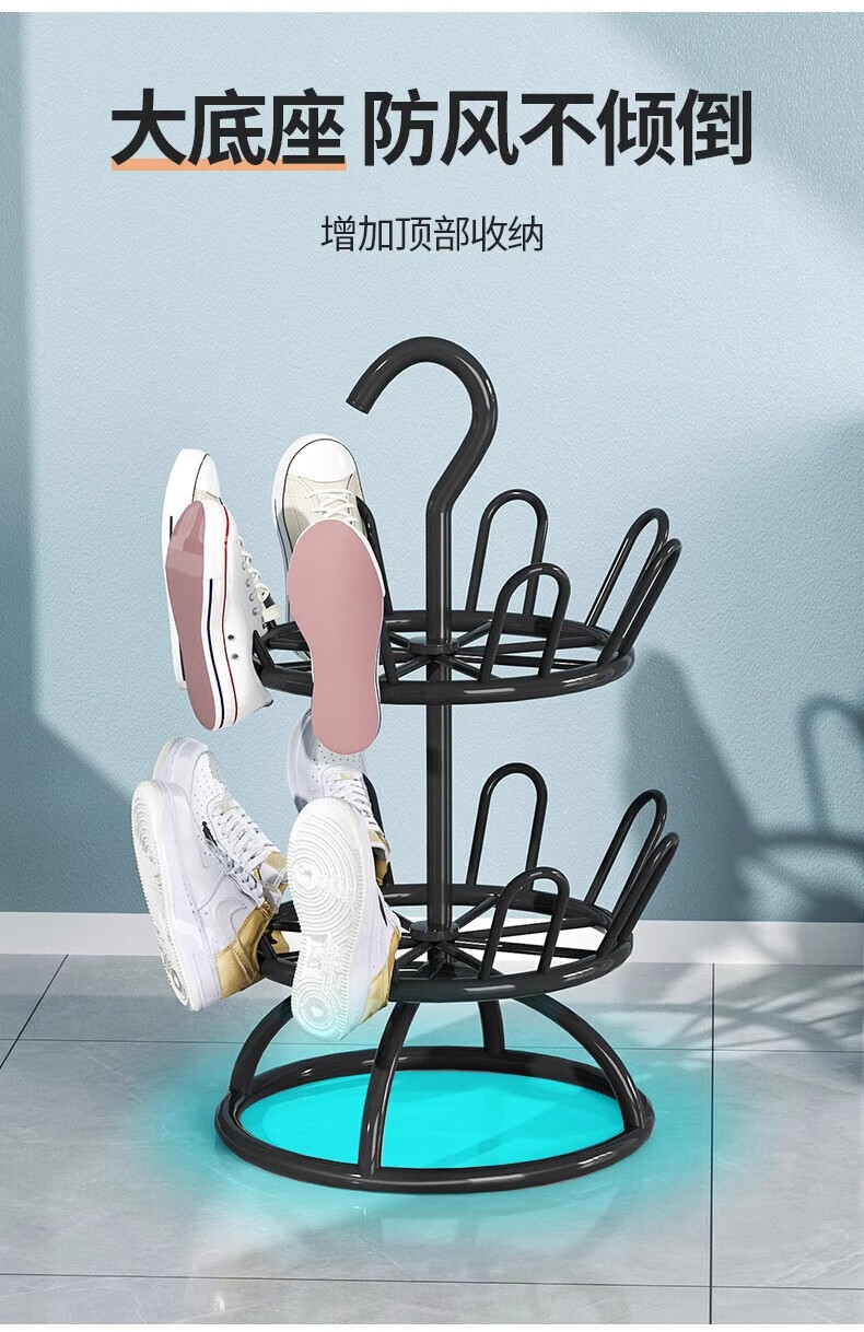 馨婺家晾鞋架阳台室外落地多层晒鞋架子多功能可旋转晾晒神器拖鞋收纳架 黑色二层-360°旋转【升级稳固】