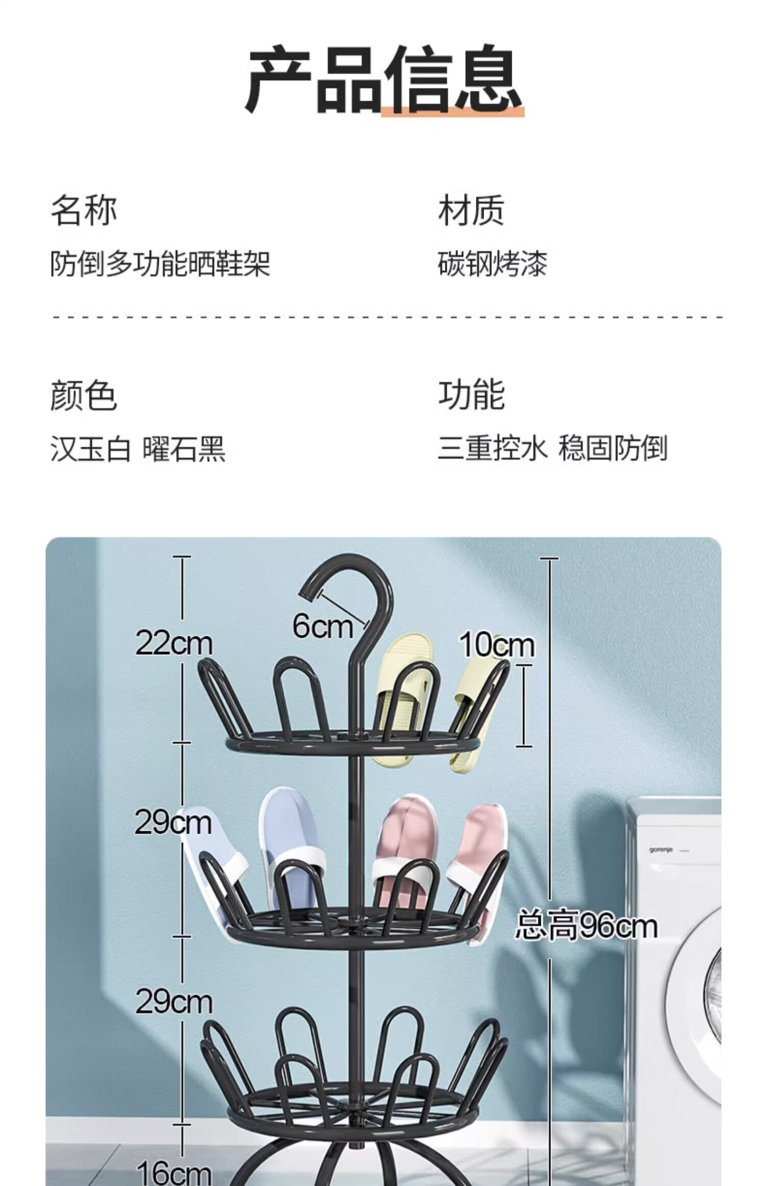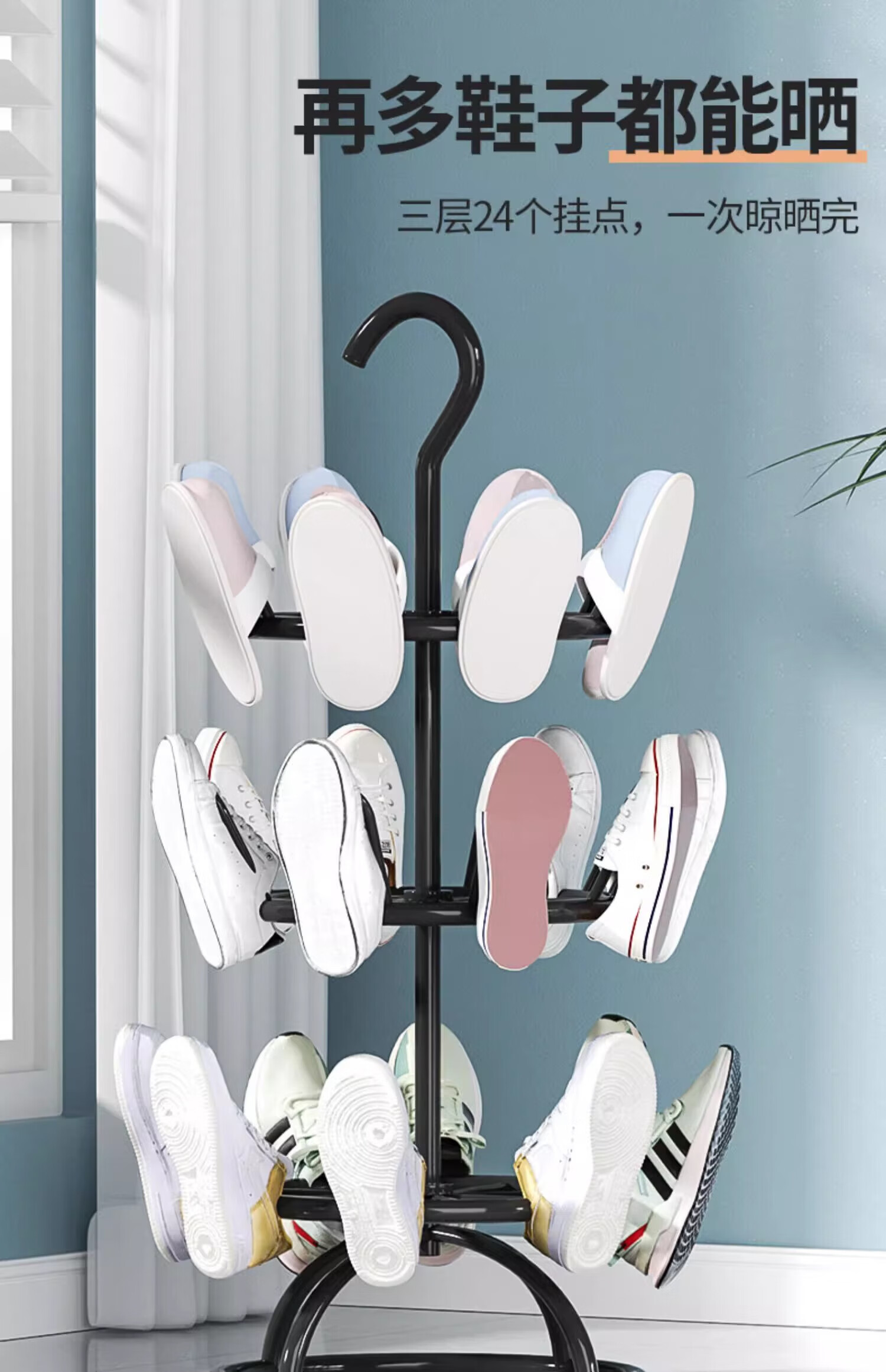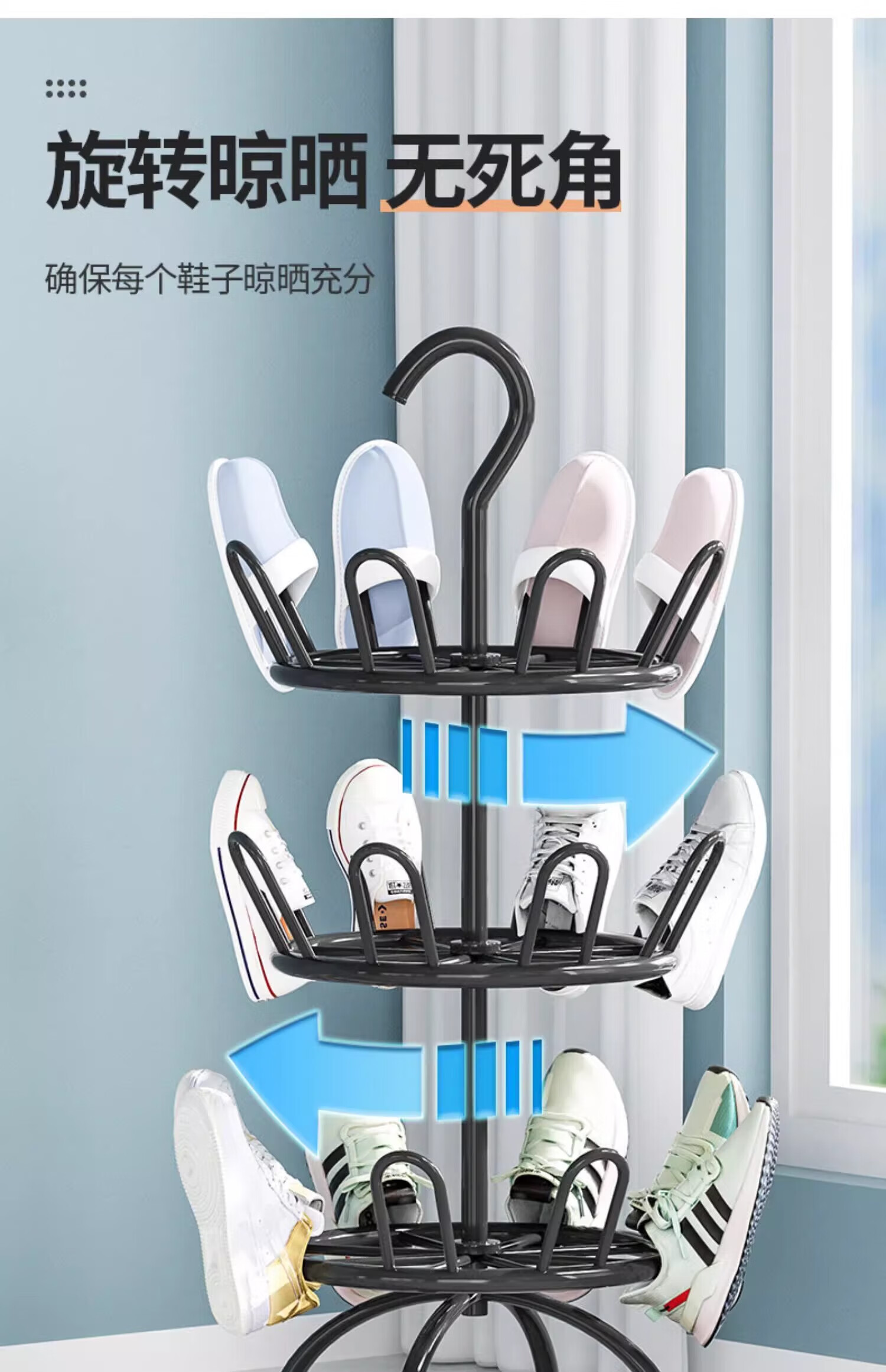馨婺家晾鞋架阳台室外落地多层晒鞋架子多功能可旋转晾晒神器拖鞋收纳架 黑色二层-360°旋转【升级稳固】
