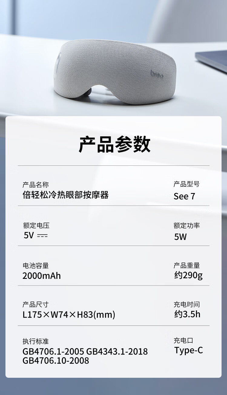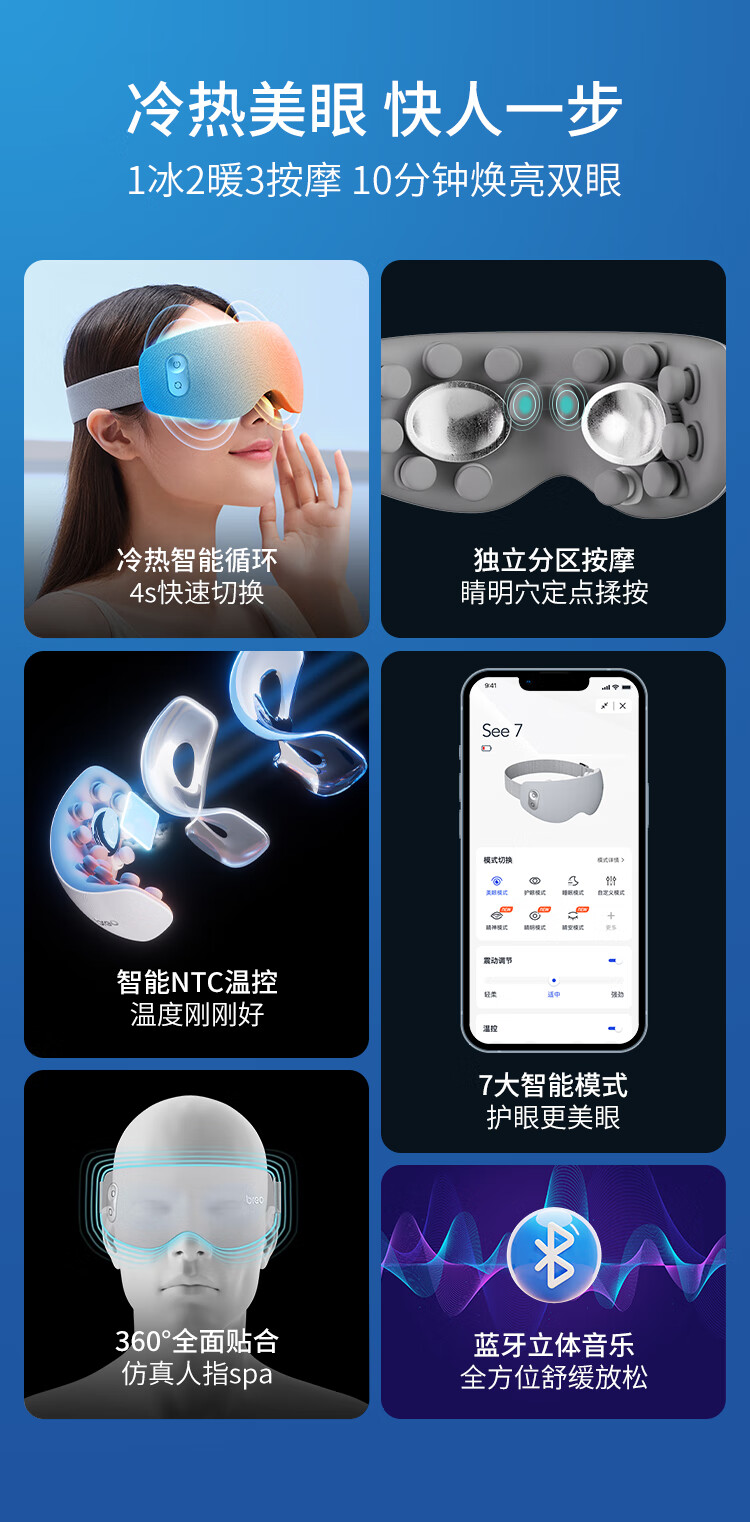 倍轻松眼部按摩仪【专柜同款】穴位冷热敷护眼仪See7 热敷按摩眼罩按摩器 送男女朋友生日圣诞礼物