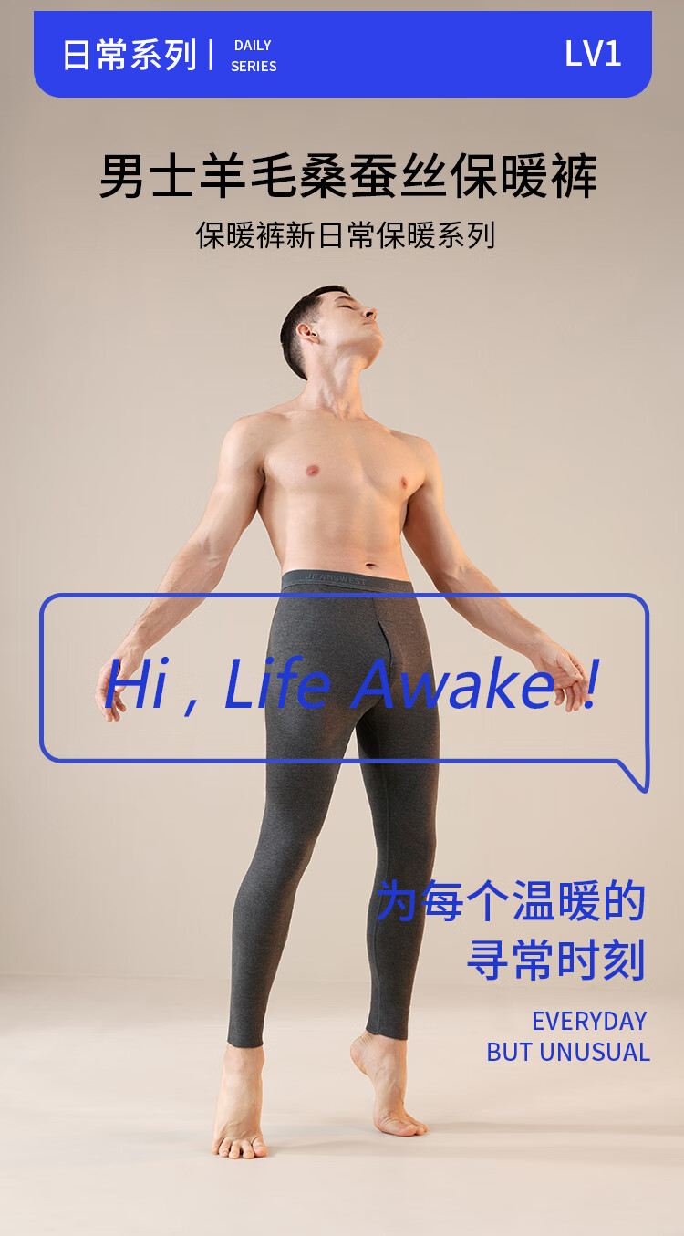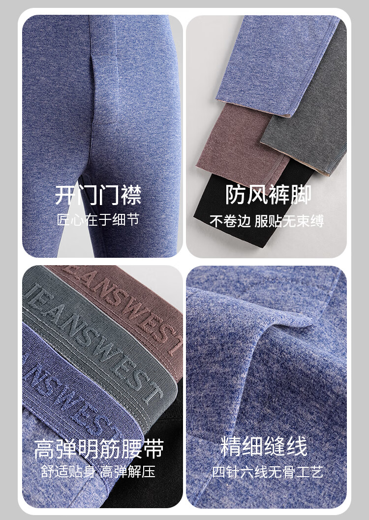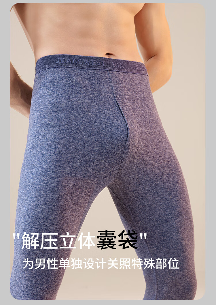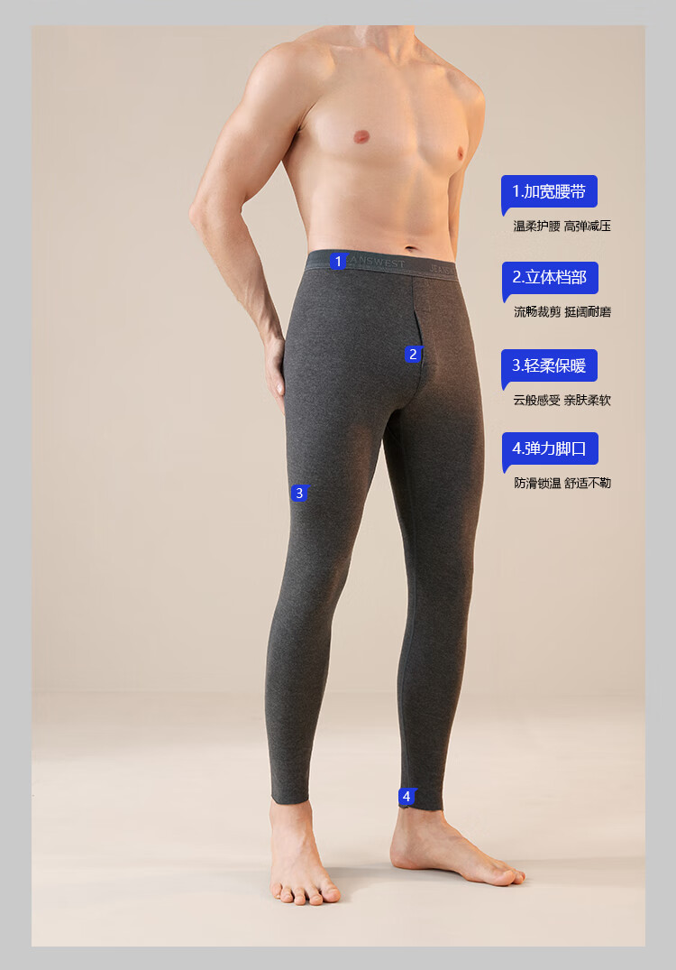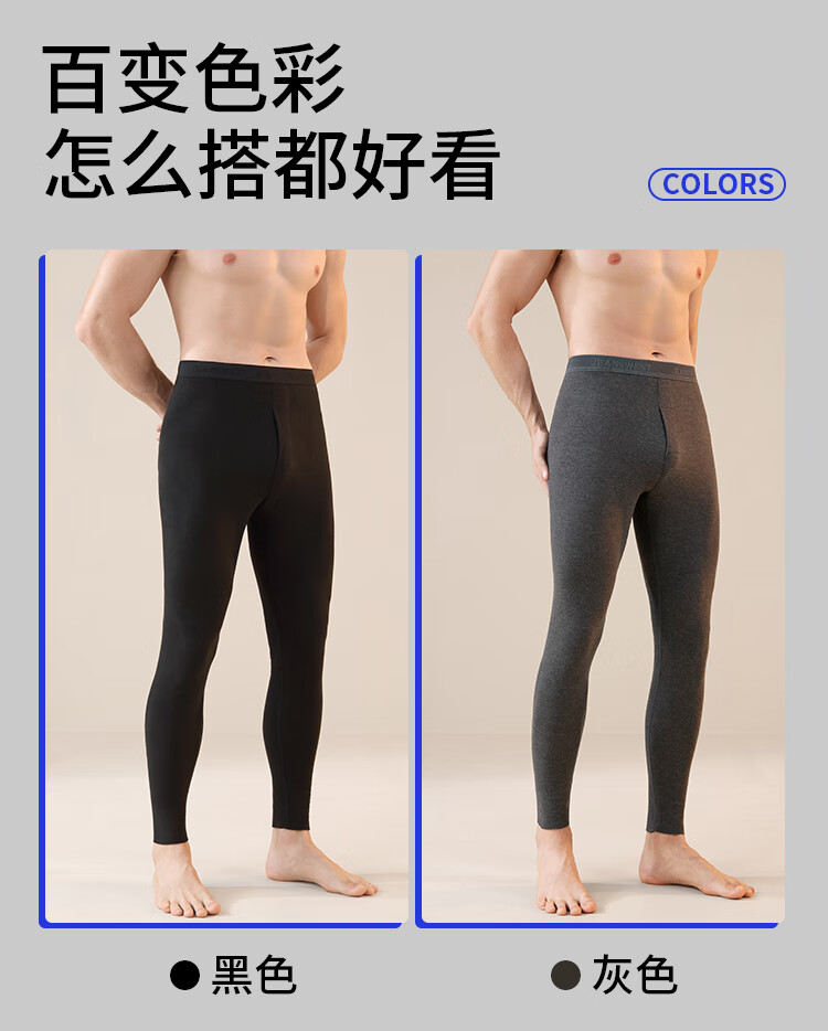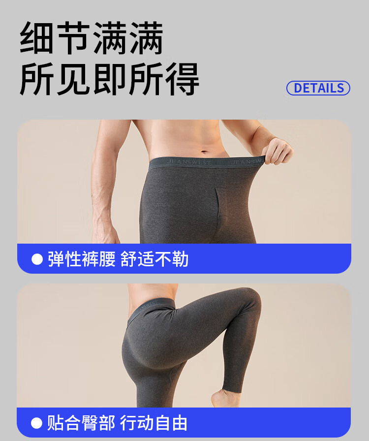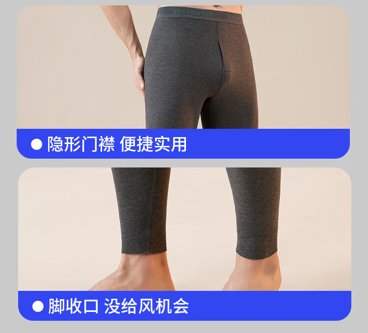 真维斯(Jeanswest)秋裤男士保暖裤修身发热衬裤男款打底裤羊毛线裤2025秋冬季 灰色 L 100斤以下