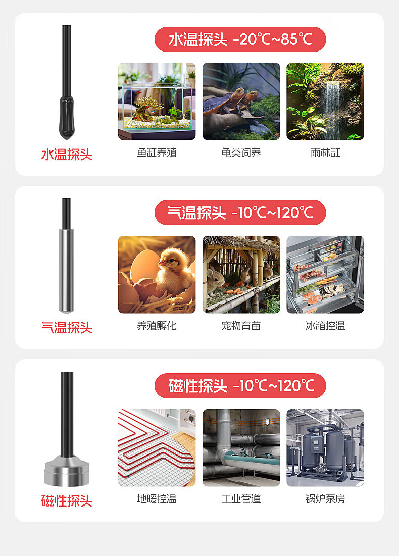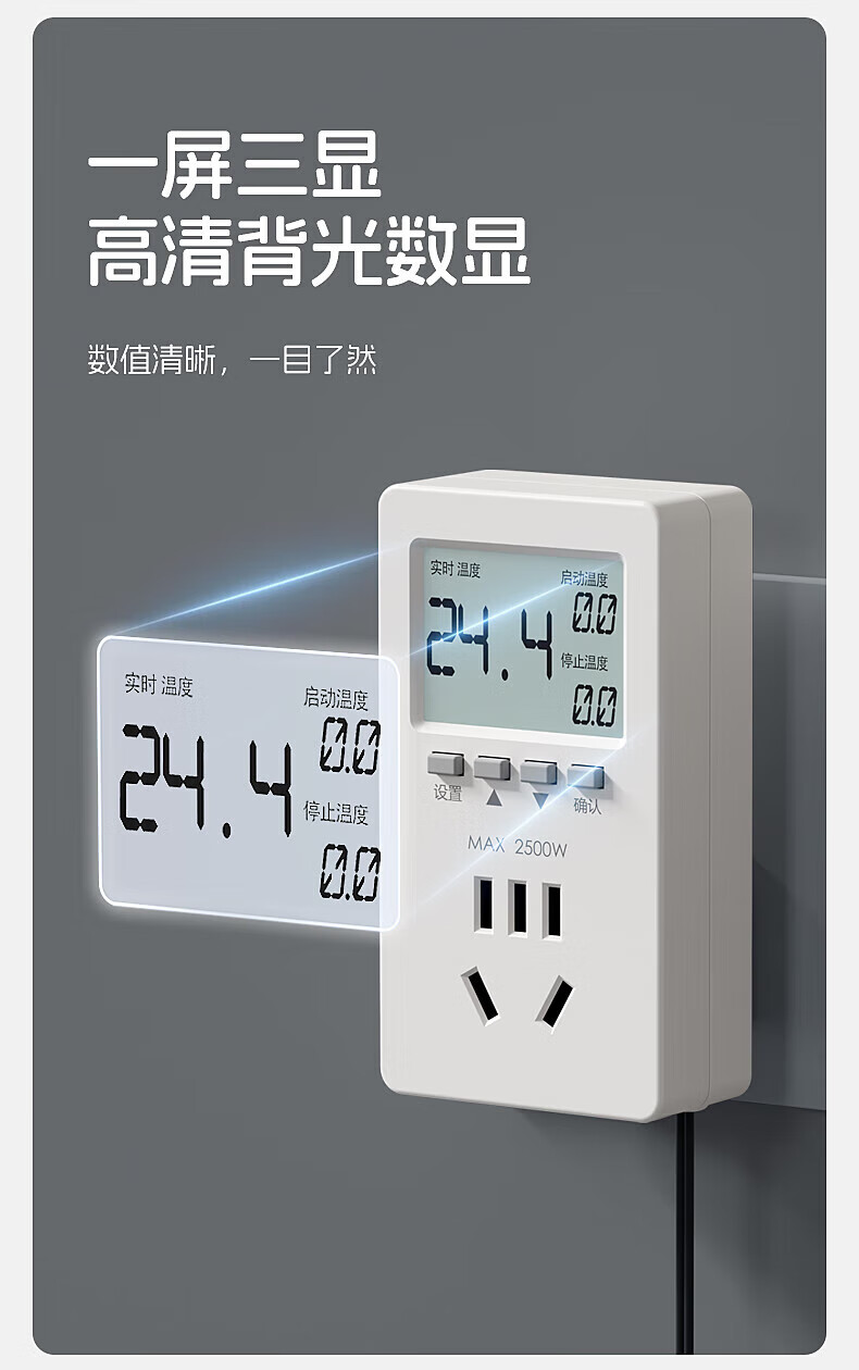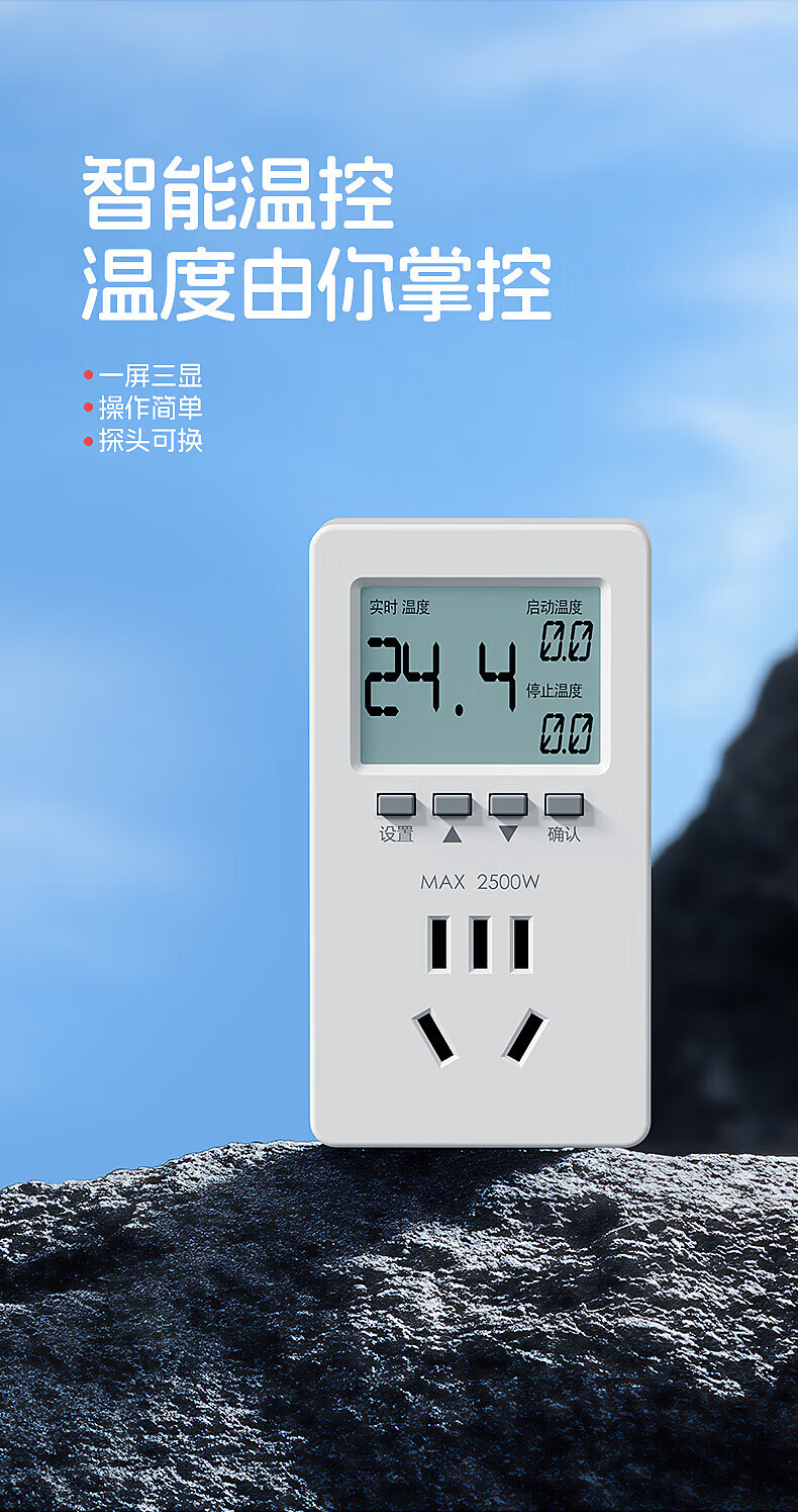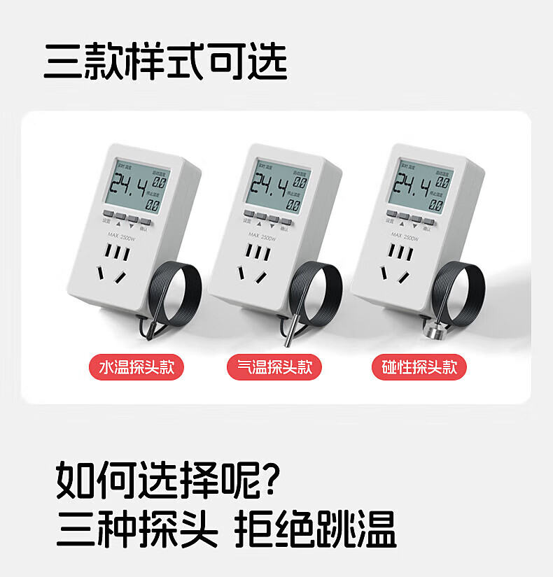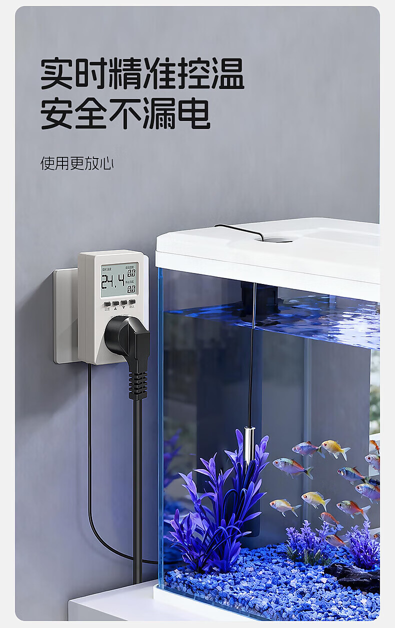 国际电工数显智能温控插座控温开关暖气锅炉温度控制器鱼缸宠物加热温控器 背光-三显【10A五孔 水温探头】