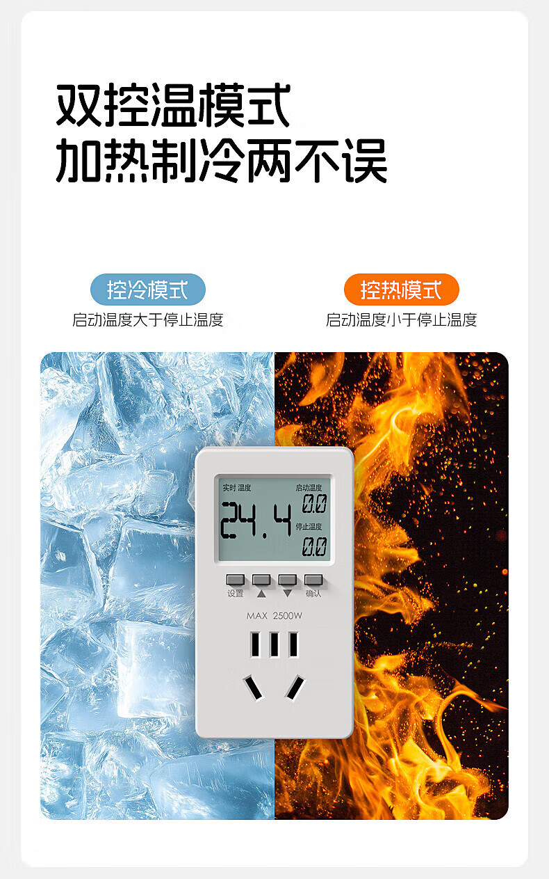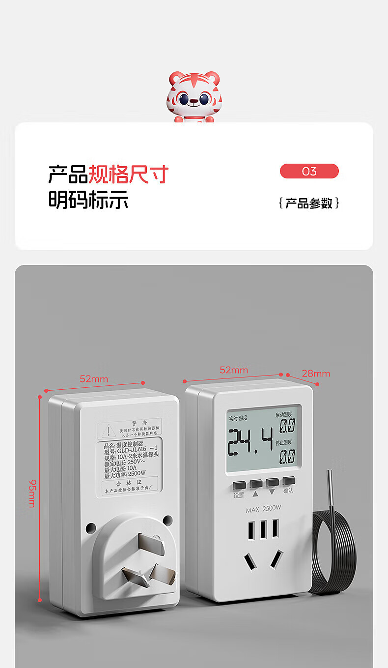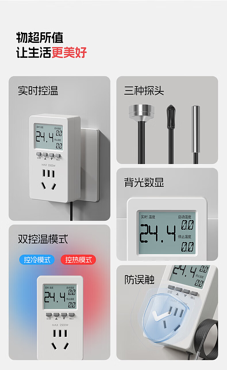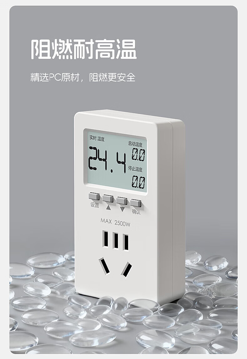 国际电工数显智能温控插座控温开关暖气锅炉温度控制器鱼缸宠物加热温控器 背光-三显【10A五孔 水温探头】