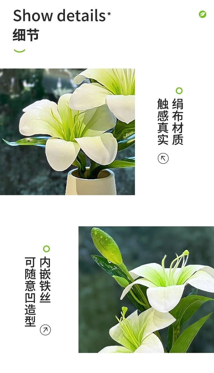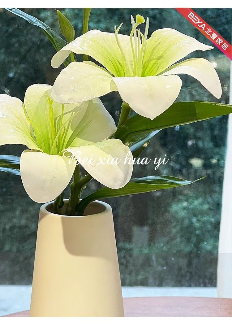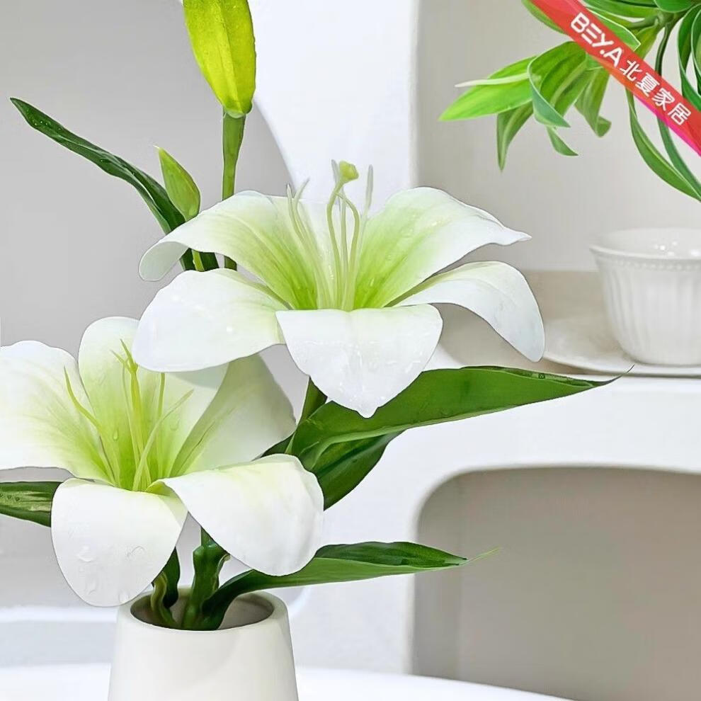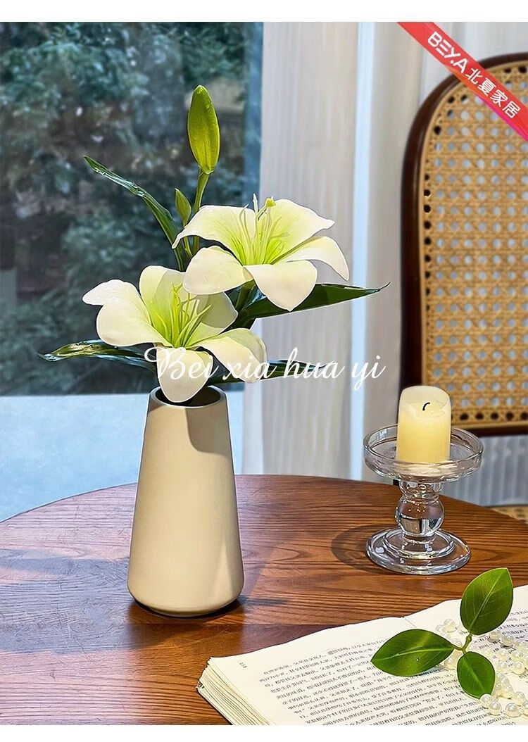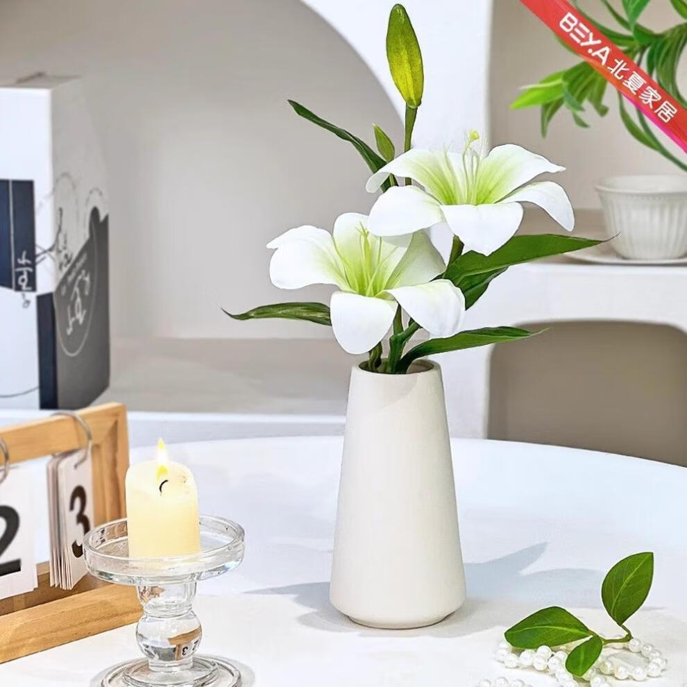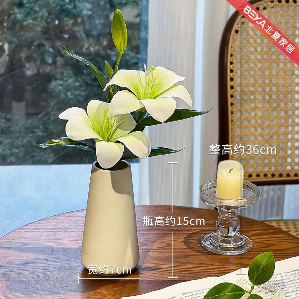 OYKTN保湿手感百合花仿真花陶瓷花瓶客厅摆设餐桌房间装饰桌面假花摆件 谨言陶瓷花瓶+绿色百合