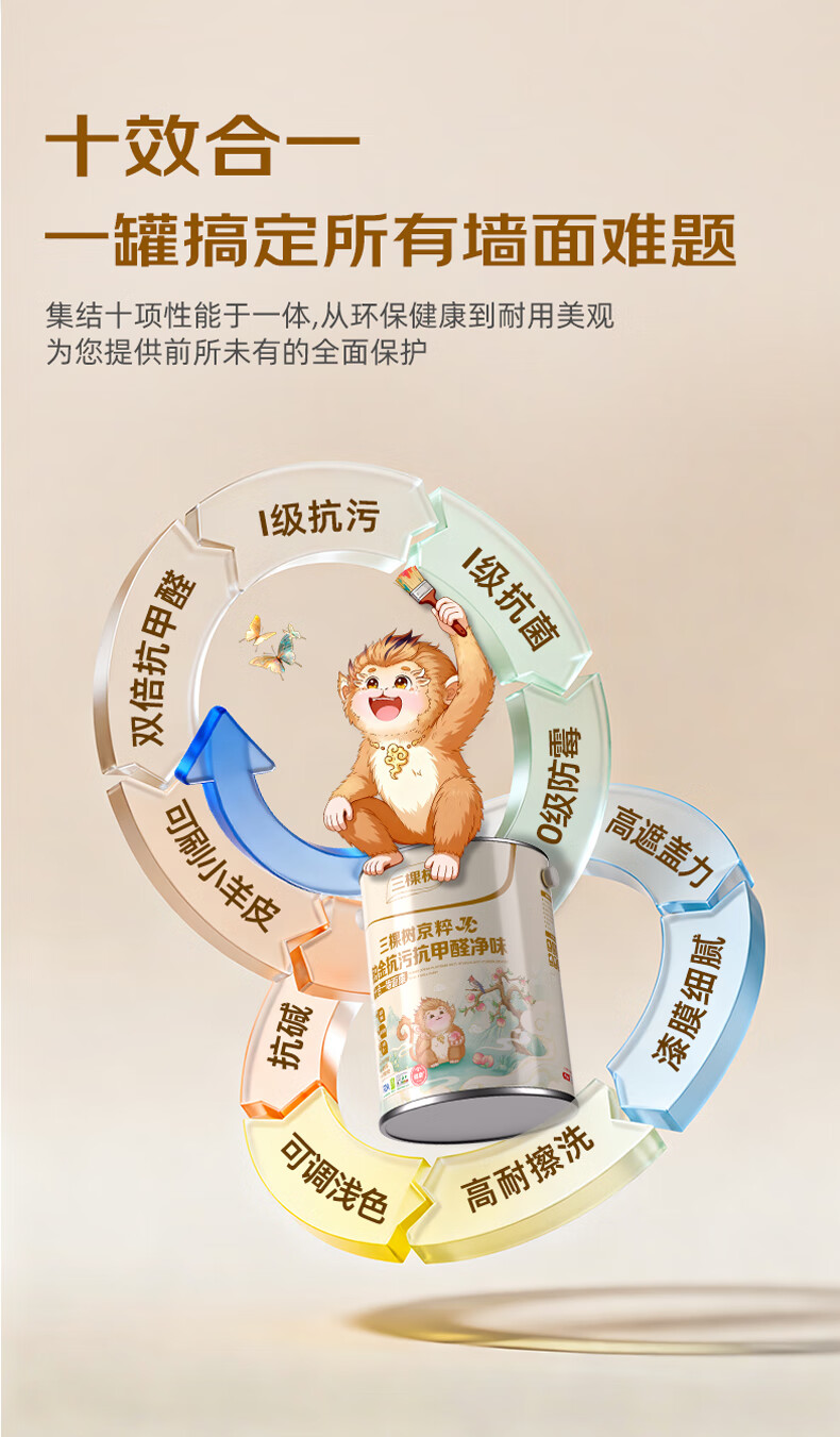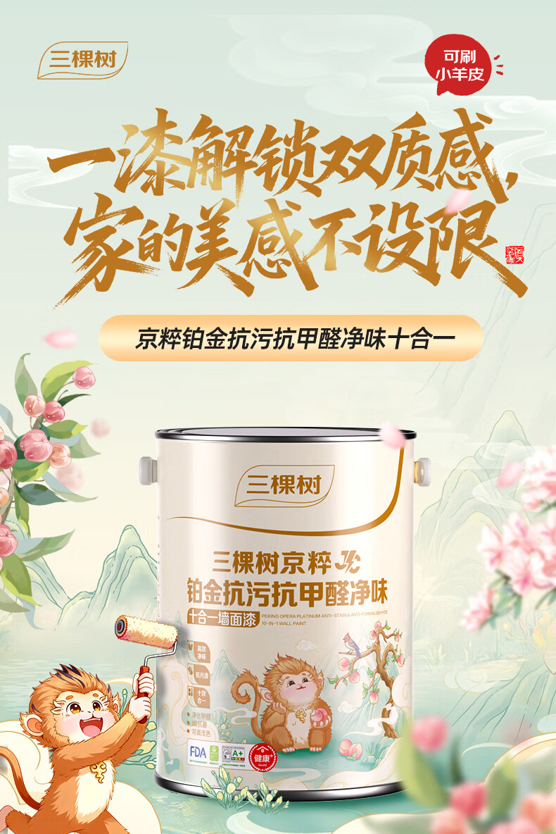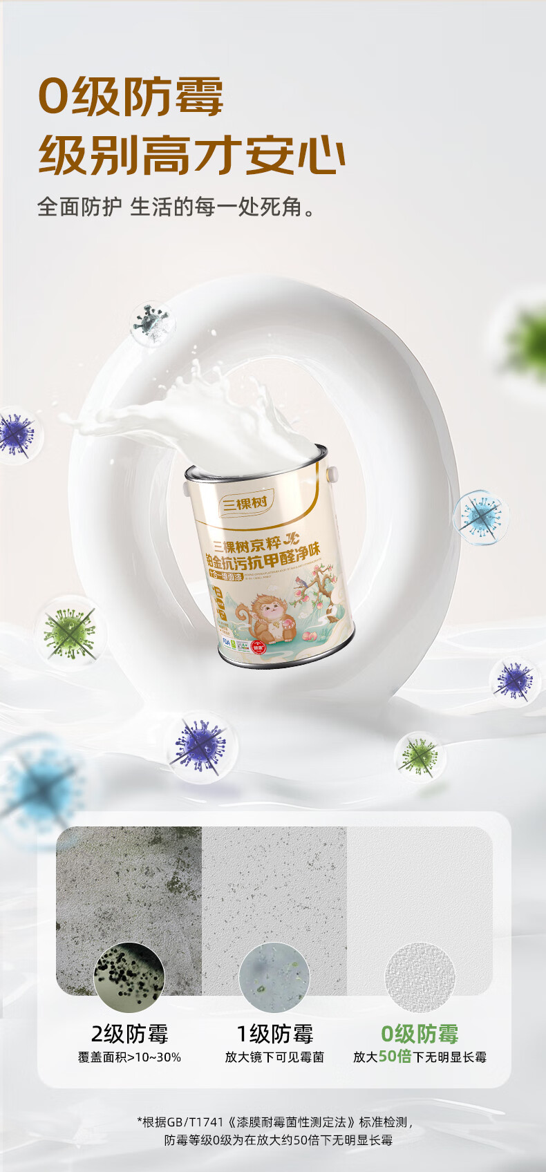 三棵树漆京粹铂金抗污抗甲醛净味十合一墙面可刷小羊皮室内装修自刷乳胶漆 51L 51L*1件 防霉套装