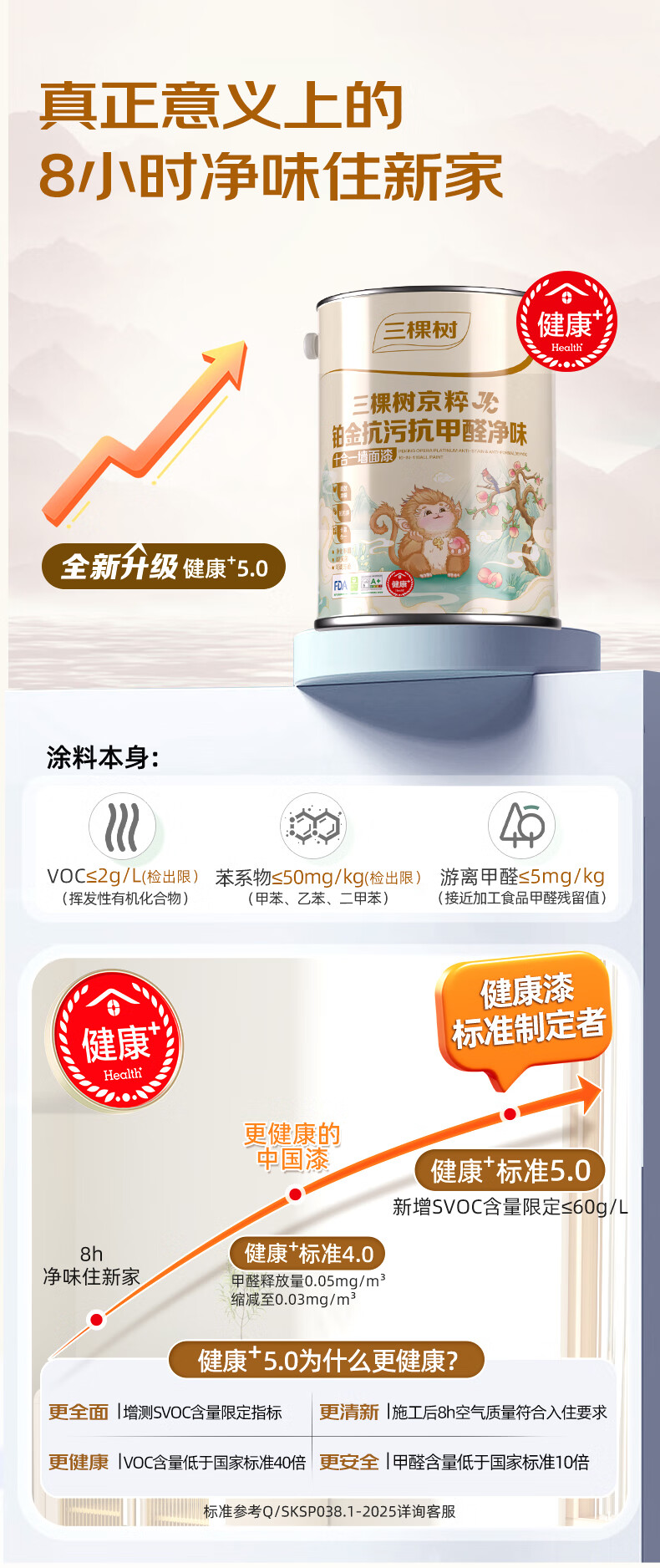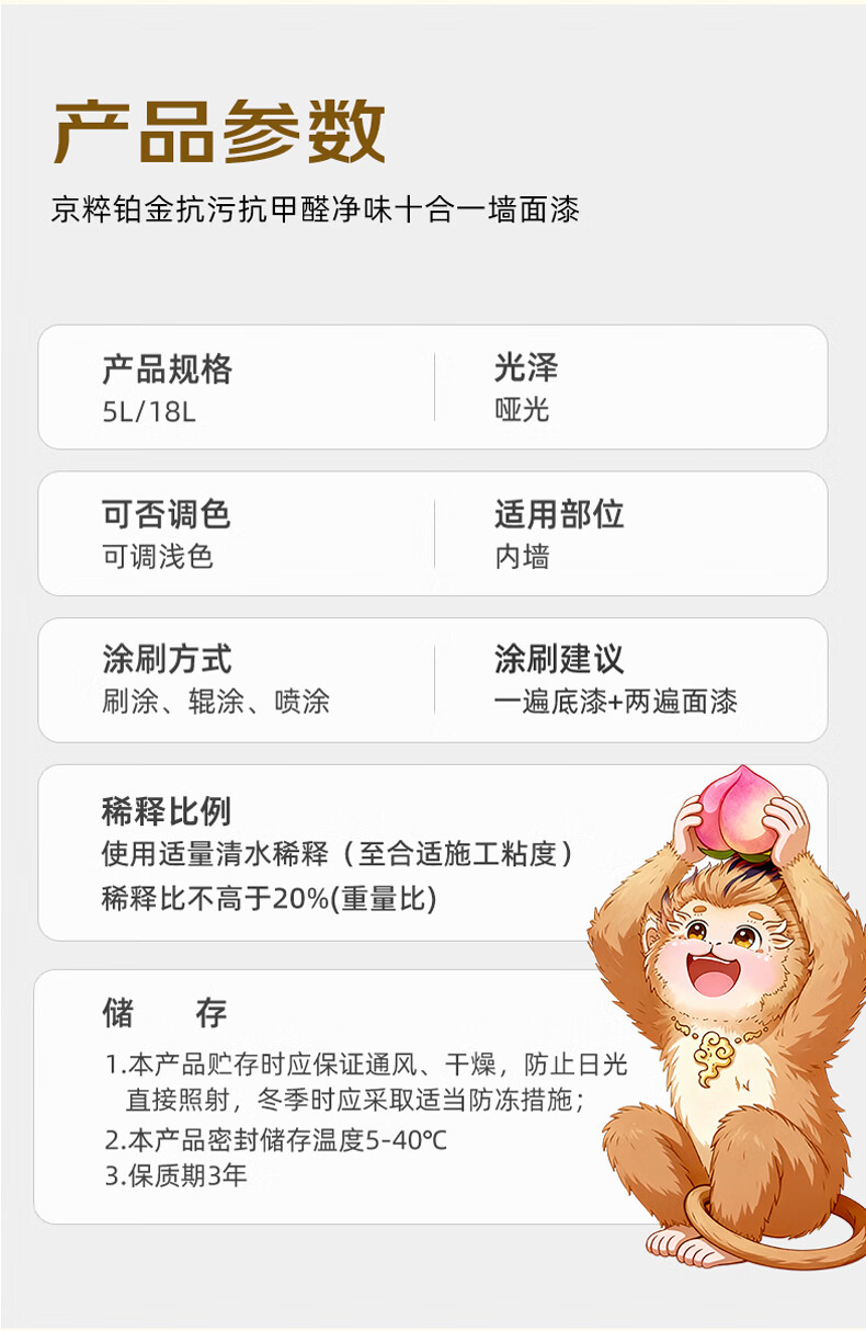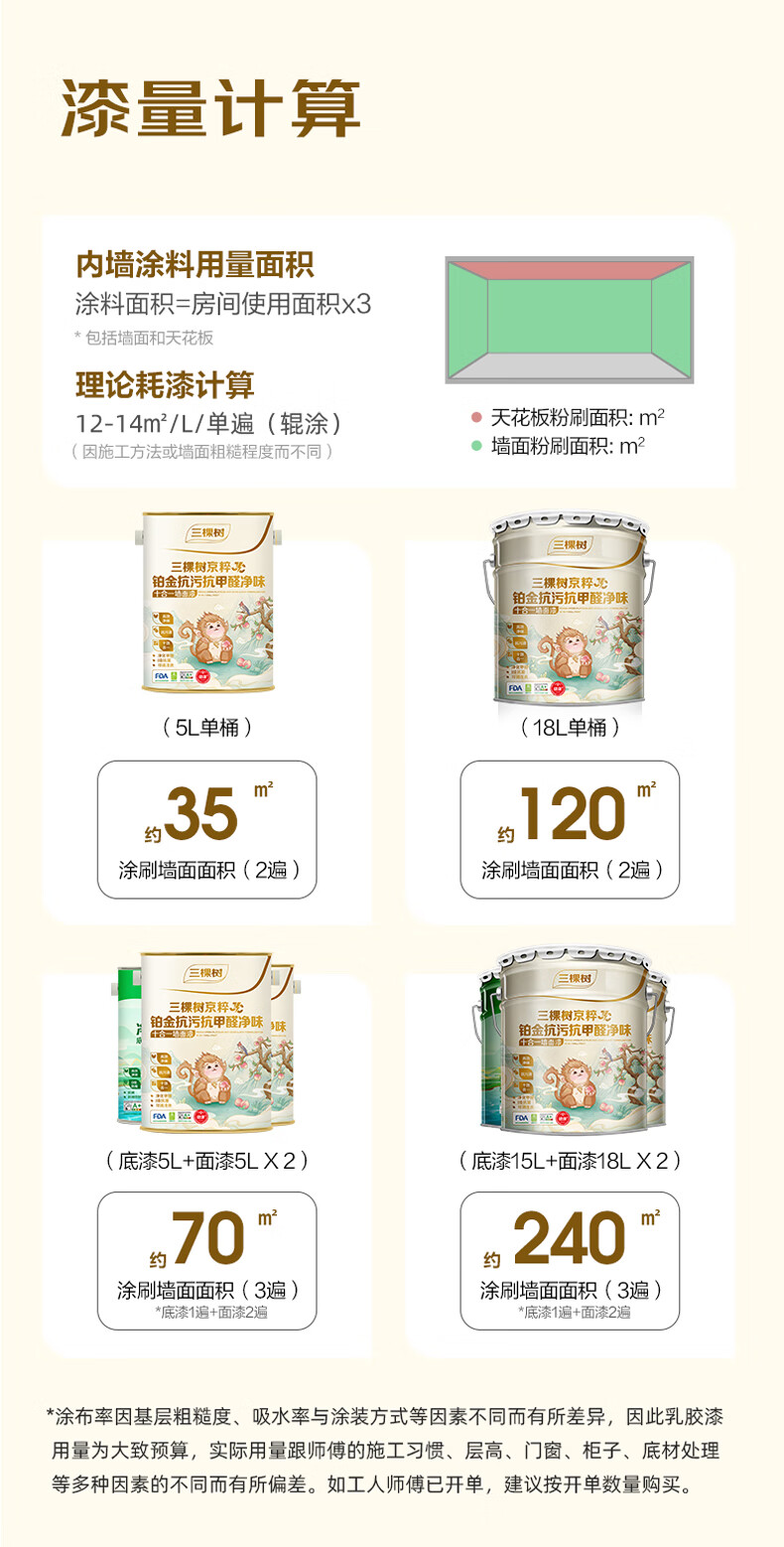 三棵树漆京粹铂金抗污抗甲醛净味十合一墙面可刷小羊皮室内装修自刷乳胶漆 51L 51L*1件 防霉套装