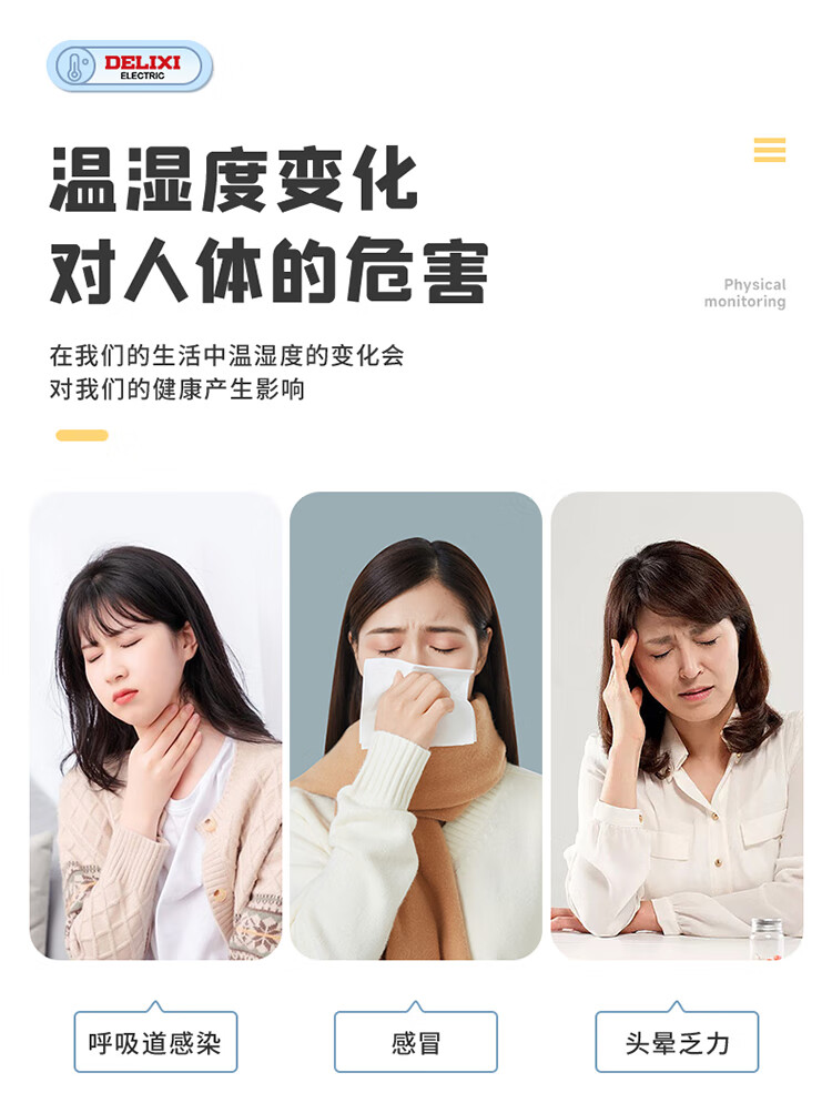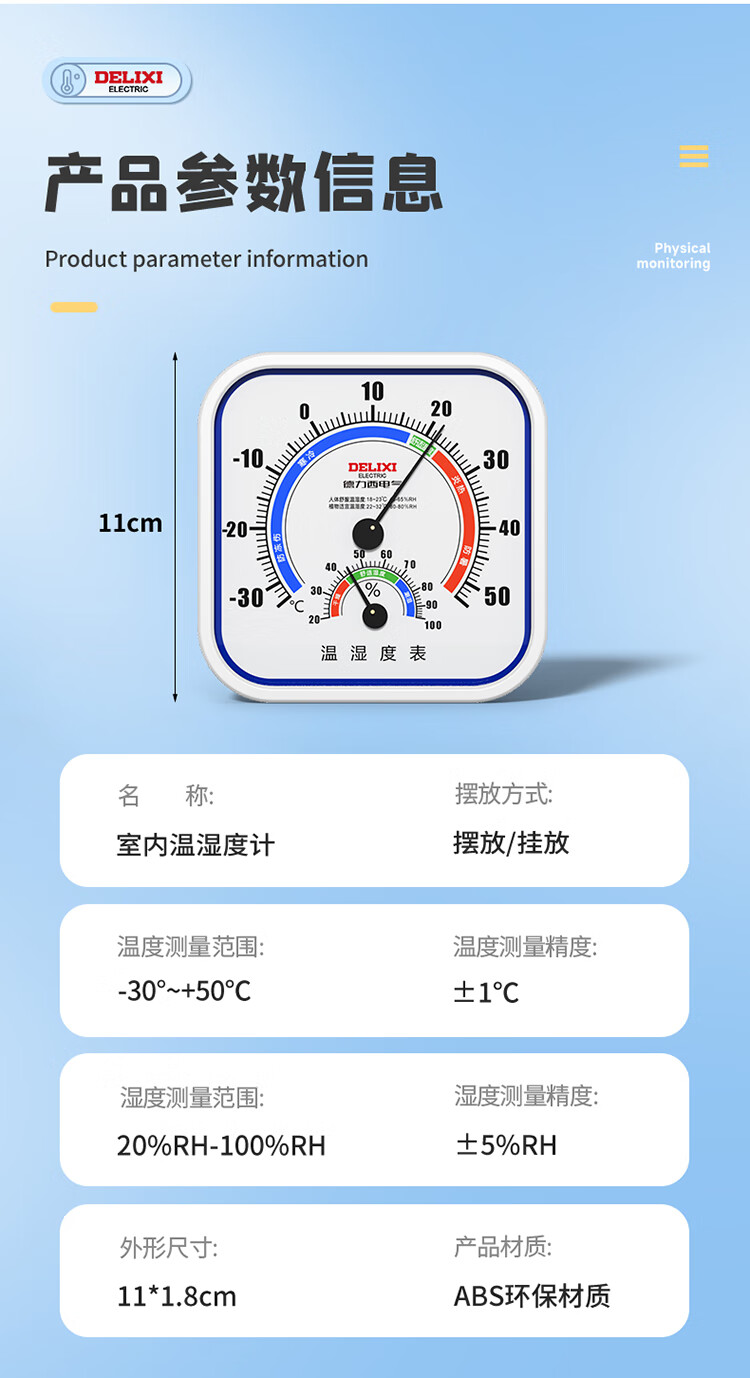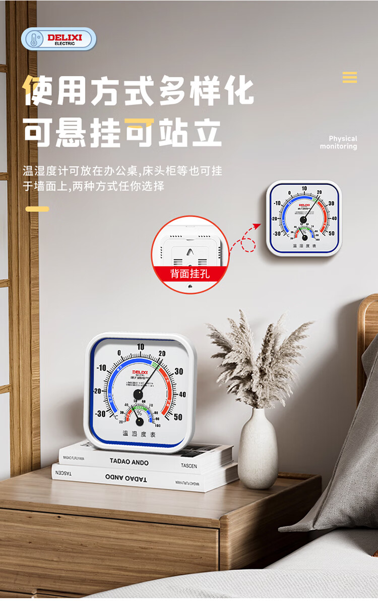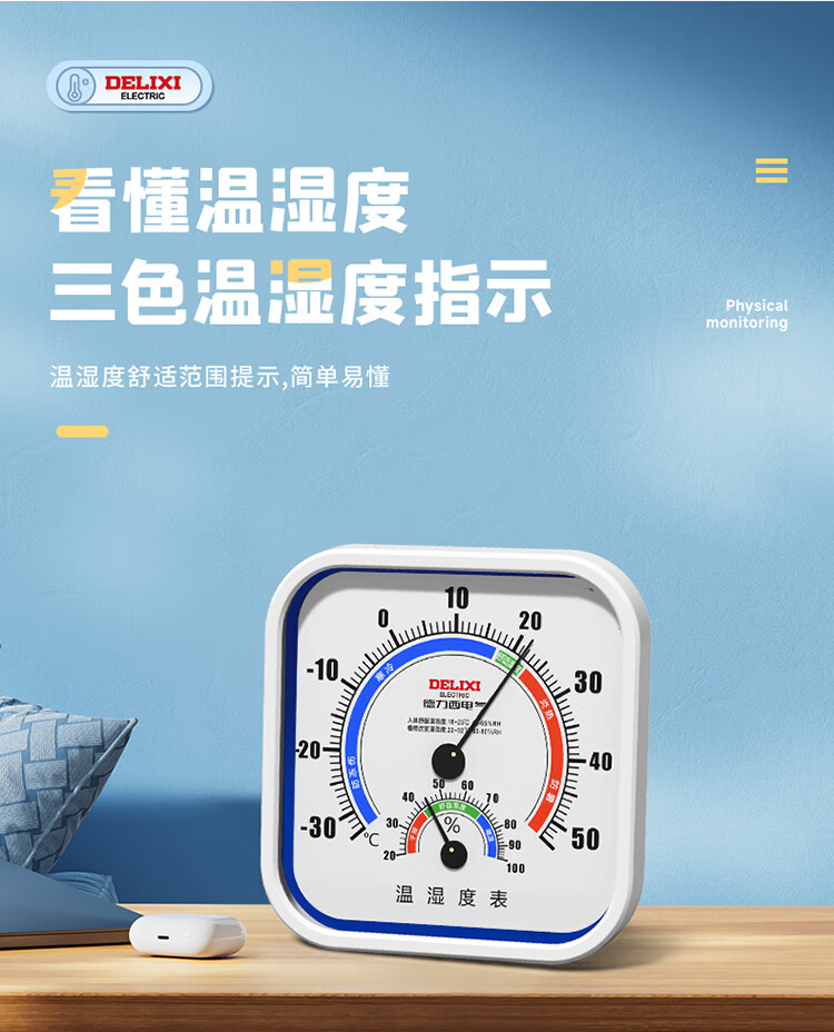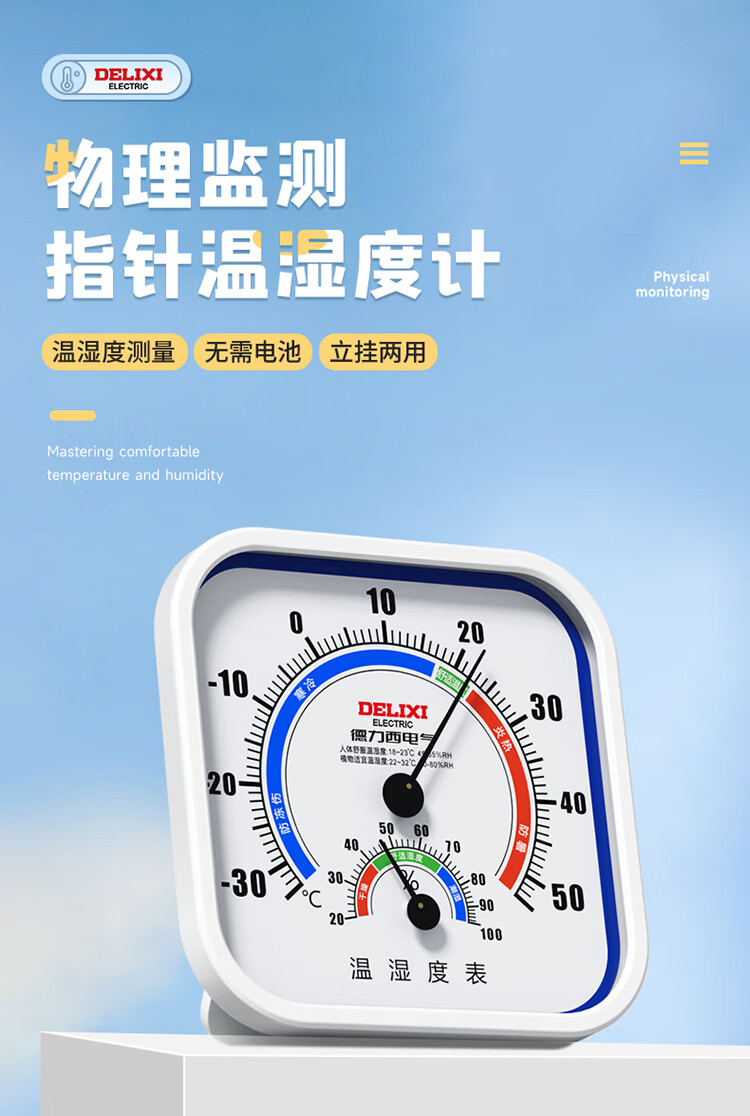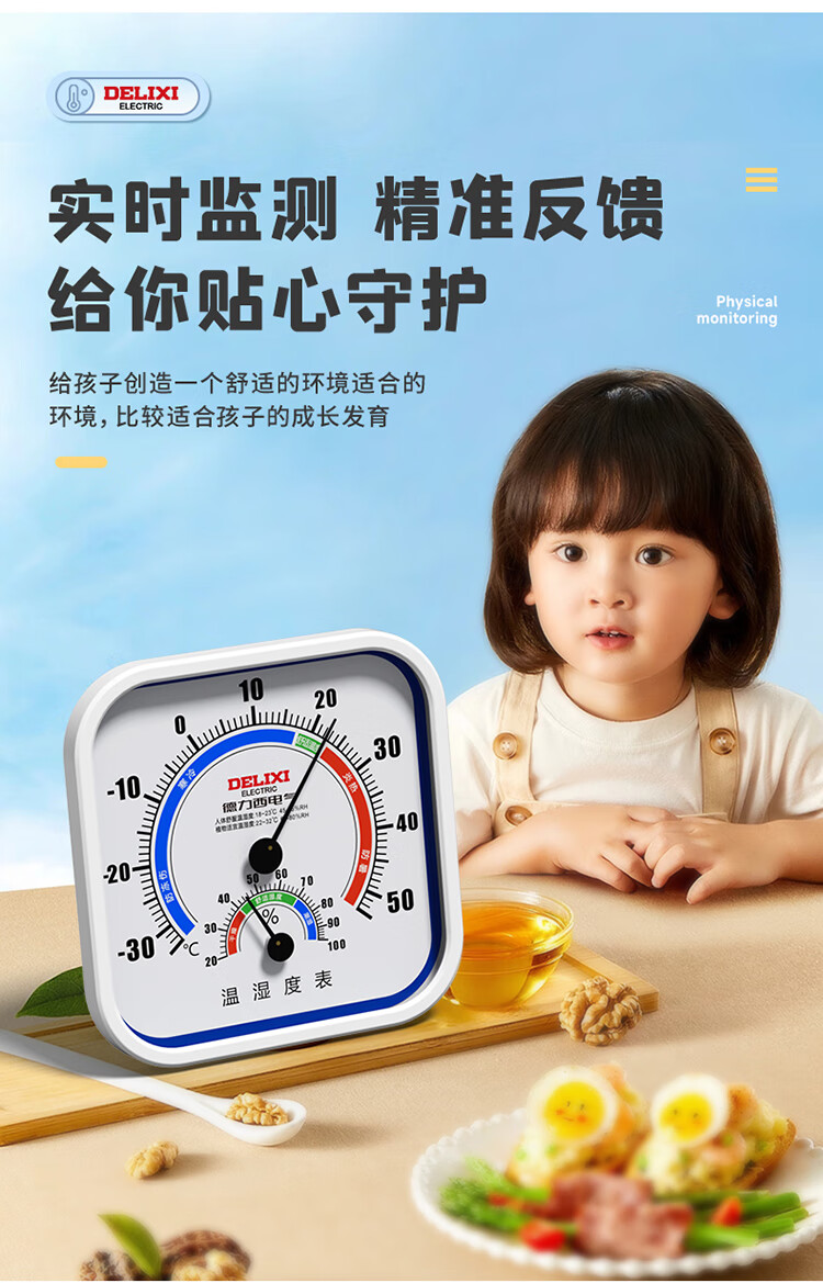 德力西电气(DELIXI ELECTRIC)家用大圆盘温湿度计室内办公家用温度计台式挂式大棚温湿度表
