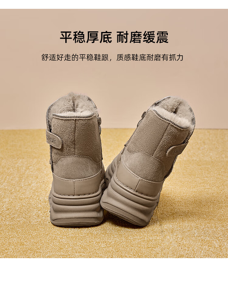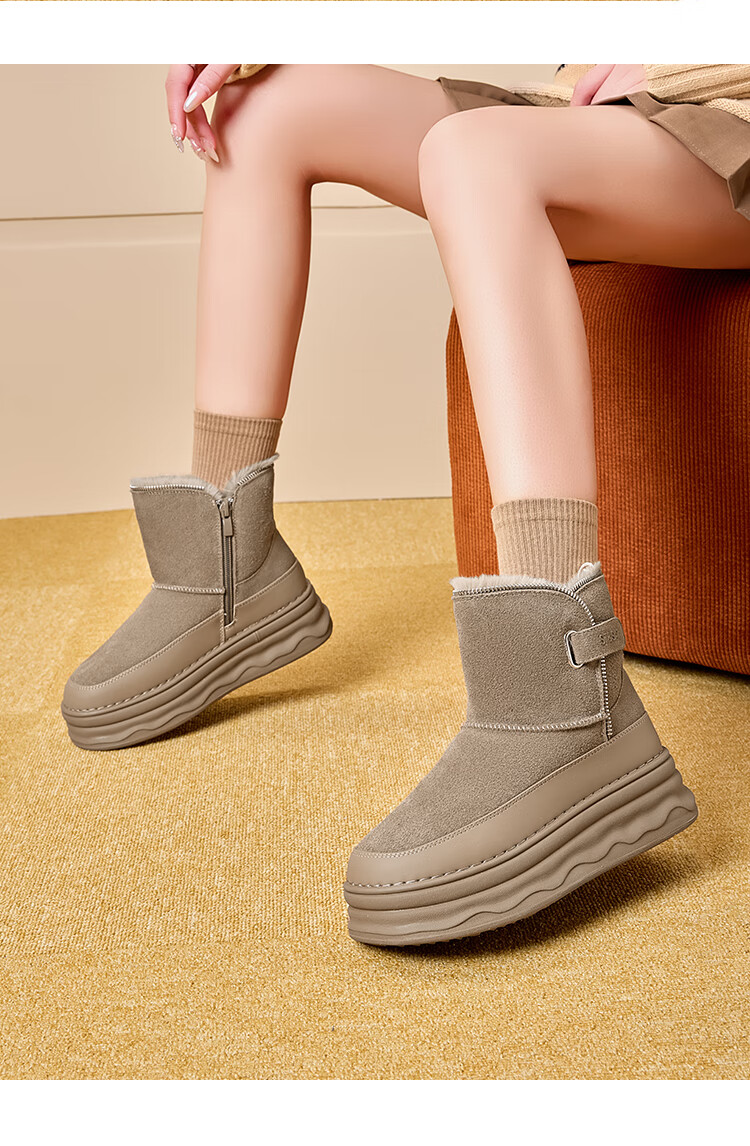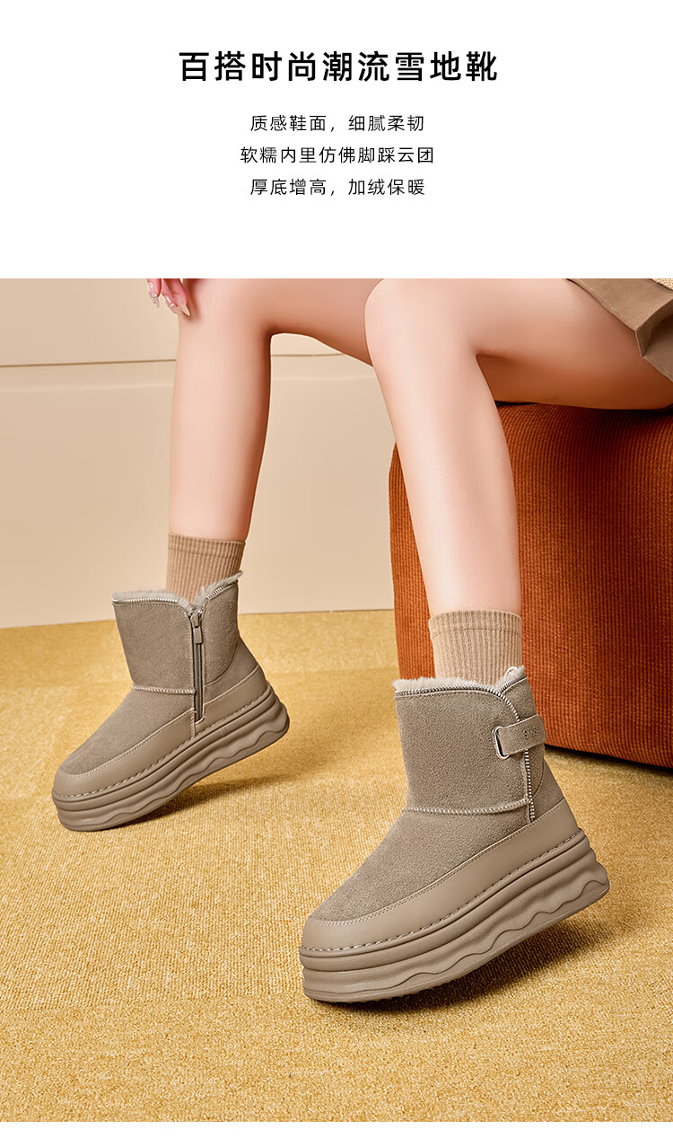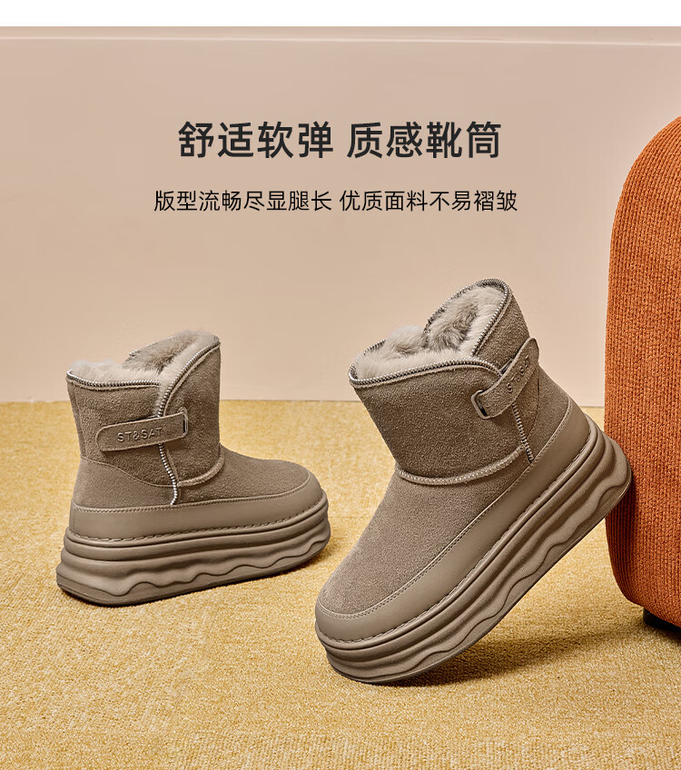 星期六加绒保暖雪地靴2025冬新款厚底百搭女靴短筒毛毛鞋东北棉鞋 卡其色 【加绒保暖】 37