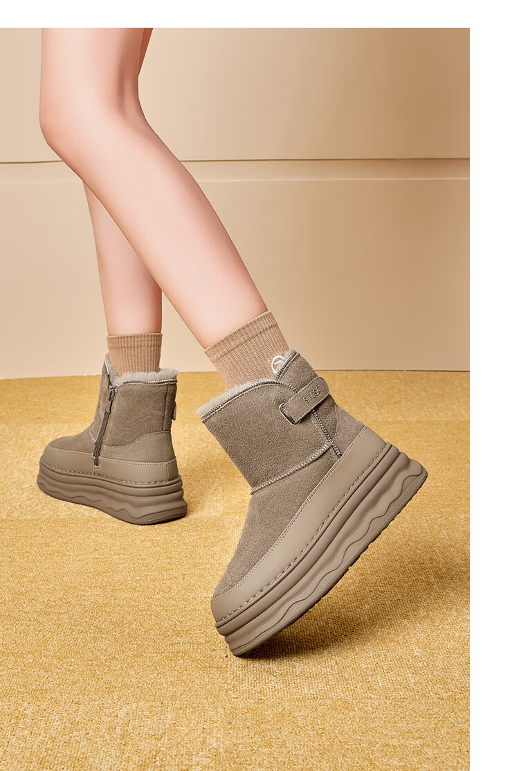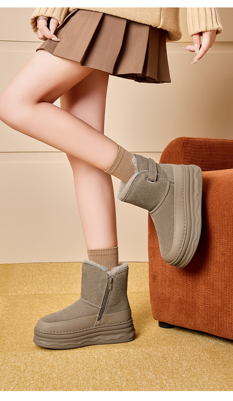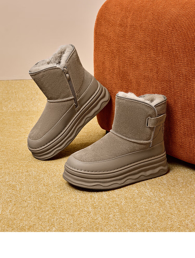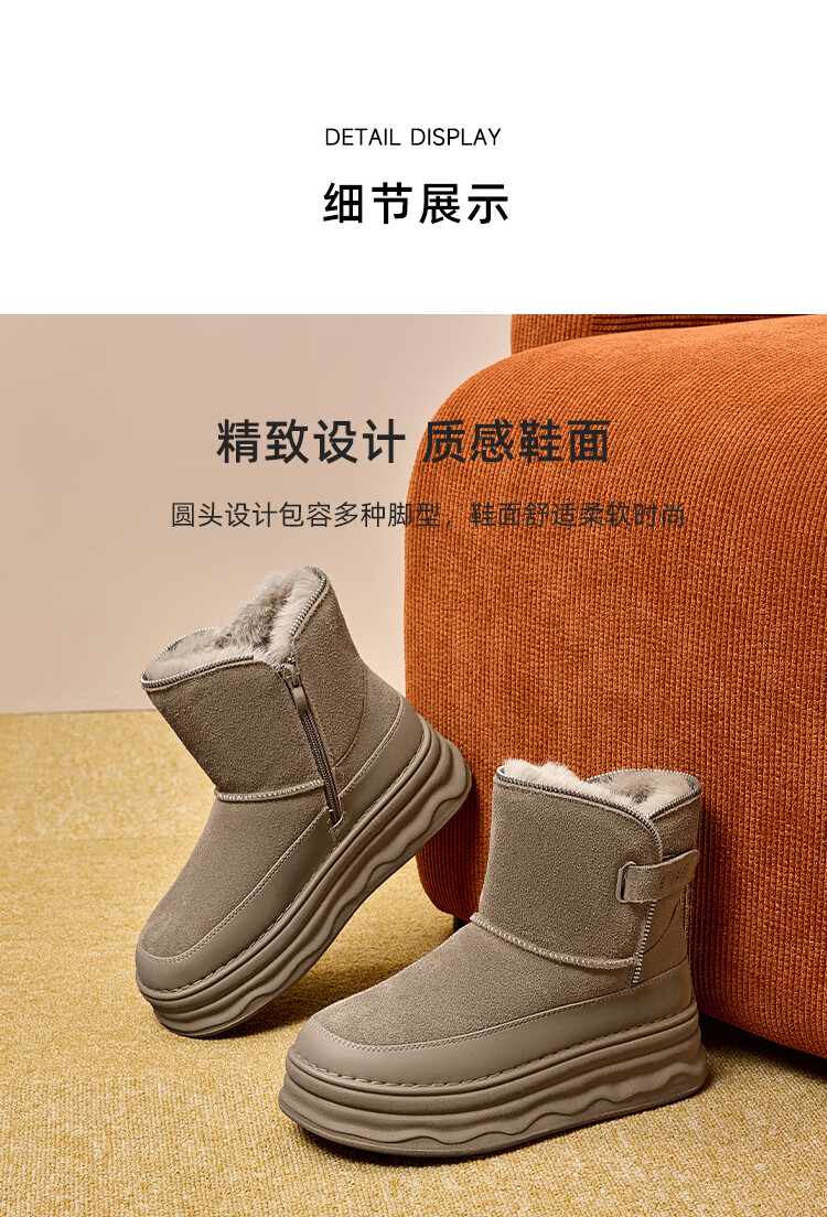 星期六加绒保暖雪地靴2025冬新款厚底百搭女靴短筒毛毛鞋东北棉鞋 卡其色 【加绒保暖】 37