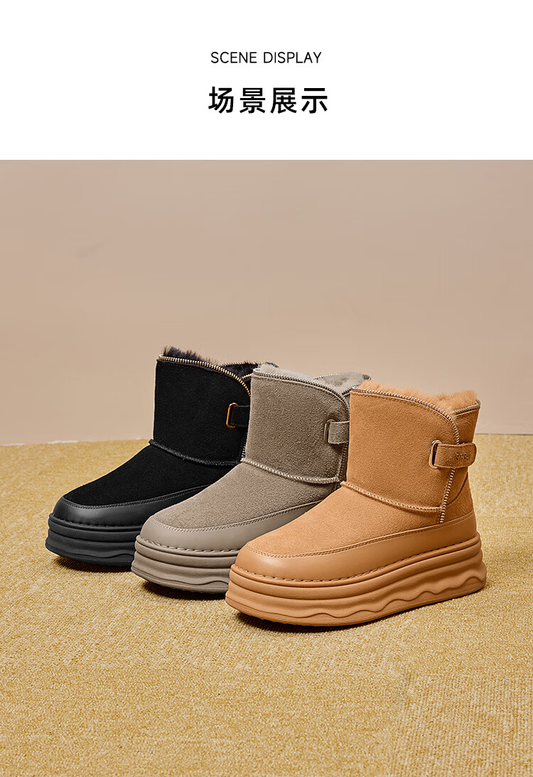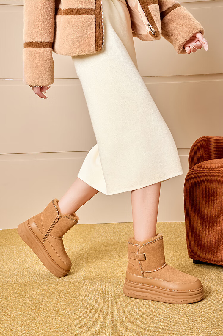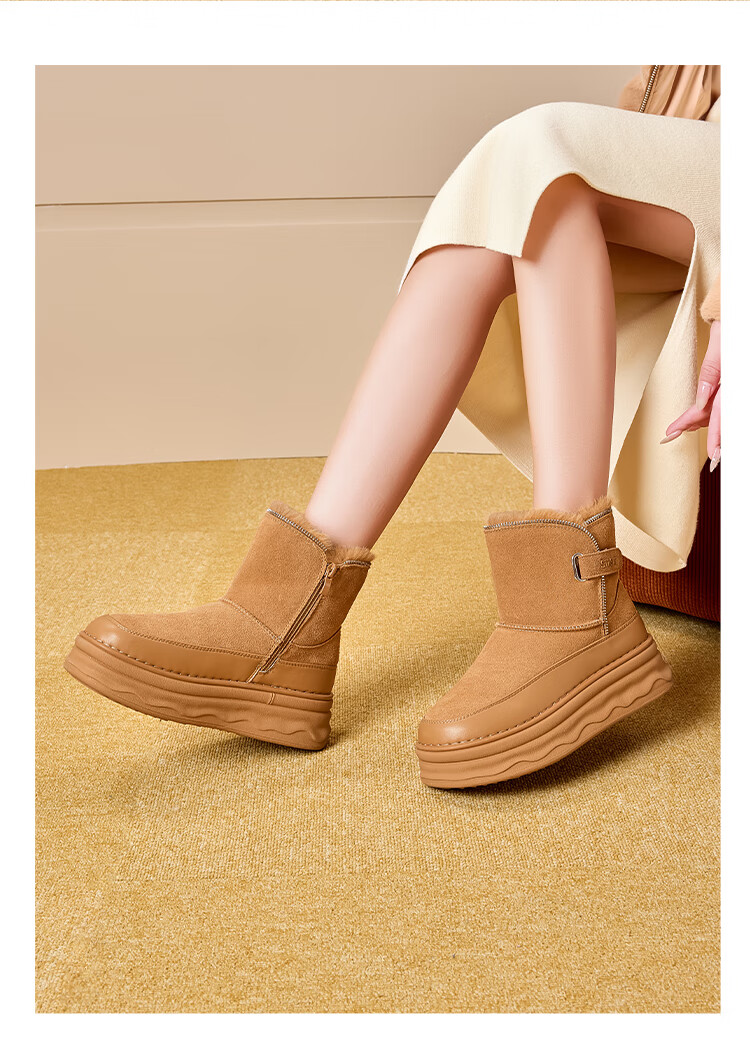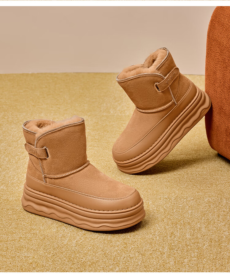 星期六加绒保暖雪地靴2025冬新款厚底百搭女靴短筒毛毛鞋东北棉鞋 驼色 【加绒保暖】 37