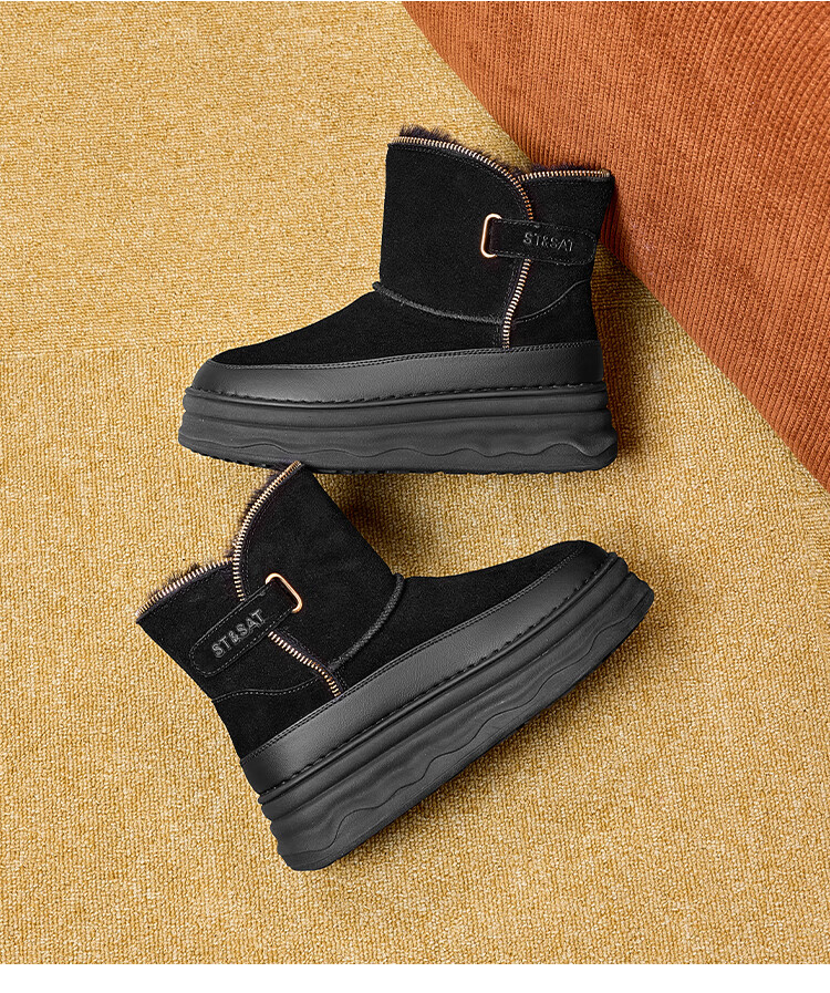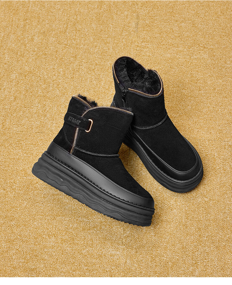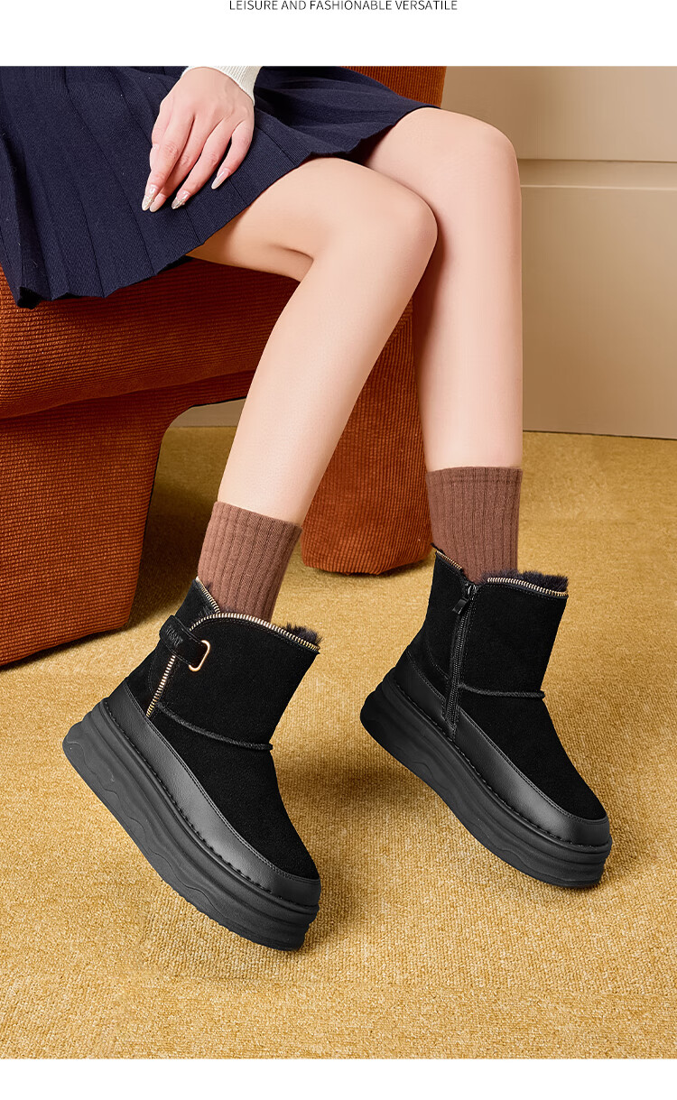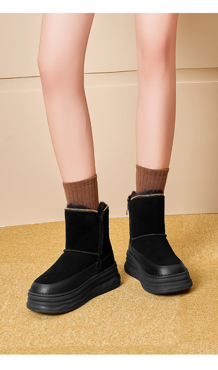 星期六加绒保暖雪地靴2025冬新款厚底百搭女靴短筒毛毛鞋东北棉鞋 黑色 【加绒保暖】 35