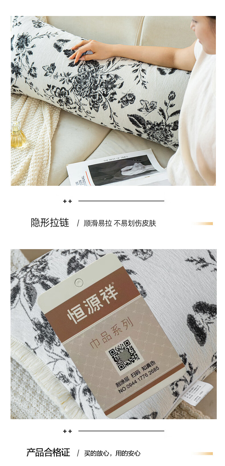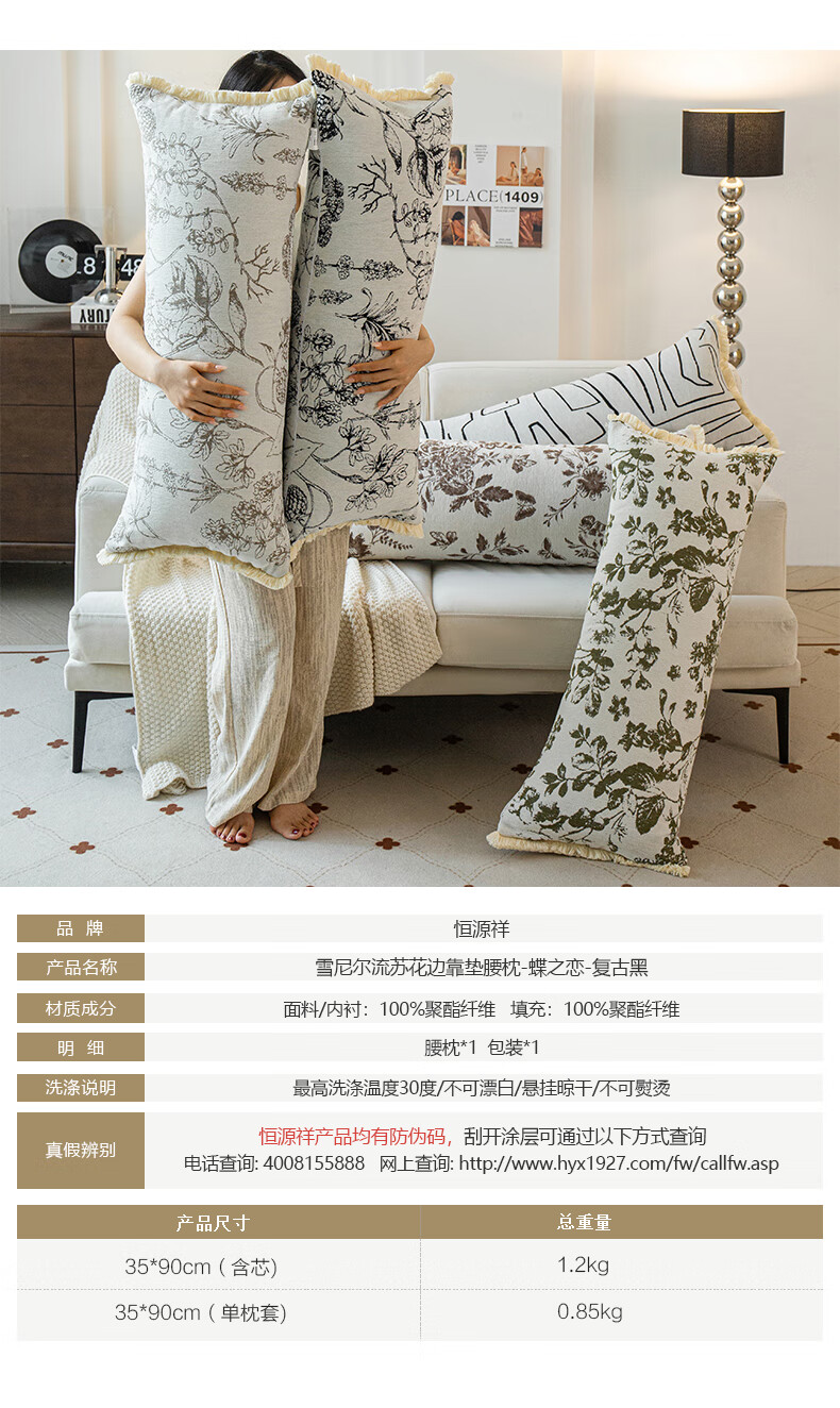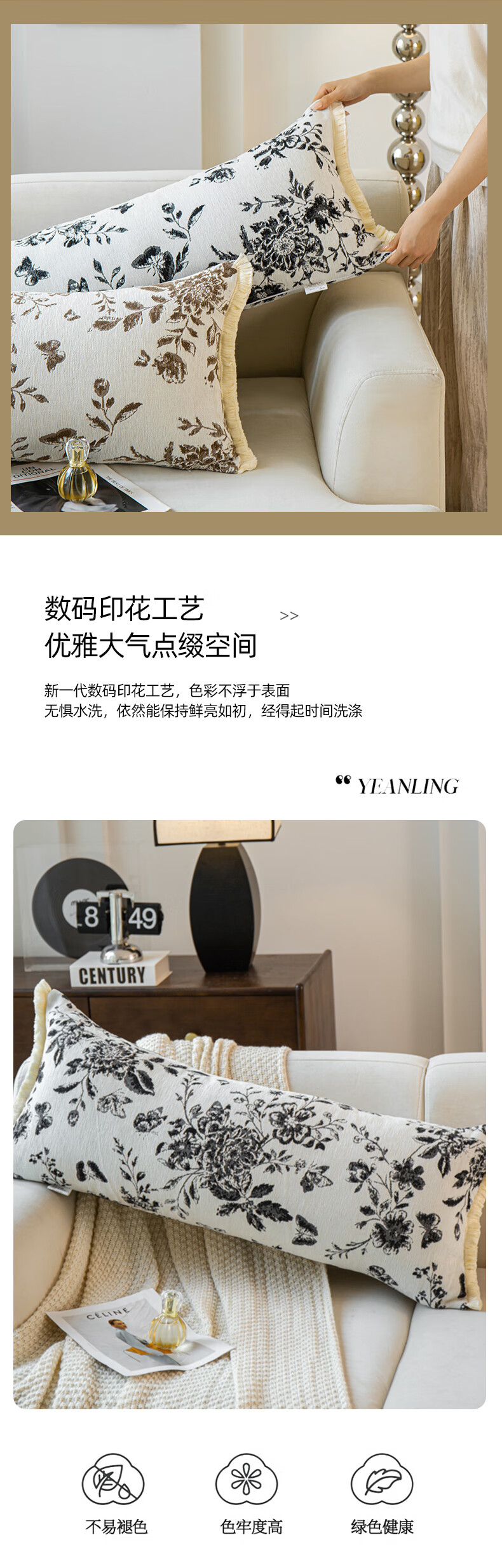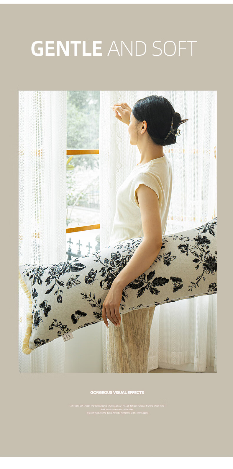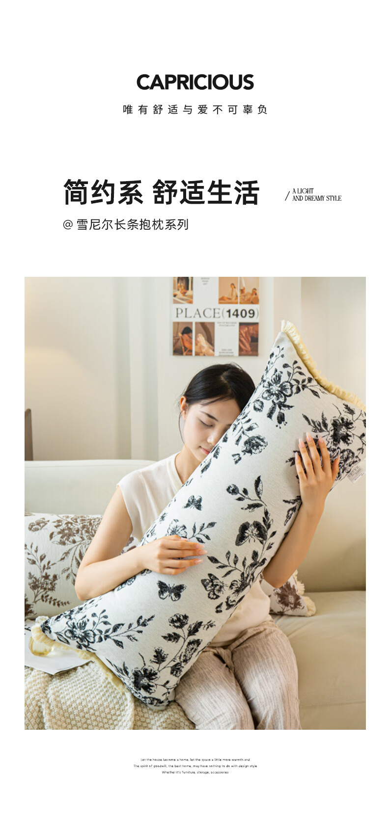 恒源祥抱枕长枕头雪尼尔流苏花边靠腰枕套睡觉夹腿抱枕侧睡抱枕沙发抱枕 蝶之恋-复古黑【雪尼尔流苏花边】 90cm*35cm 枕套