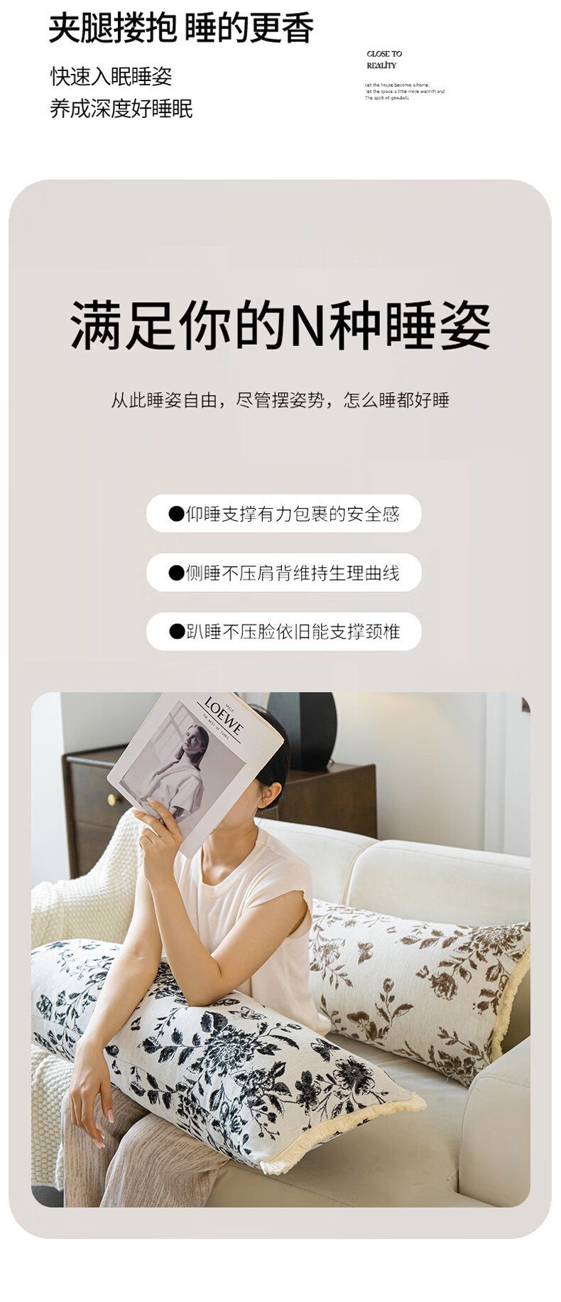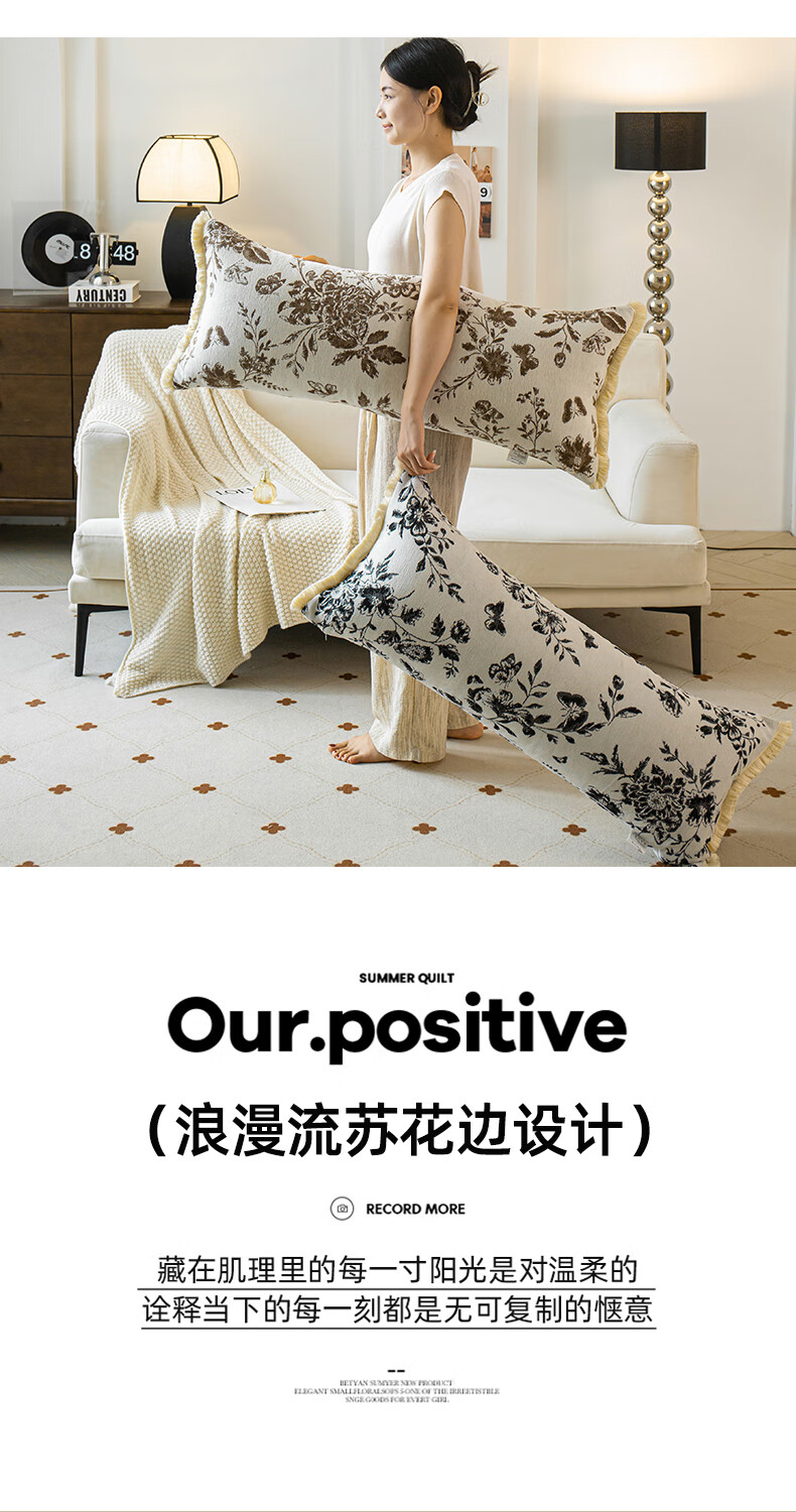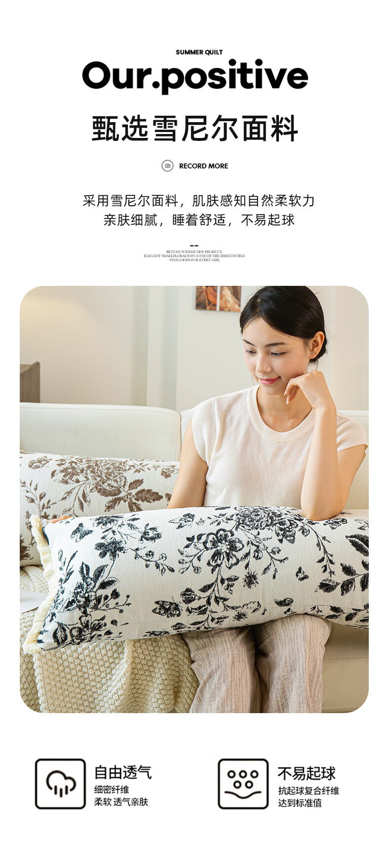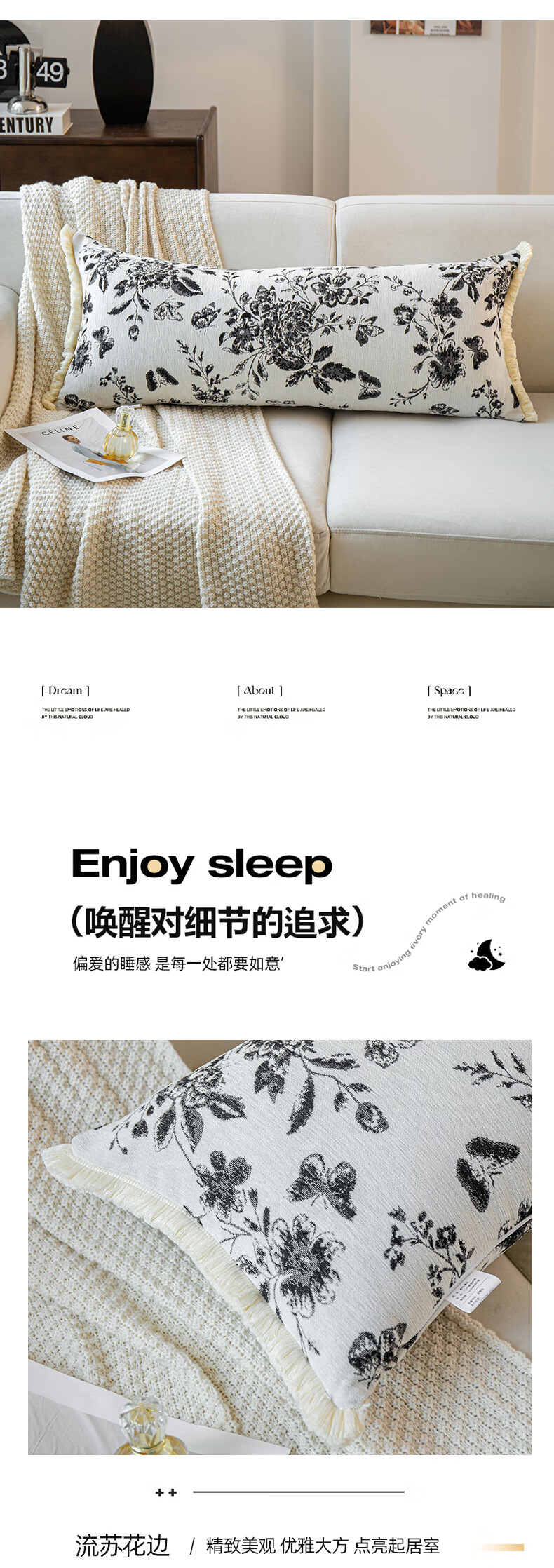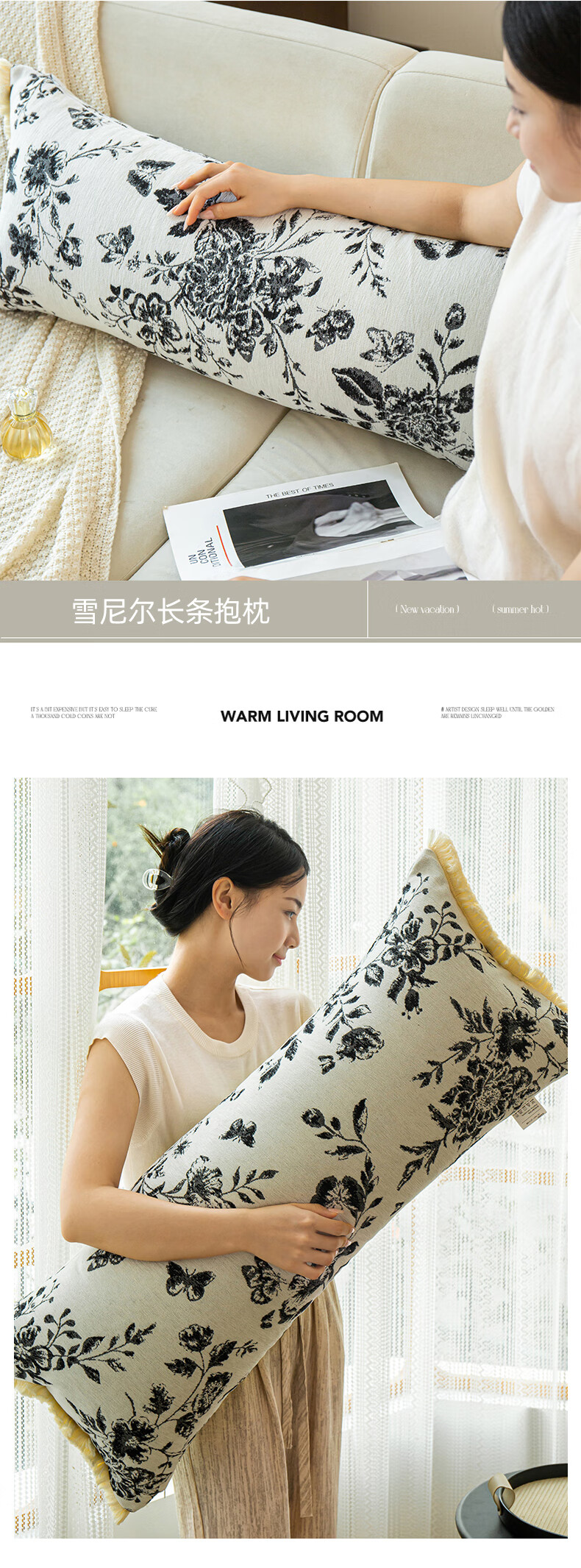 恒源祥抱枕长枕头雪尼尔流苏花边靠腰枕套睡觉夹腿抱枕侧睡抱枕沙发抱枕 蝶之恋-复古黑【雪尼尔流苏花边】 90cm*35cm 枕套