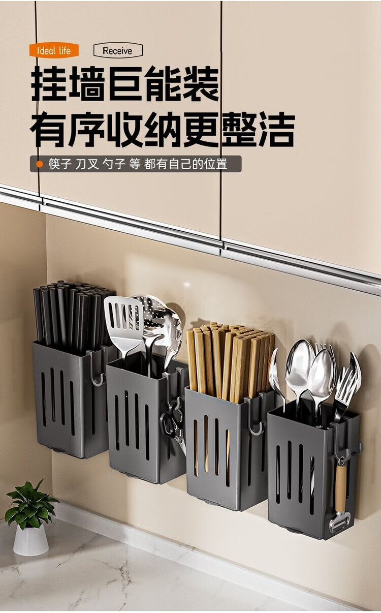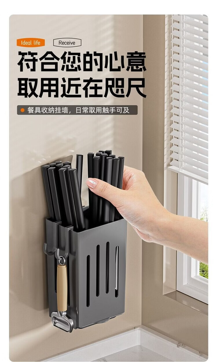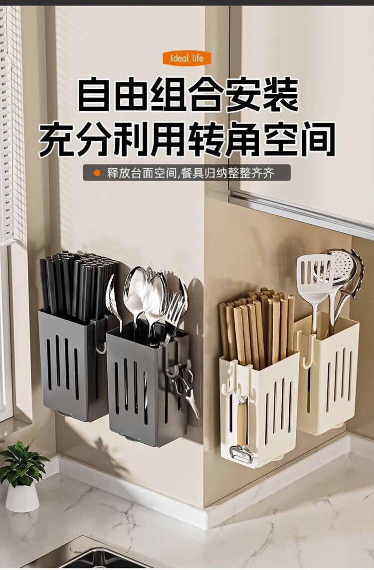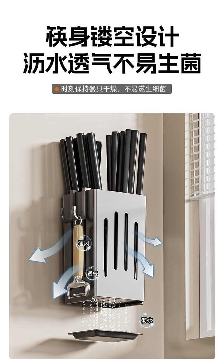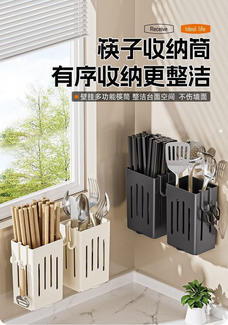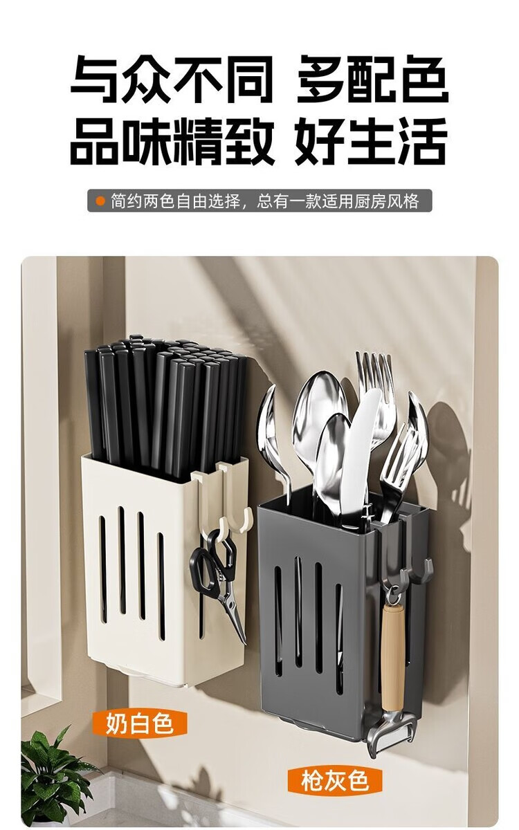 简漾厨房置物架筷子收纳盒壁挂式筷笼筷子笼家用沥水勺子筷子筒 白色1个装