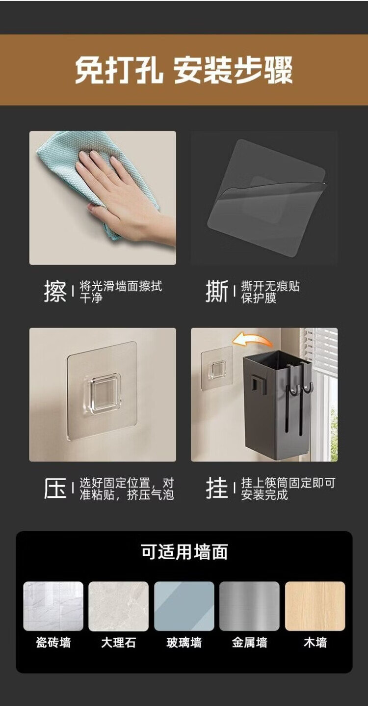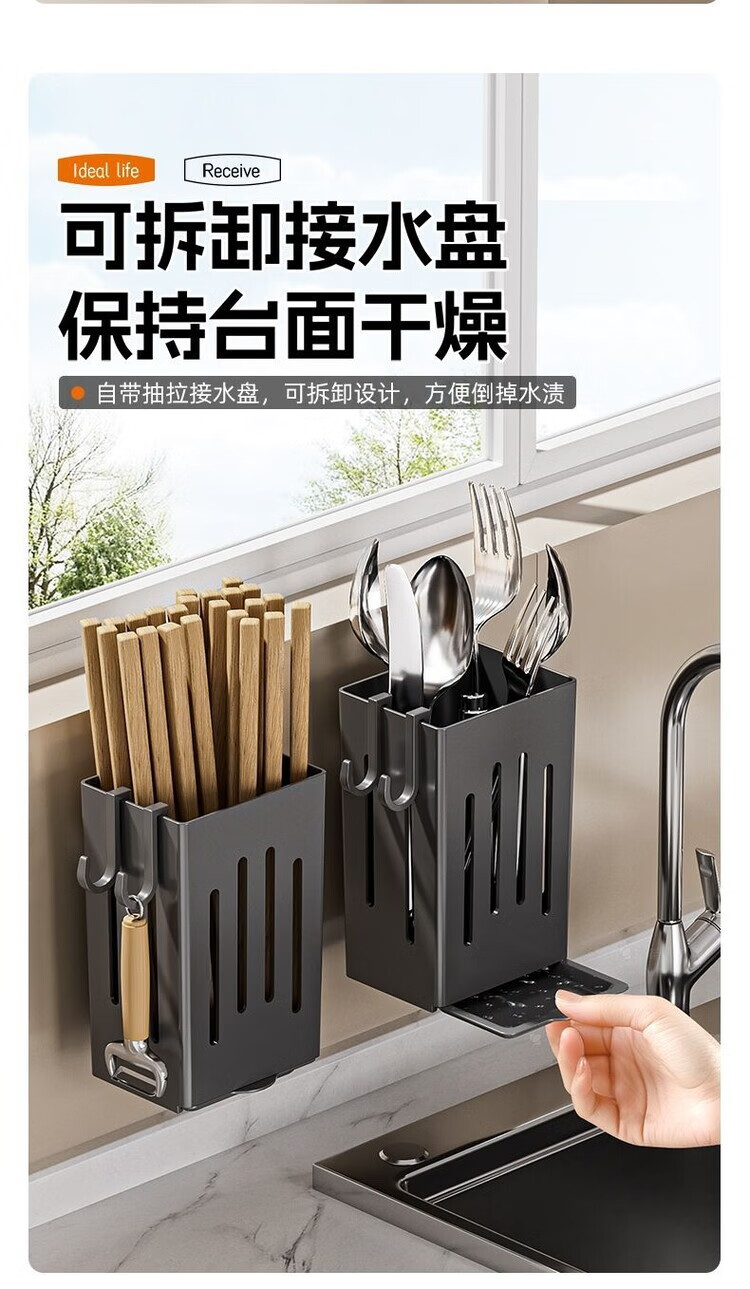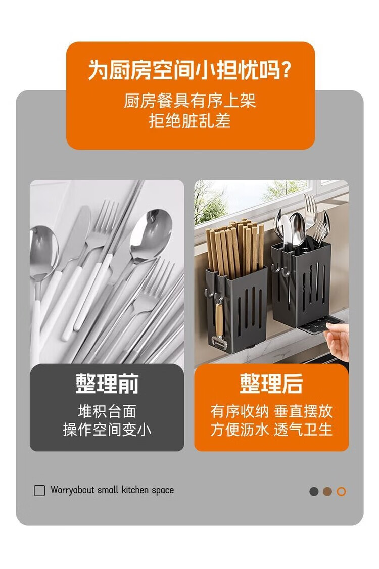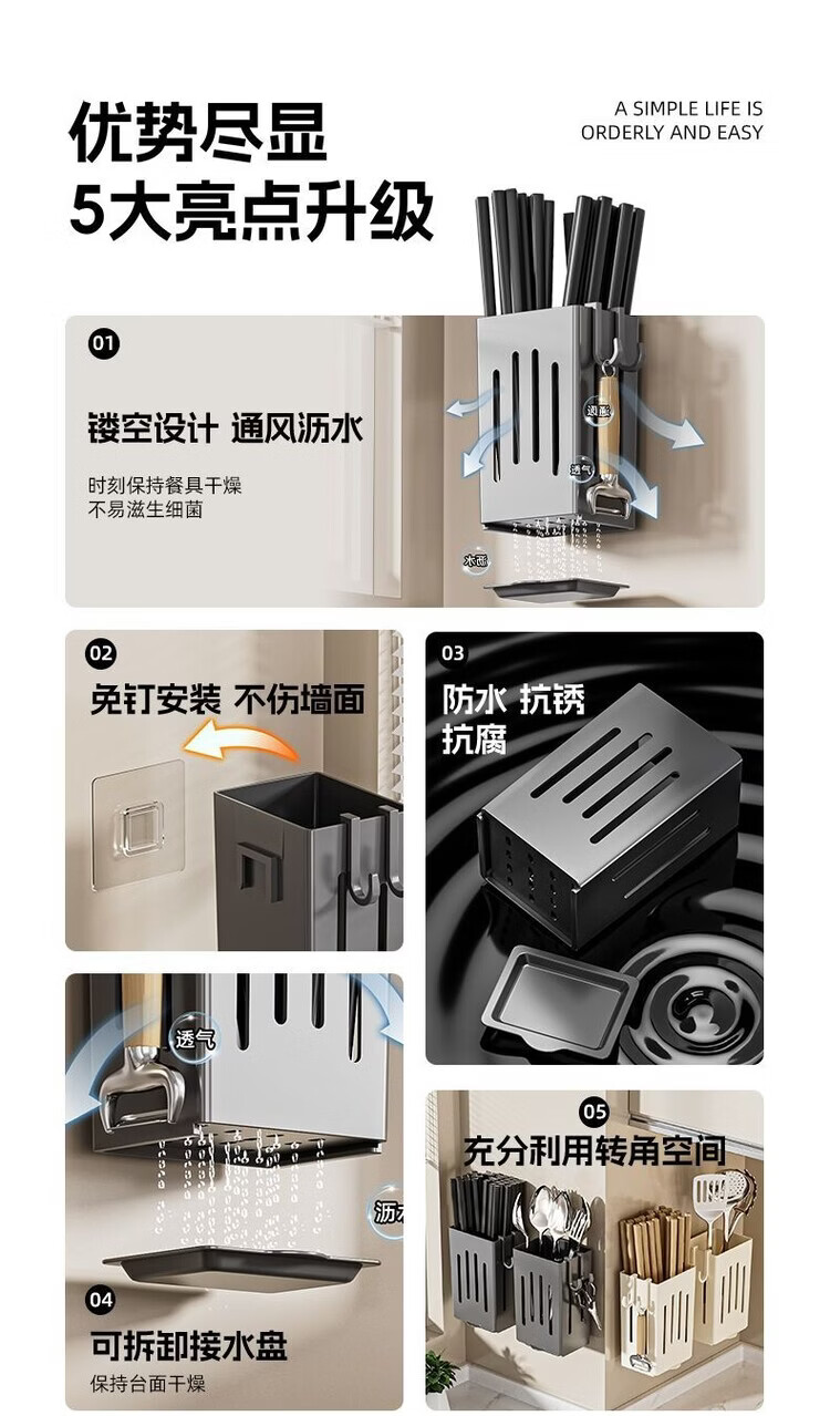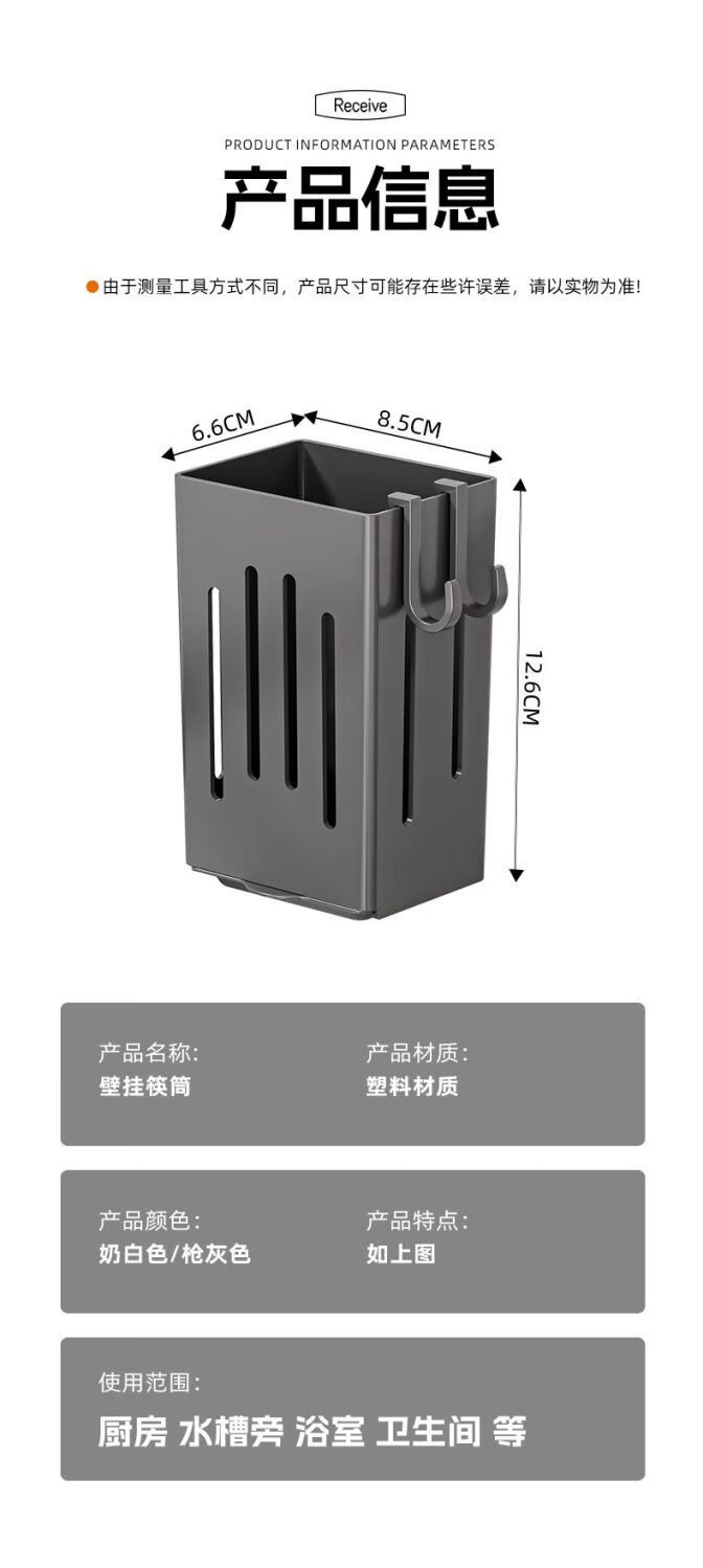 简漾厨房置物架筷子收纳盒壁挂式筷笼筷子笼家用沥水勺子筷子筒 白色1个装