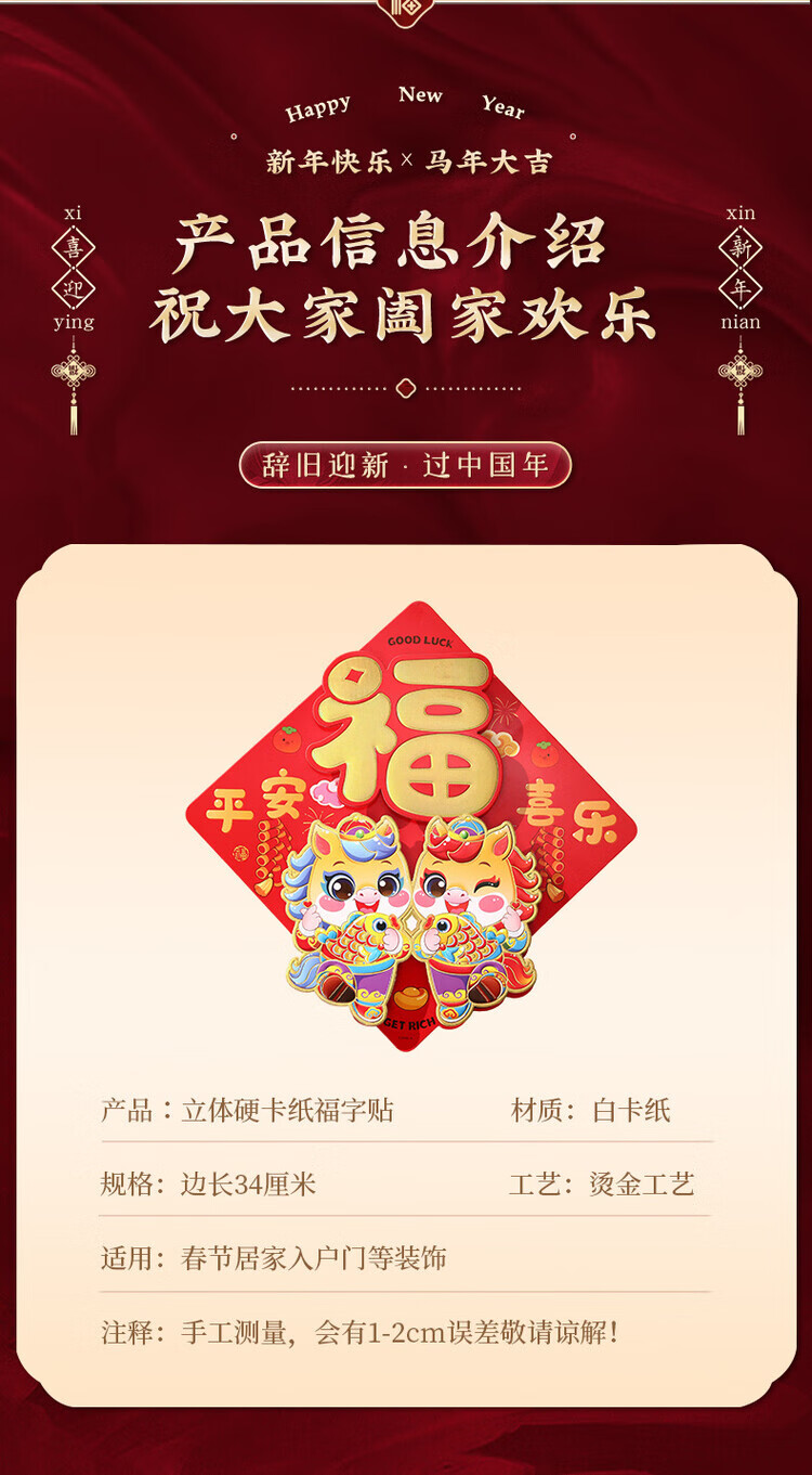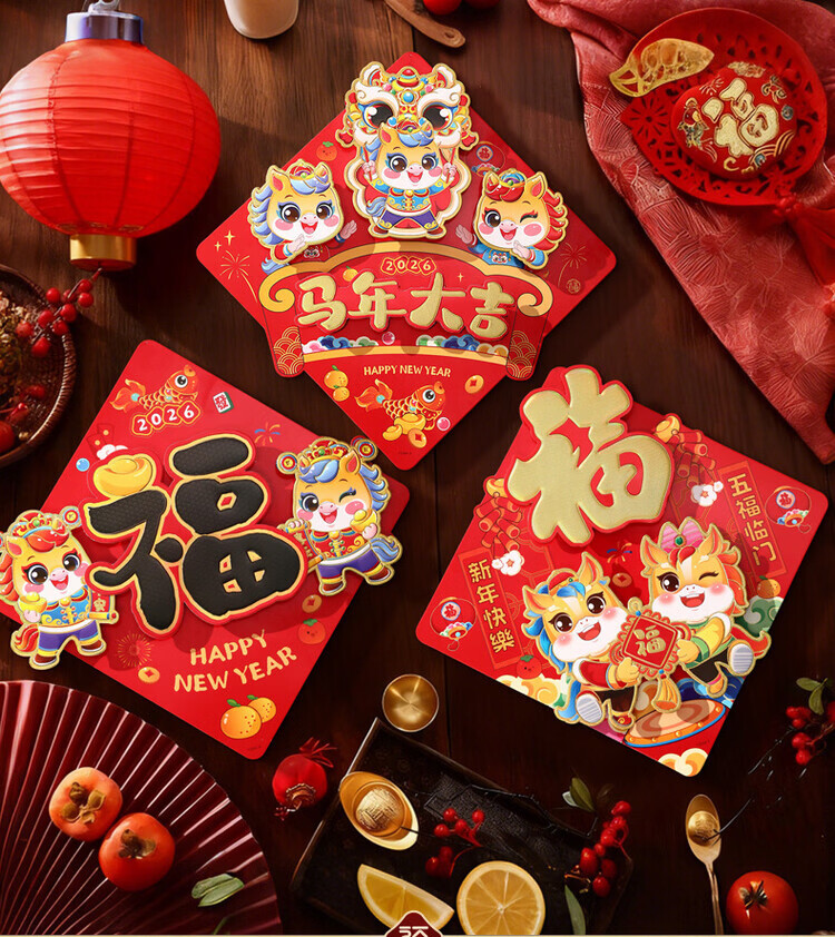 OYKTN2026年马年新款新年福字门贴立体入户门贴纸春节过年场景布置批货 【马上有福】立体福(送点胶)