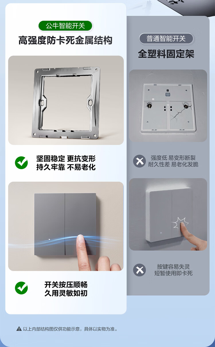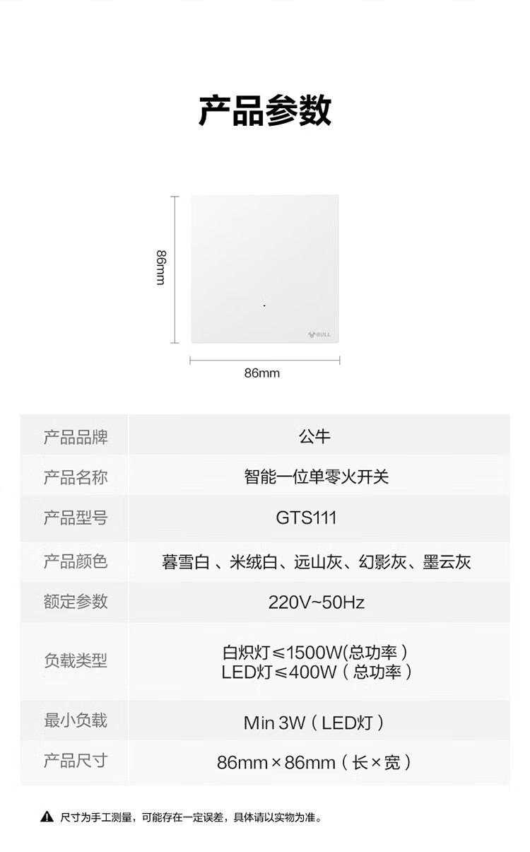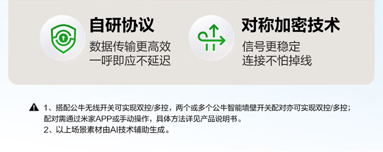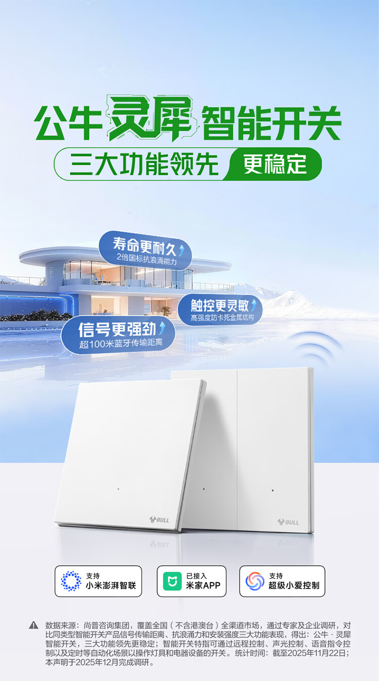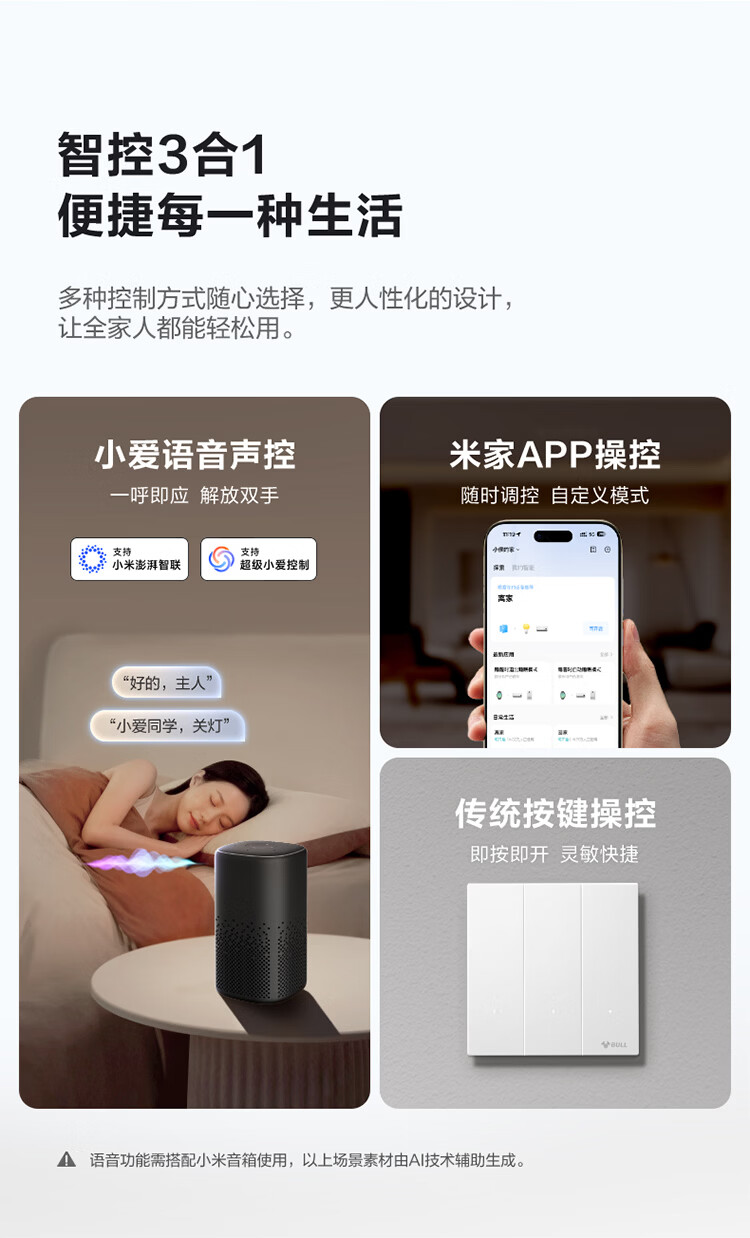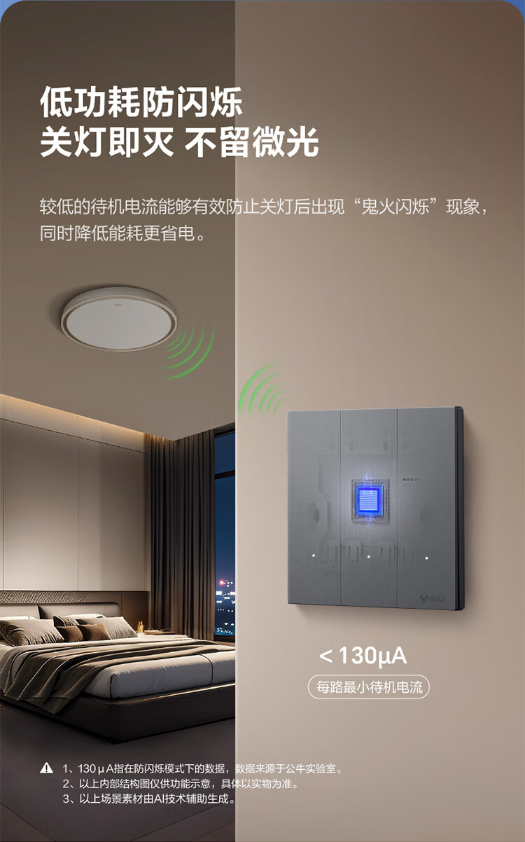 公牛(BULL)灵犀超薄智能开关面板 接入米家系统 支持小爱语音控制远山灰 【智能一开(单零火兼容版)】